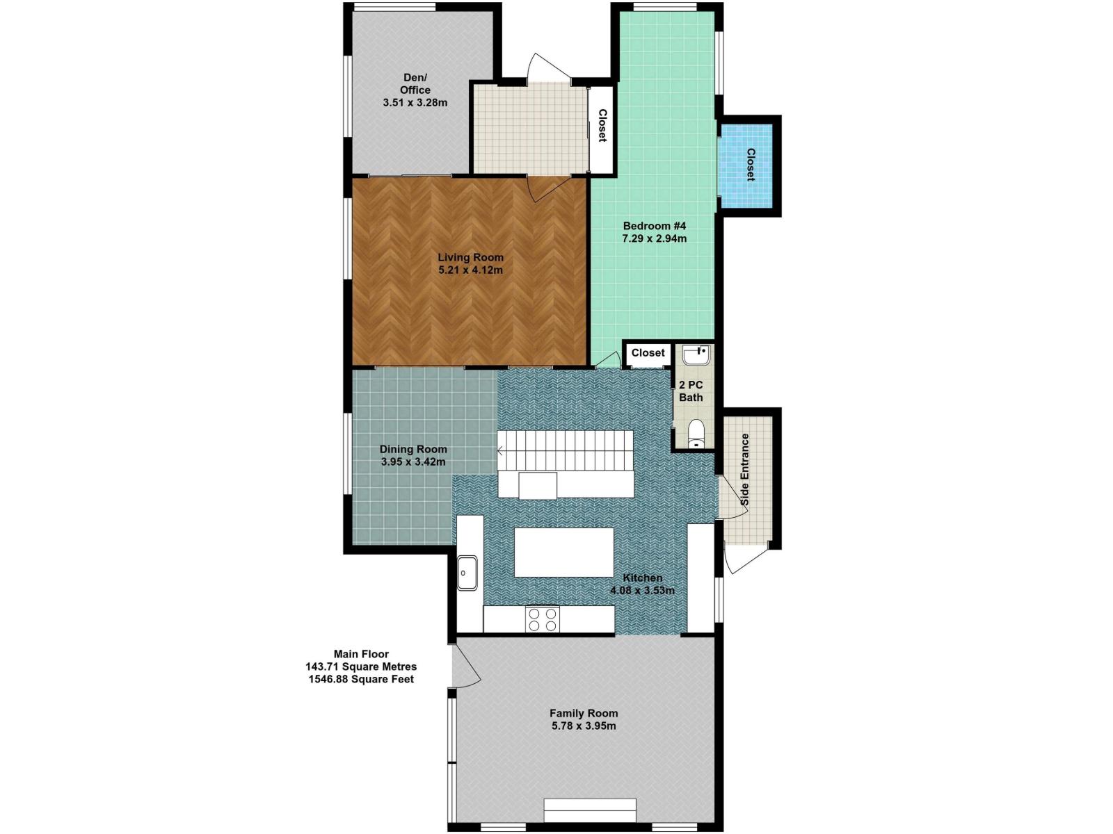 | Kitchen | Main level | 4.08 x 3.53 | — |