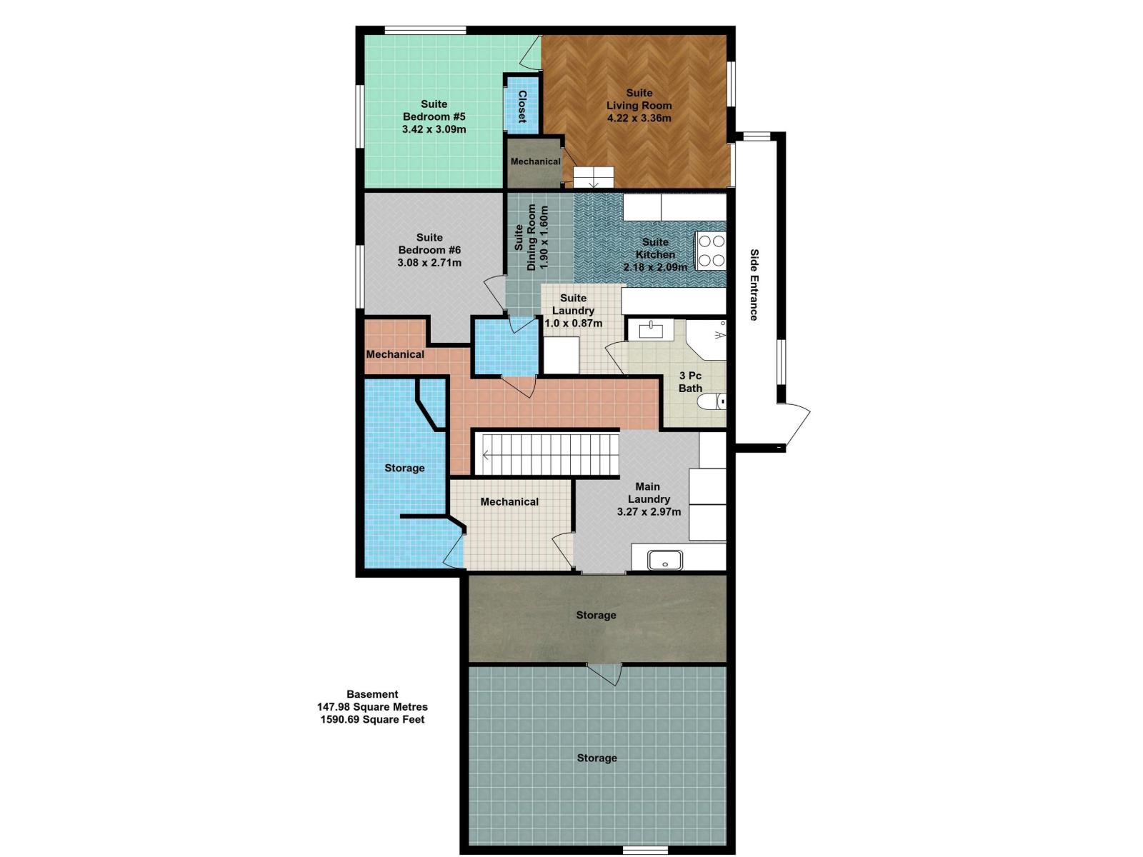 | Bedroom 5 | Basement | 3.42 x 3.09 | — |