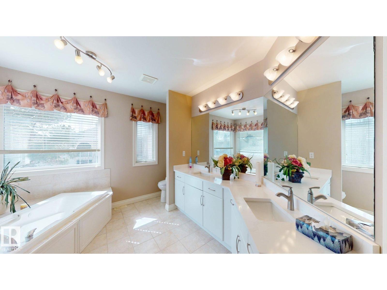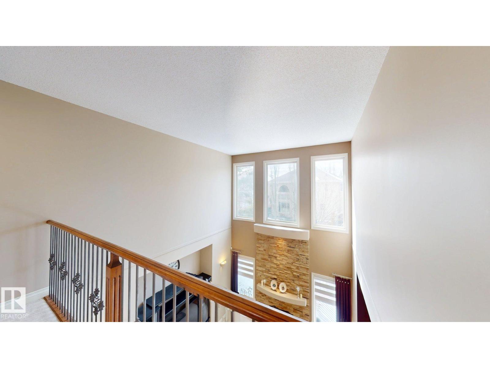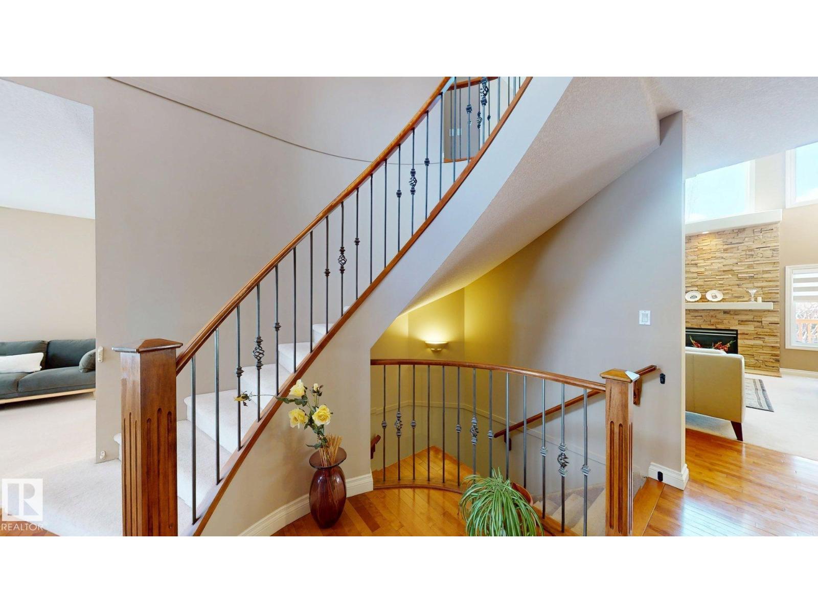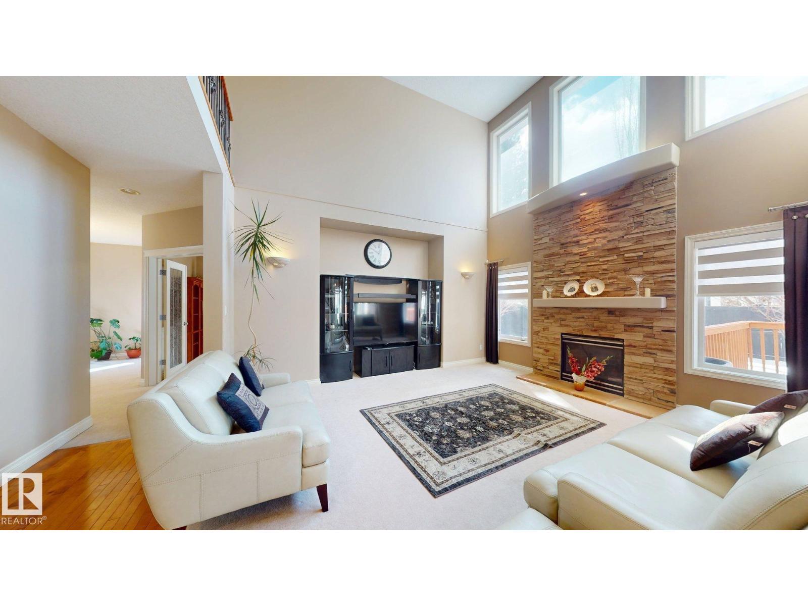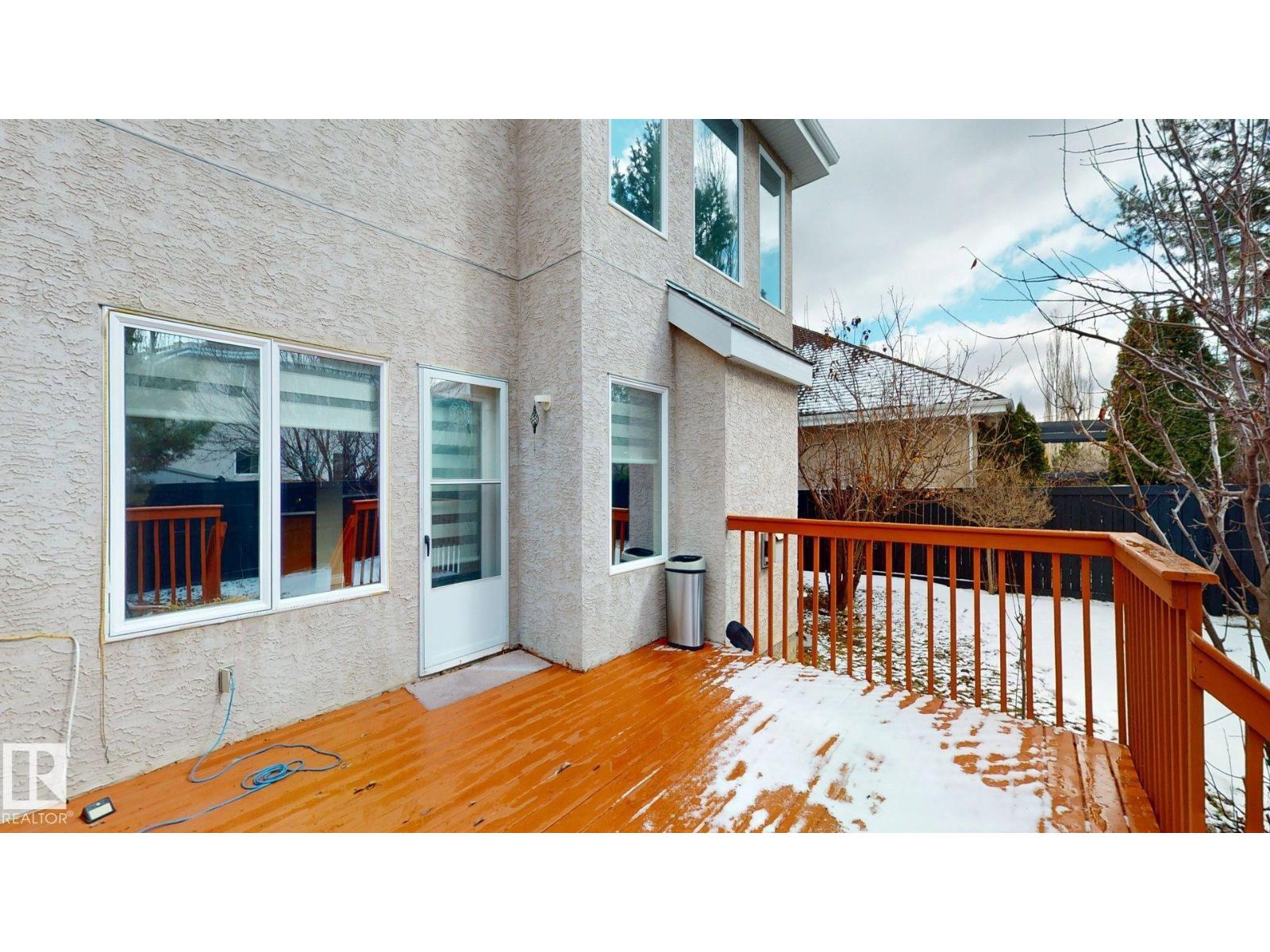 Welcome to this stunning home located in a quite cul-de-sac, just steps away from a large greenspace in the sought-after Terwillegar Gardens. Easy access to A. Henday and Terwillegar Drive. It comes with an oversized double garage and central ACs. The recently updated quartz countertops throughout the house and updated water tank which is less than a year old, adds to the huge windows throughout, offering incredible space, brightness and natural light. The main floor is thoughtfully laid out with a separate living room and formal dinning area, cozy family room with gas fireplace, a nook area, a spacious kitchen, home office/den, powder room and a laundry area. Upstairs features a large primary bedroom with 5-piece ensuite and walk-in closet, plus three more generously sized bedrooms and a full bathroom. The Fully Finished Basement includes a fifth bedroom flex room/home gym, recreation/media room, wet bar, bathroom, and tons of storage space. Enjoy a beautiful landscaped yard with mature trees and a deck. (id:63190)