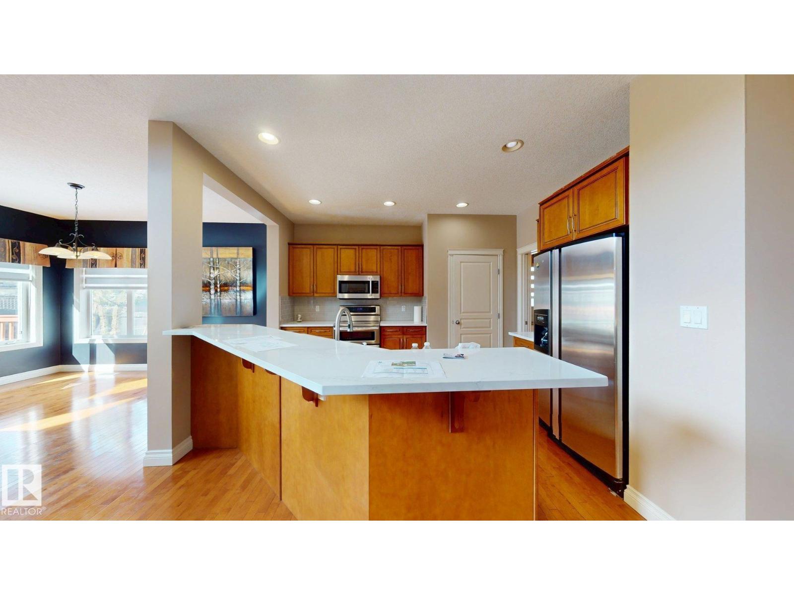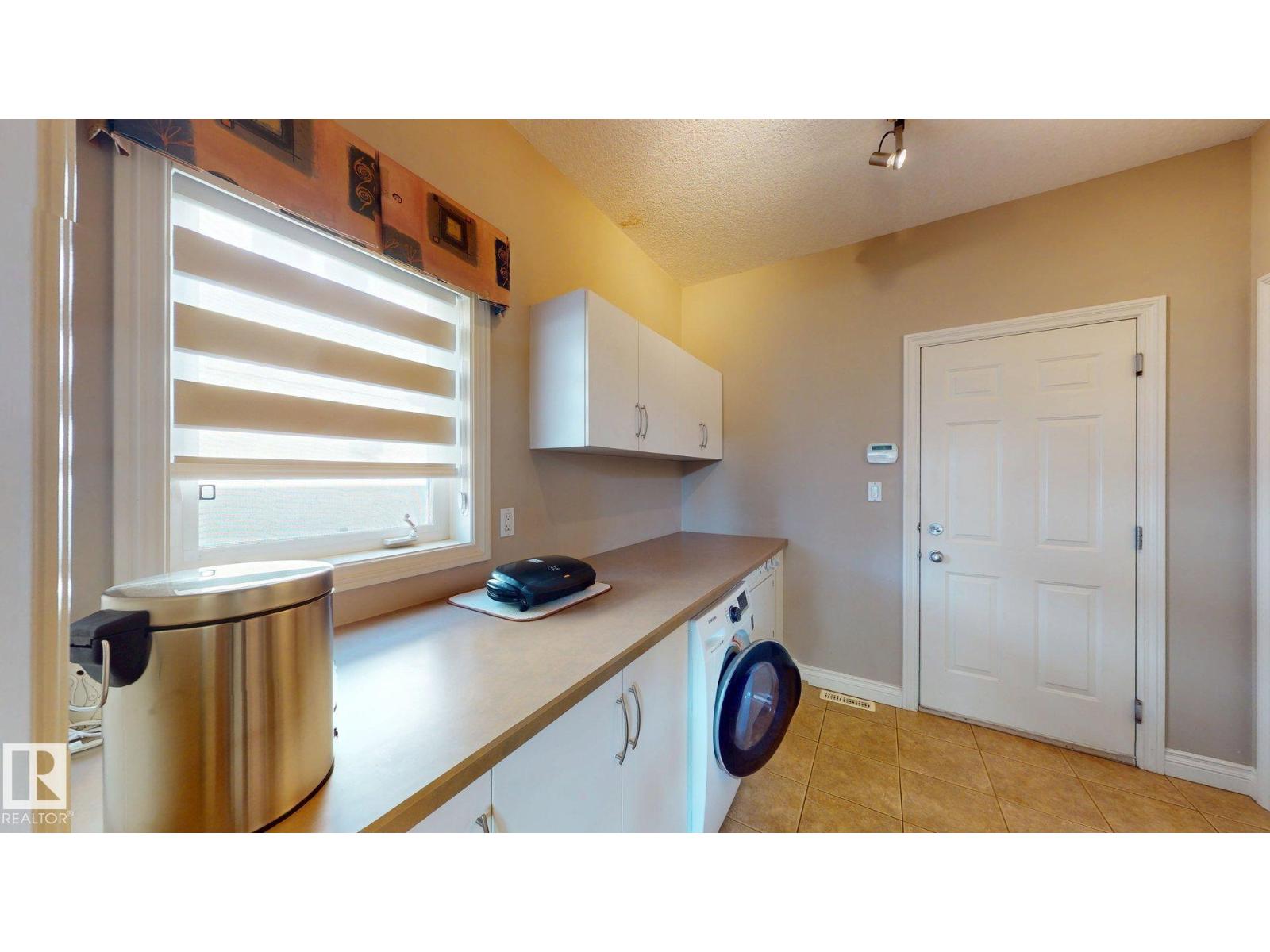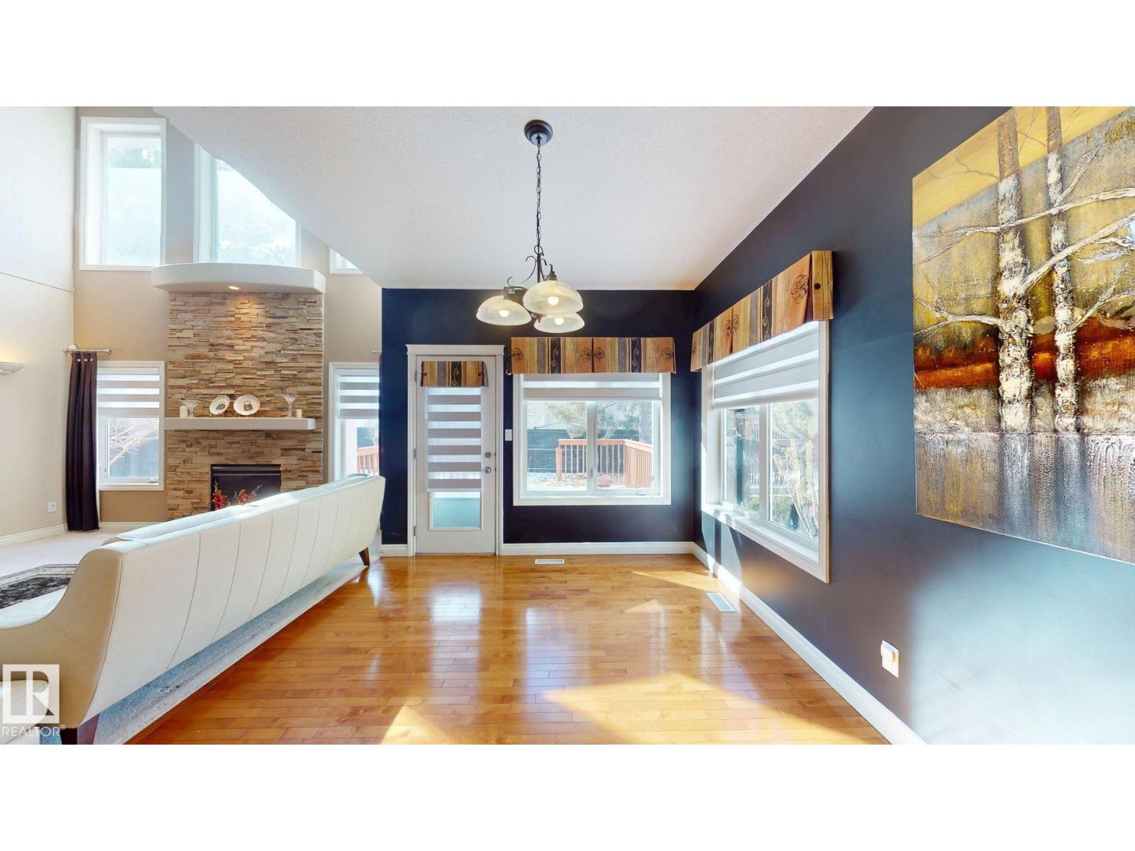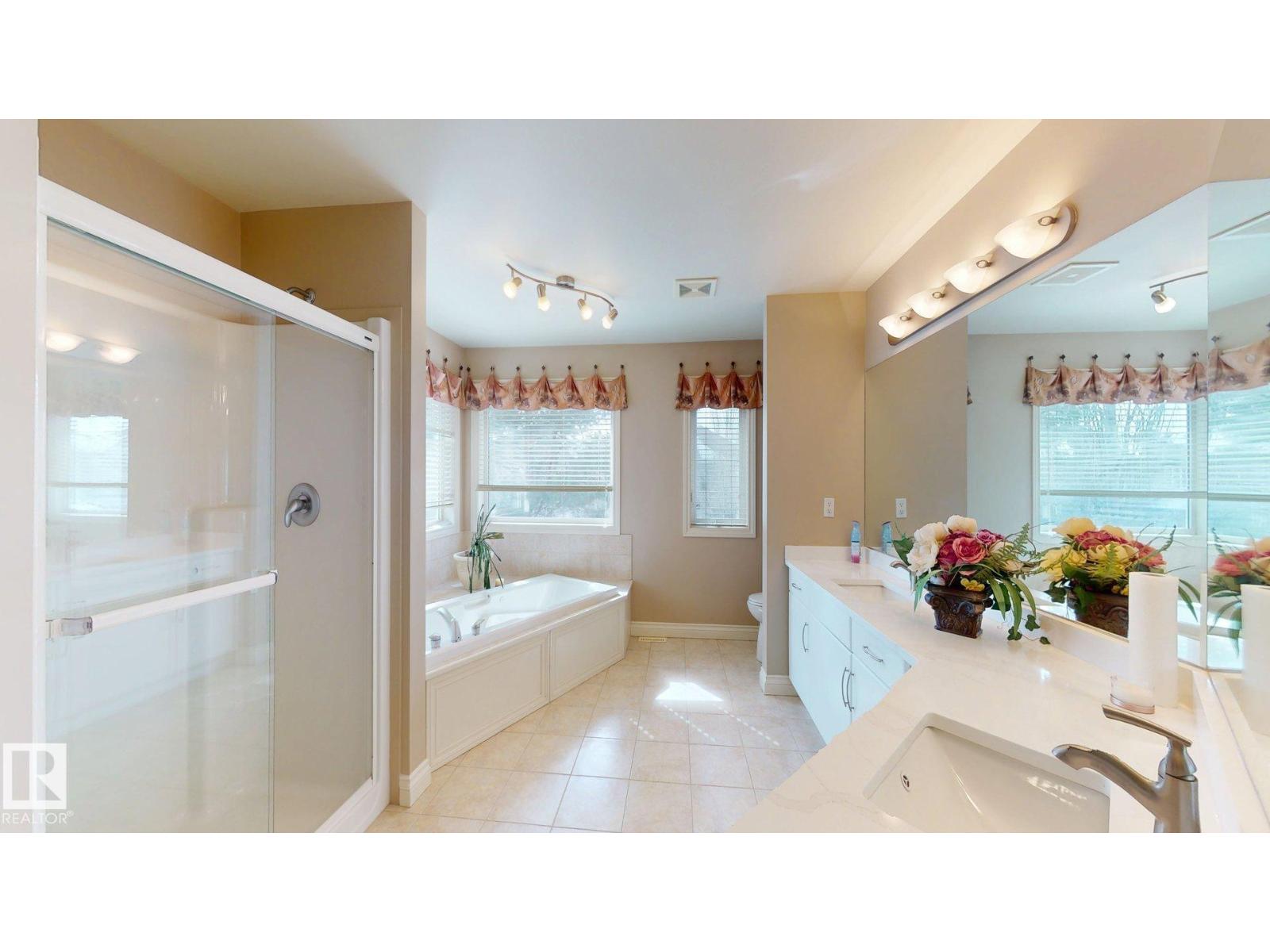 Welcome to this stunning home located in a quite cul-de-sac, just steps away from a large greenspace in the sought-after Terwillegar Gardens. Easy access to A. Henday and Terwillegar Drive. It comes with an oversized double garage and central ACs. The recently updated quartz countertops throughout the house and updated water tank which is less than a year old, adds to the huge windows throughout, offering incredible space, brightness and natural light. The main floor is thoughtfully laid out with a separate living room and formal dinning area, cozy family room with gas fireplace, a nook area, a spacious kitchen, home office/den, powder room and a laundry area. Upstairs features a large primary bedroom with 5-piece ensuite and walk-in closet, plus three more generously sized bedrooms and a full bathroom. The Fully Finished Basement includes a fifth bedroom flex room/home gym, recreation/media room, wet bar, bathroom, and tons of storage space. Enjoy a beautiful landscaped yard with mature trees and a deck. (id:63190)