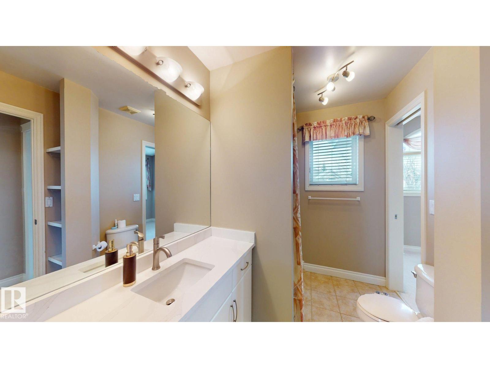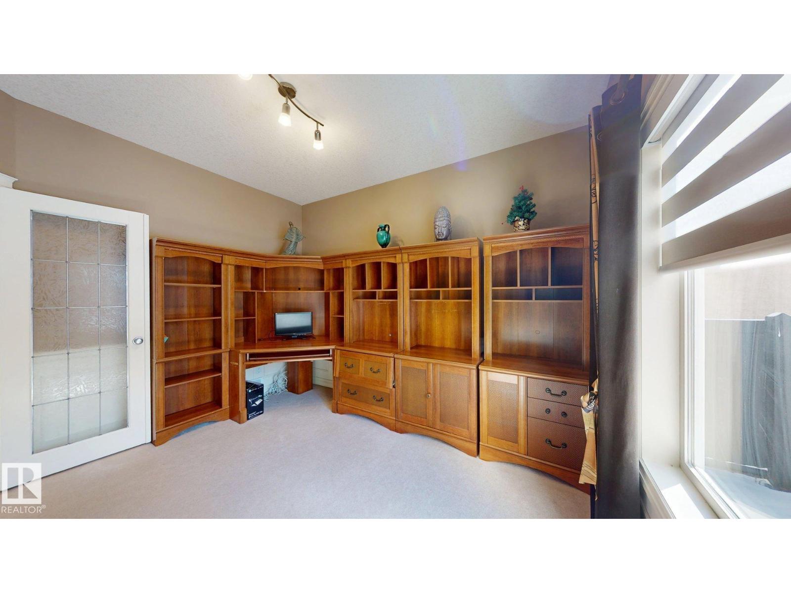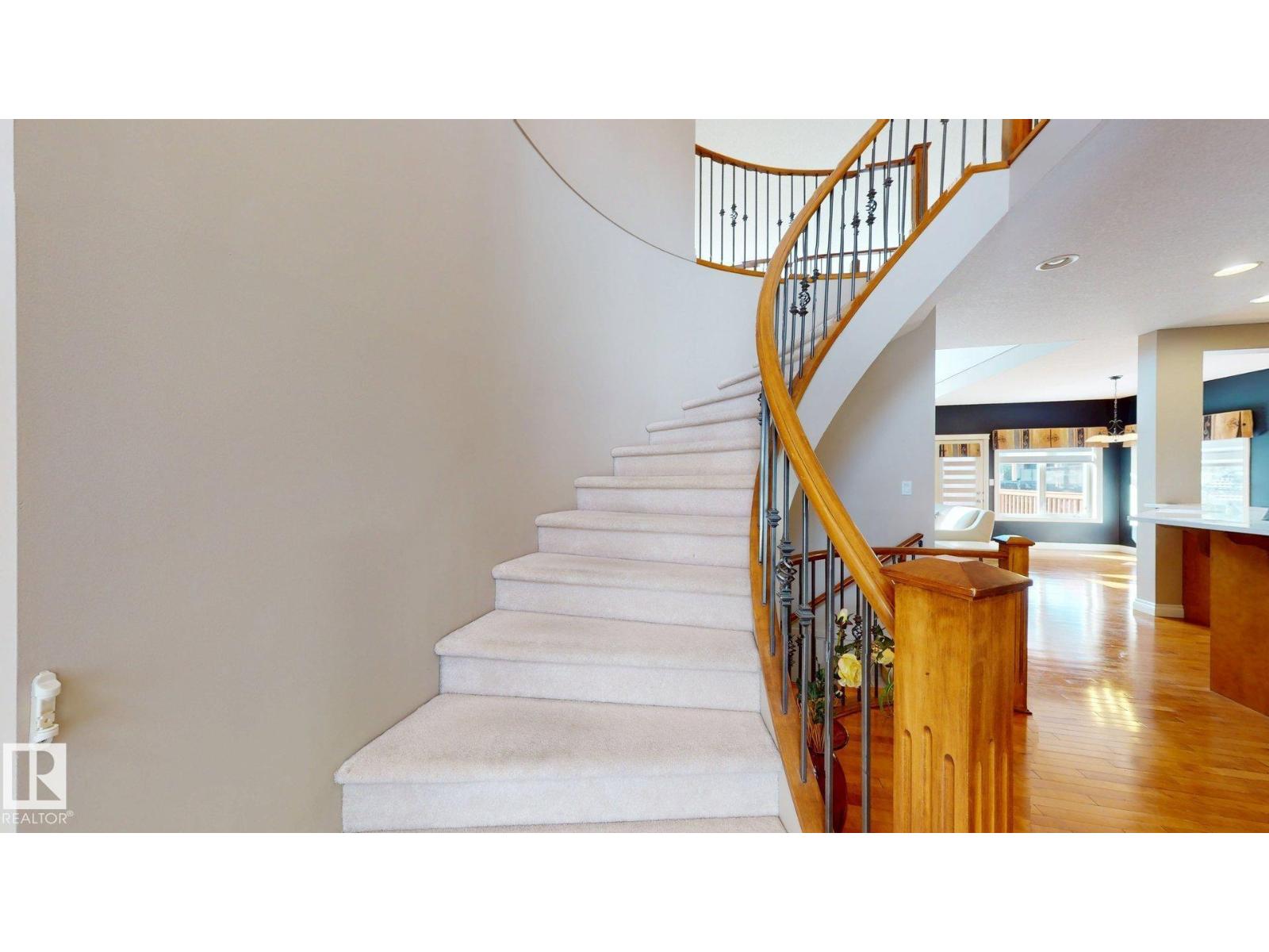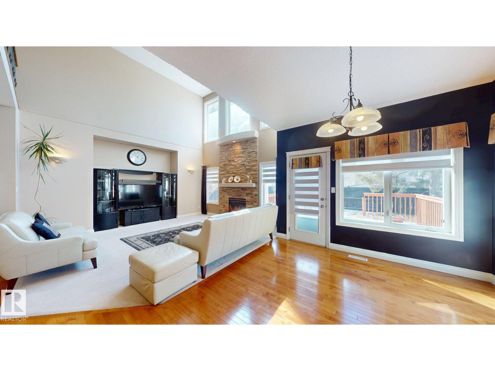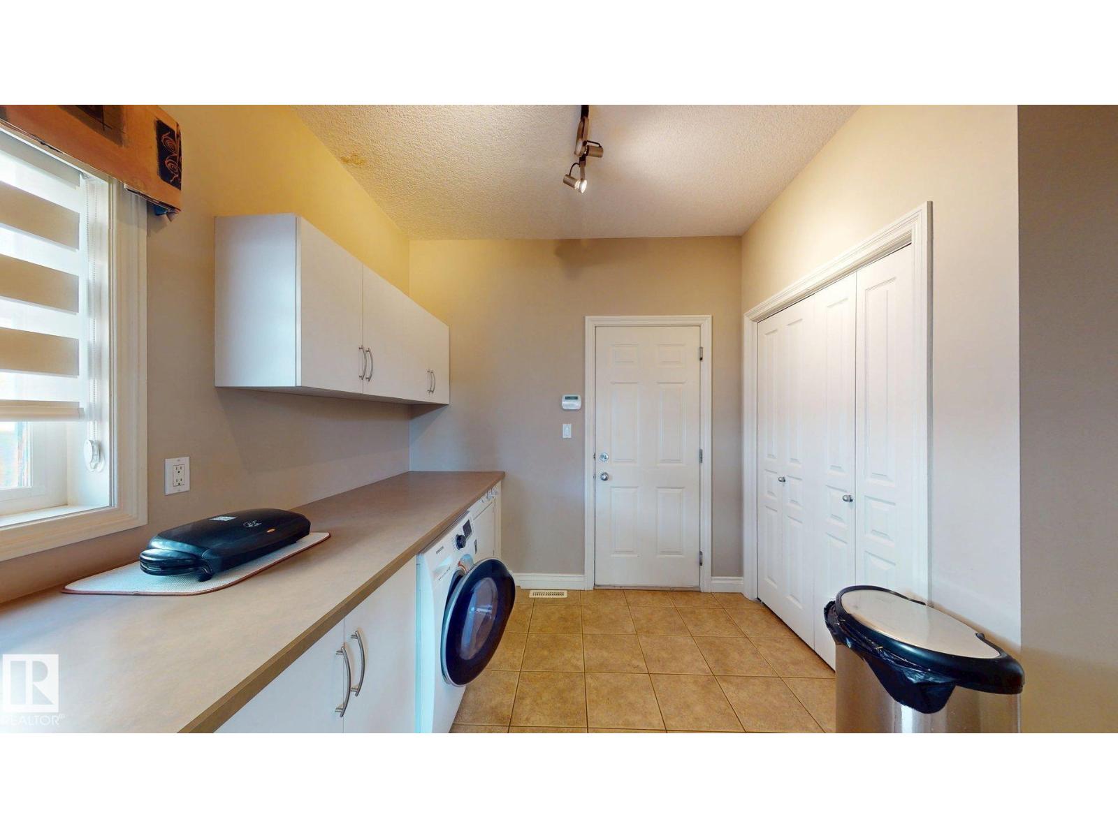 Welcome to this stunning home located in a quite cul-de-sac, just steps away from a large greenspace in the sought-after Terwillegar Gardens. Easy access to A. Henday and Terwillegar Drive. It comes with an oversized double garage and central ACs. The recently updated quartz countertops throughout the house and updated water tank which is less than a year old, adds to the huge windows throughout, offering incredible space, brightness and natural light. The main floor is thoughtfully laid out with a separate living room and formal dinning area, cozy family room with gas fireplace, a nook area, a spacious kitchen, home office/den, powder room and a laundry area. Upstairs features a large primary bedroom with 5-piece ensuite and walk-in closet, plus three more generously sized bedrooms and a full bathroom. The Fully Finished Basement includes a fifth bedroom flex room/home gym, recreation/media room, wet bar, bathroom, and tons of storage space. Enjoy a beautiful landscaped yard with mature trees and a deck. (id:63190)