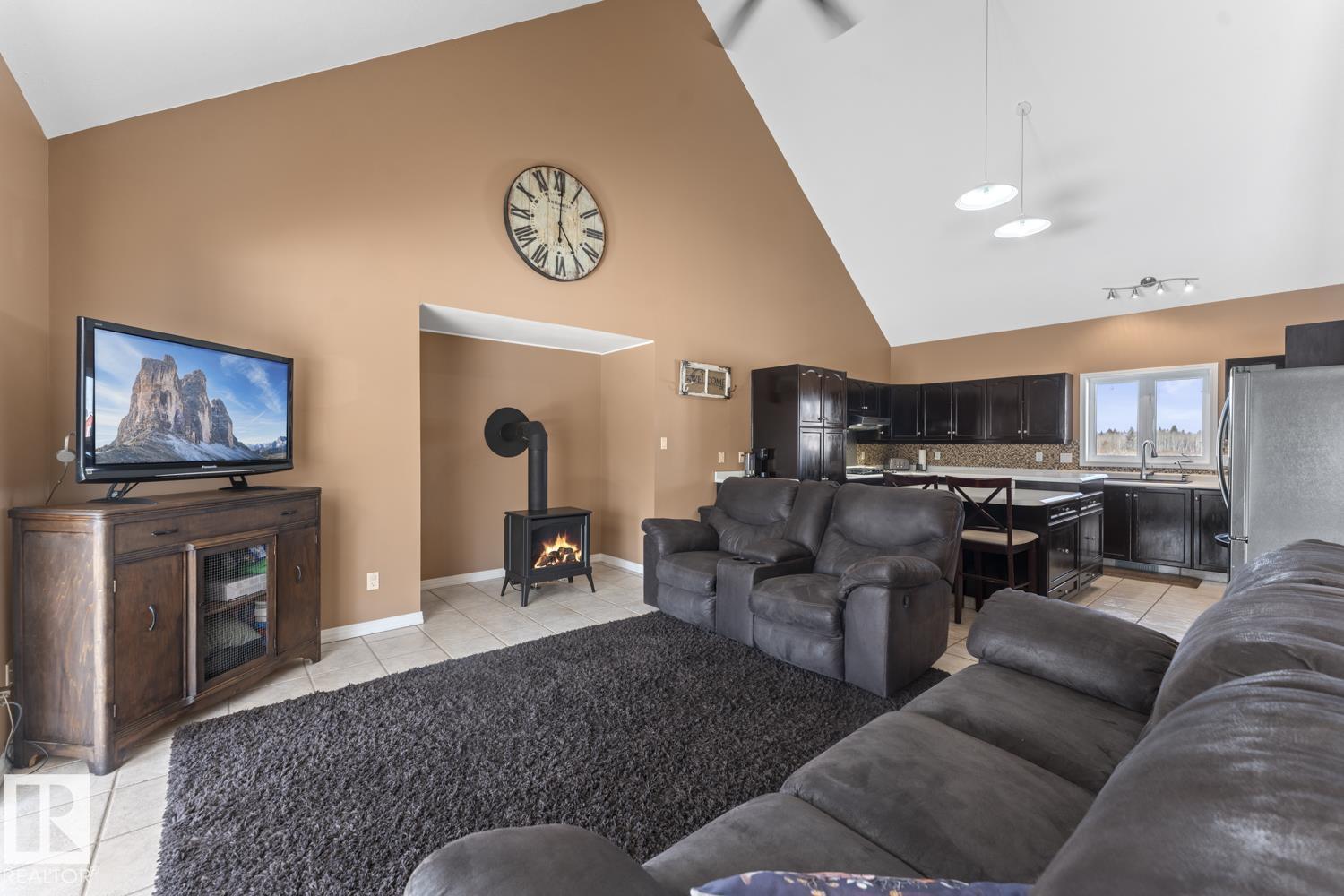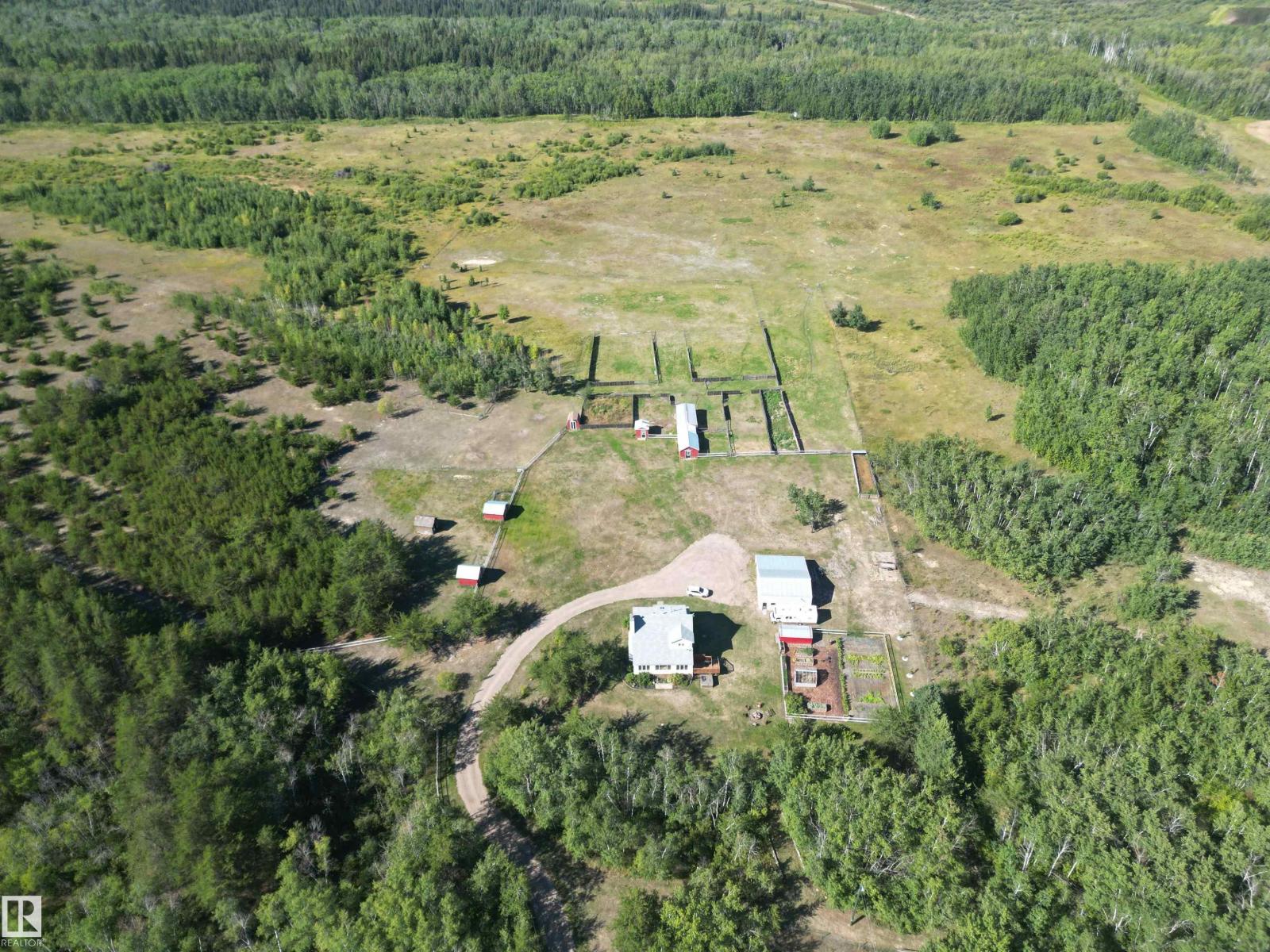 A majestic 140 acres of land comes with various outbuildings,heated waterers,chicken coop,garden, various fruit trees, animal pens,greenhouse,2 outdoor wells ,hay shed 20X32, 24X32 shop(heated on one side) and an asphalt driveway. Property is fenced to the treeline. Custom built 2 storey home with 3 bedrooms and 2.5 baths. Open concept layout with 22' vaulted ceilings over the living room, gas stove, large 2 tiered island, an abundance of maple espresso cabinets with tiled back-splash & reverse osmosis. Heated floors & seperate thermostats on all 3 levels, as well as AC. The front of the home offers a south facing space that opens up to the main area. The primary sits at the top of the house w/ a walk in closet and 5 piece ensuite. The lower level has another gas fireplace, family room space,2 piece guest bathroom & a utility room for canning (workable gas stove). A rare opportunity to own this much land, the lifestyle & the serenity of acreage living. A 33' covered veranda with 220V for hot tub(as is). (id:63190)