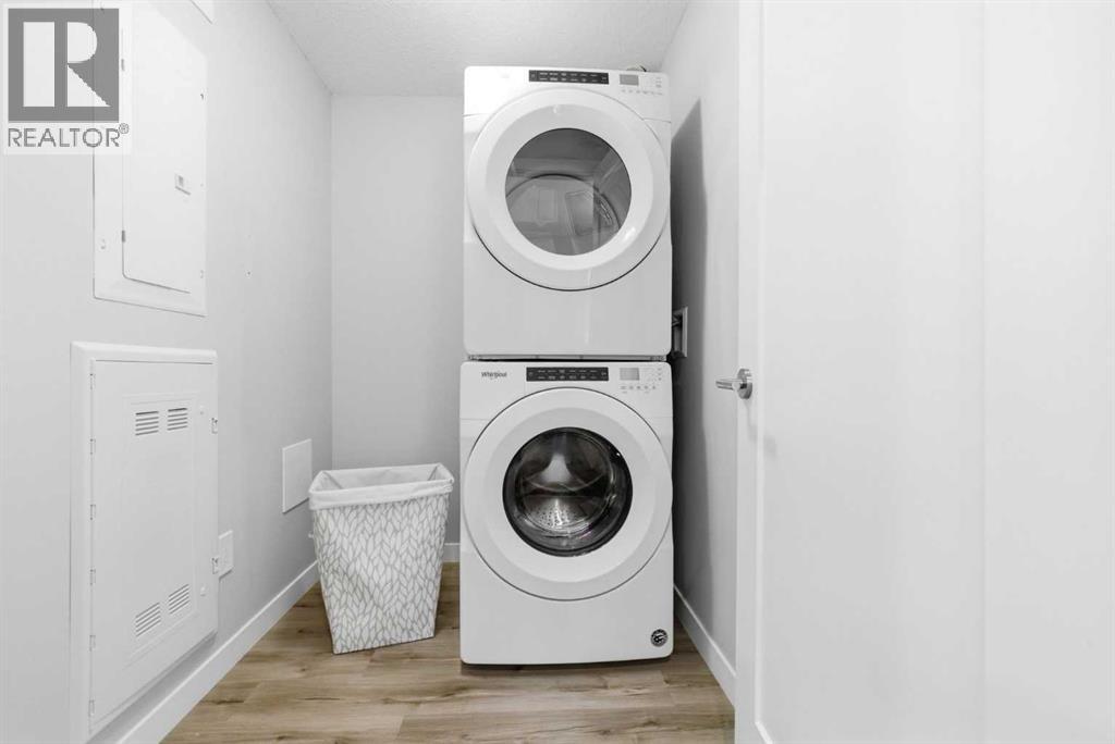 Gorgeous 2 bedroom + 2 bathroom unit in the Fish Creek Exchange! This incredible unit is one of the largest floorplans available at 932 square feet. Beautifully laid out with modern luxury vinyl plank floors and a neutral colour palette, this home presents 10 out of 10.. The kitchen offers full-height cabinetry, a central quartz island, and stainless steel appliances. The primary suite is spacious and inviting with a walk-through closet that leads to a stunning 5-piece ensuite with a luxurious oversized shower. A second bedroom is located on the opposite end of the unit with convenient access to a 4-piece bathroom. The laundry room is self-contained with a contemporary washer & dryer. This lovely condo features large windows with incredible views. The covered corner balcony is a great place to enjoy morning coffees, and there is a gas line for a BBQ. Secure titled underground parking and a titled storage unit are great added perks. This is a fantastic complex with heat, water & sewage included in the condo fees! One pet is allowed, subject to board approval. No weight restriction. Available for immediate occupancy. Fantastic location, close to LRT, shopping, Fish Creek Park walking paths, and tennis courts! (id:63190)