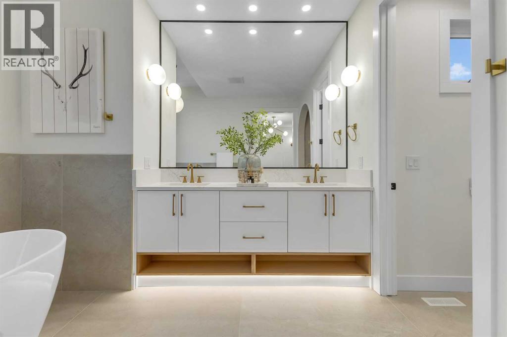 Presenting 2212 35 Street SW — a meticulously crafted luxury residence in Killarney, featuring over 4 bedrooms, 4.5baths and almost 2750sq/ft of living space!This home makes an immediate statement with expansive floor-to-ceiling windows and a light-filled open-concept main floor that blends form and function effortlessly. A fully enclosed glass office adds a striking architectural feature, while the chef-inspired kitchen is anchored by a dramatic 12-foot quartz waterfall island and wrapped in rich white oak detailing throughout. Thoughtfully selected designer tile, gas fireplace, custom millwork, soft archways, and premium hardwood flooring create a cohesive, high-end aesthetic rarely seen at this level.The upper level is intentionally designed with every bedroom offering its own private ensuite — delivering both comfort and privacy. The primary suite is a true retreat, featuring soaring vaulted ceilings, oversized windows, and a spa-caliber ensuite complete with heated floors, a steam shower, dual vanities, and a custom coffee bar. Separate his-and-hers walk-in closets complete the experience. Secondary bedrooms are finished with tray ceilings.The fully developed basement featuring in-floor heating, a separate entrance, a glass-enclosed gym, wet bar, full bedroom, and bathroom — perfectly suited for entertaining, extended family, or flexible living.Positioned in one of Calgary’s most sought-after inner-city communities, Killarney offers seamless access to downtown, premier schools, parks, and lifestyle amenities. (id:63190)