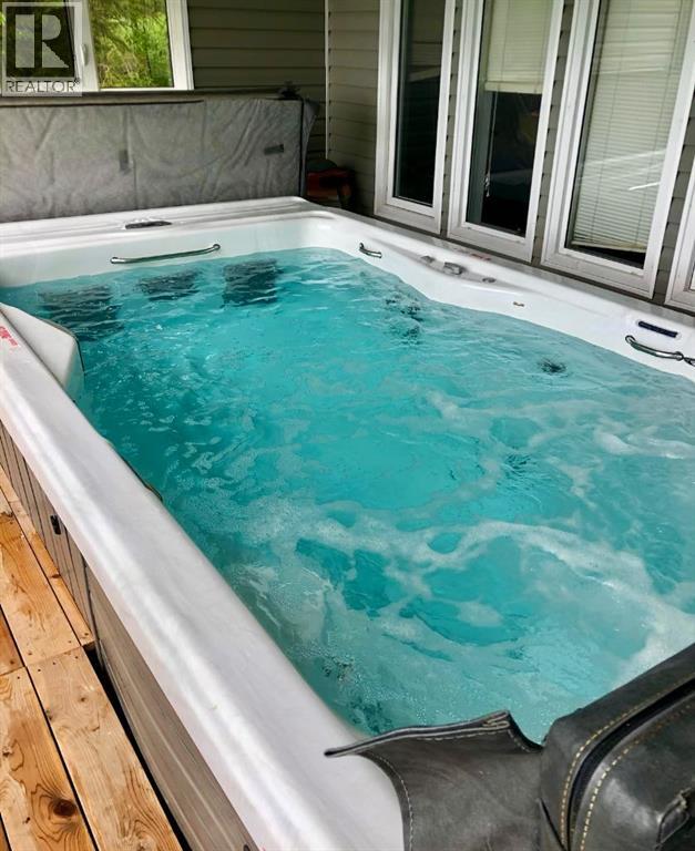 Dreaming about a lakefront home and lifestyle? Welcome to this stunning Sunset Bay home on a rare ½-acre level lot with direct lake access—perfect for your private dock and boat launch! Enjoy over 2,325 sq ft of living space with breathtaking lake views from the kitchen, dining, and living room, full-length windows and a spacious deck with glass railing so you can gaze at the water and enjoy the sunsets! The kitchen features plenty of cabinetry and a large working island. To make carrying in supplies nice and easy, there is a walk through pantry from the garage to the kitchen. Next to the dining area are patio doors that bring in light and open to the large upper deck where you can bbq, dine outside, or relax with friends. Cozy up in the living room with a wood-burning fireplace. On the main floor you will also find 2 bedrooms, 2 bathrooms, a laundry area with story, and access to the garage!The walkout lower level includes a spacious family room & another fireplace with sculptured stone walls,, an additional bedroom, bathroom, office/hobby room. Your favorite space to retreat to just might be the covered swim spa area. In this sunroom there is a handy kitchenette bar area, and fitness area space. The beautifully landscaped yard includes an 8'x12' shed, and lawn that stretches right to the beach, with a gathering space around the firepit, and raised garden bed. There’s room for RV parking, with stunning views, and evenings under the stars! Enjoy community amenities like walking trails to the golf course and Sir Winston Churchill Park, a nearby playground, and a boat launch—all just steps away. Whether you're looking for a year-round residence or a turnkey family retreat, this lakefront gem has it all! This property offers one of the best lakefronts with municipal water and sewer services! To be sure you are ready to go for summer, a boat lift, and dock may also be available at the right price! (id:63190)