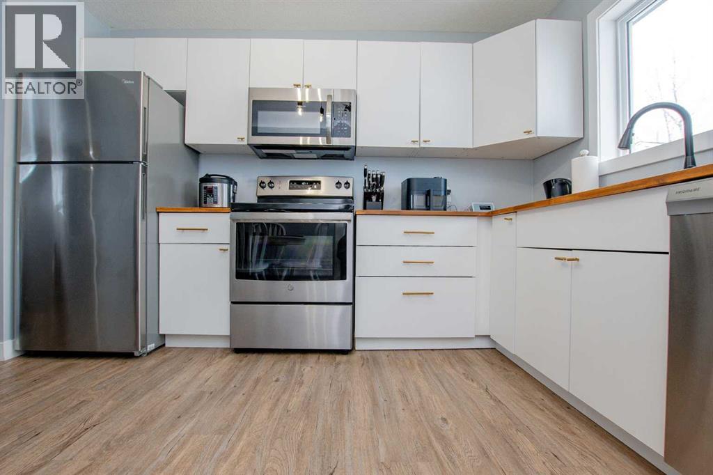 Beautifully Remodeled Bungalow in College Park! Welcome to this charming and cozy bungalow, perfectly suited for first-time buyers, students, or savvy investors looking to expand their portfolio. This home seamlessly blends timeless character with stylish modern updates. Step inside to discover a completely refreshed interior featuring new vinyl plank flooring, fresh paint, updated trim, and modern lighting throughout. The kitchen has been thoughtfully redesigned with brand-new appliances, butcher block countertops, updated cabinetry, and a clean, functional layout. The bathroom is equally impressive, showcasing a brand-new walk-in shower, vanity, and toilet. Additional upgrades include new drywall, doors, new front & back porch, newer roof & new front exterior with finishes that give the entire home a fresh, move-in-ready feel. Situated on a large lot, the property also offers a detached single garage and plenty of outdoor space. Enjoy the convenience of being within walking distance to GPRC, restaurants, shopping, and the brand-new Hospital. This is an incredible opportunity to own a beautifully updated home in a prime location. (id:63190)