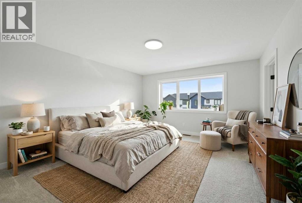 When quality truly matters, this stunning 2059 sq ft two-storey offers immediate possession and exceptional craftsmanship throughout. A spacious front entry with ample storage and mudroom access welcomes you into a bright, open-concept main floor designed for effortless entertaining. The show-stopping kitchen features ceiling-height cabinetry, a large centre island with eating bar, waterfall quartz countertops, and stainless steel appliances, including a fridge with water and ice. A convenient walkthrough pantry connects directly to the garage—perfect for unloading groceries with ease. Upstairs, enjoy a cozy bonus room ideal for movie nights or relaxing with family. The luxurious primary suite boasts a walk-in closet and a spa-inspired 5-piece ensuite complete with dual sinks, a glass door shower, deep soaker tub, and heated floors. Two additional spacious bedrooms, a full bathroom, and a dedicated laundry room complete the upper level. The unfinished basement offers 9’ ceilings and a separate side entry, presenting incredible potential for a home business, or additional living space. Outside, the west-facing backyard is already fenced and will be finished with sod—ready for your personal touch, whether it’s a firepit, garden, or outdoor retreat. Enjoy low-maintenance composite decking at both the front and back, plus an insulated and boarded garage with furnace rough-in and EV readiness. This forward-thinking home also includes solar panels for long-term energy savings, along with an energy-efficient furnace, hot water tank, A/C rough-in, and a 10-year new home warranty for peace of mind. Built by Black Wolf Custom Homes and located in the sought-after community of Crestview, you’ll love the abundance of walking and biking trails, playgrounds, proximity to schools and future high schools, all town amenities, and Sylvan Lake. With easy highway access, you’re just minutes to Red Deer or a quick escape west to the mountains. Taxes to be assessed. (id:63190)