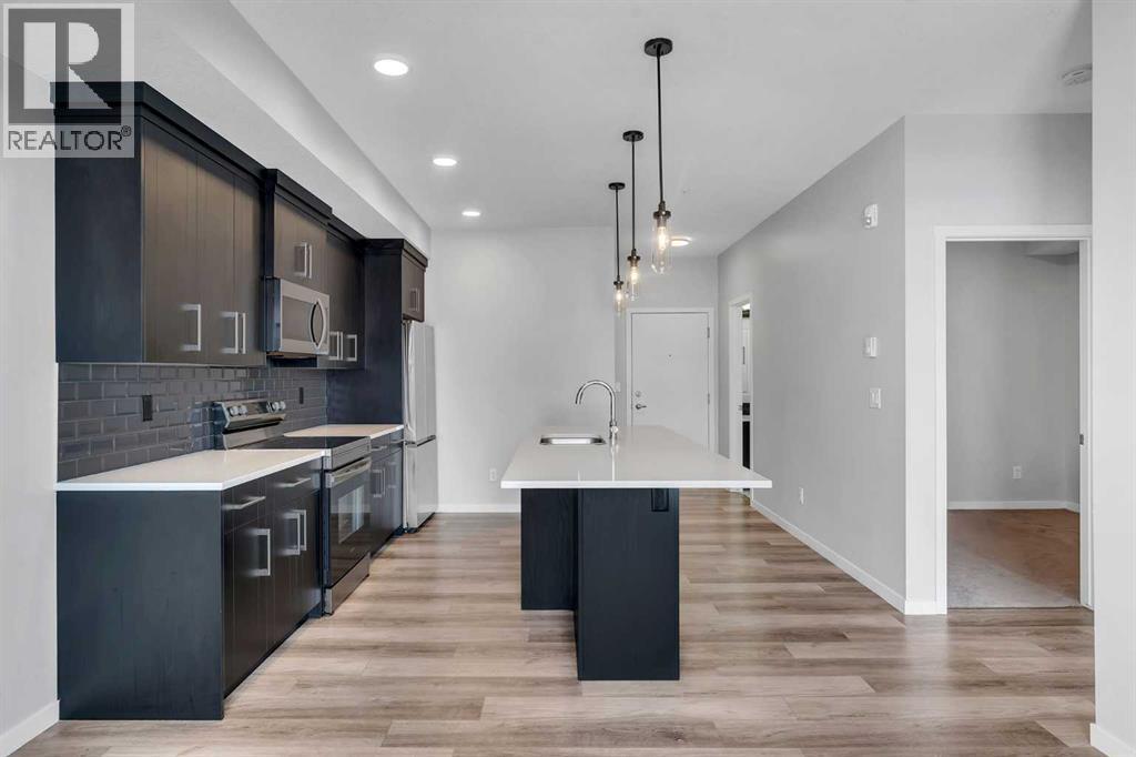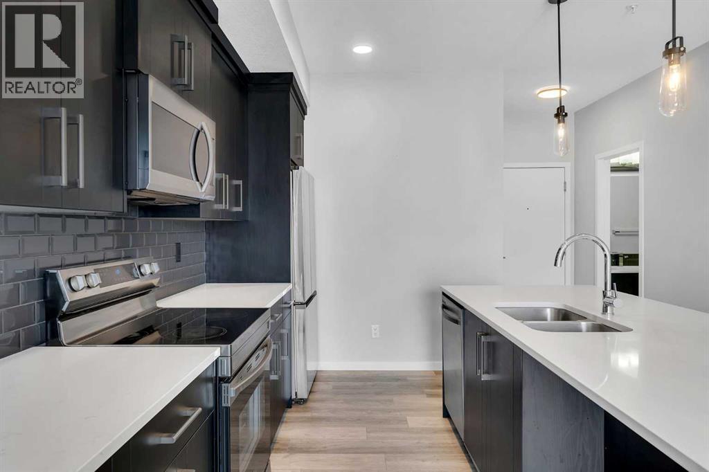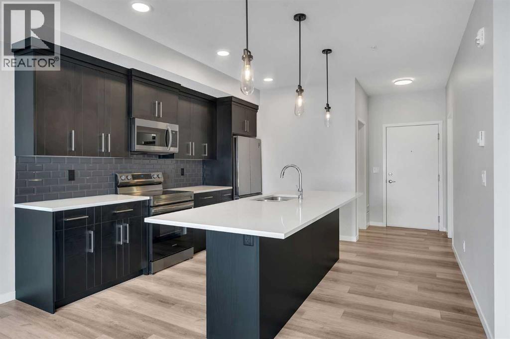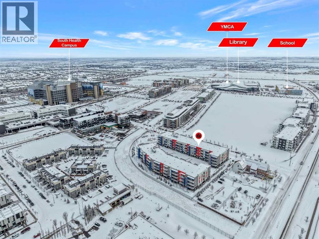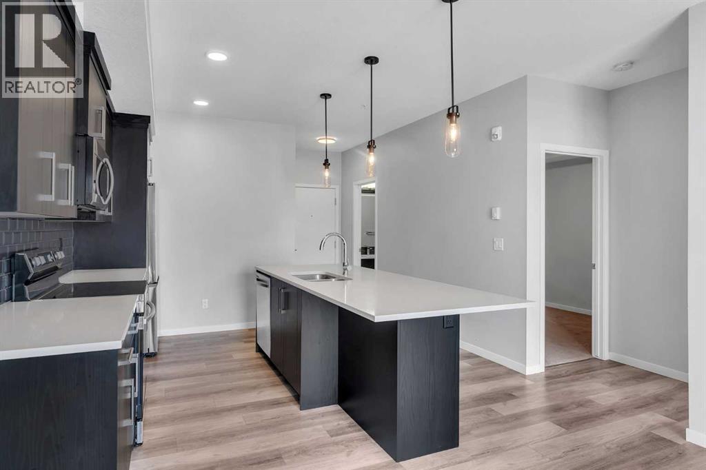 Beautifully designed top-floor, 2-bedroom condo overlooks a peaceful inner courtyard and offers 639 sq ft of bright living space. The open-concept layout is enhanced by 9-foot ceilings and large windows.Durable vinyl plank flooring runs throughout, with the kitchen anchored by a quartz island—perfect for cooking, entertaining, or everyday living. The kitchen flows seamlessly into the living area and out to a private balcony.The primary bedroom features a large window and plenty of natural light, while the second bedroom offers flexibility for guests, a home office, or roommate living. A well-appointed bathroom and a rough-in for future air conditioning gives you the option to add extra comfort down the road.Additional highlights include in-suite laundry and a titled underground parking stall. Seton Park Place III is a professionally managed, secure, pet-friendly building (with board approval) with low condo fees.Located in the heart of one of Calgary’s most vibrant and walkable communities, you’re just steps from the South Health Campus, world-class YMCA, public library, Cineplex, Superstore, restaurants, shops, and countless amenities. With quick access to Deerfoot Trail and Stoney Trail, commuting anywhere in the city is effortless.Whether you’re a first-time buyer or investor, this top-floor, courtyard-facing condo with titled parking is a standout opportunity in one of Calgary’s most sought-after urban communities. (id:63190)