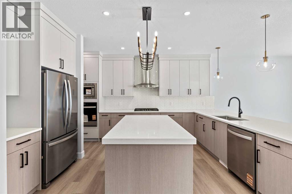 Experience refined living in Sunset Ridge with this thoughtfully designed Green Cedar Homes residence—a 5-bedroom, 5-bathroom home offering over 2,200 sq. ft. of above-grade living space, plus a fully developed basement. Blending modern elegance with functional design, this home showcases the quality craftsmanship Green Cedar is known for.The main floor features an inviting open-concept layout, filled with natural light and designed for both entertaining and everyday living. The chef-inspired kitchen is appointed with sleek cabinetry, premium finishes, and a walk-through pantry that connects seamlessly to a functional mudroom—ideal for busy households. A versatile flex room on this level provides the perfect space for a home office, playroom, or quiet study.Upstairs, a spacious bonus room creates a comfortable retreat for family gatherings or movie nights. The primary suite offers a private sanctuary, complete with a spa-inspired ensuite and a generous walk-in closet. Two additional bedrooms, each with convenient access to full bathrooms, provide ample space and privacy.The fully developed basement extends the home’s functionality with two additional bedrooms, a full bathroom, and a large recreation area, making it ideal for guests, extended family, or multi-generational living.Located in one of Cochrane’s most sought-after communities, Sunset Ridge offers scenic walking paths, nearby schools, parks, and breathtaking Rocky Mountain views, all just minutes from town amenities. (id:63190)