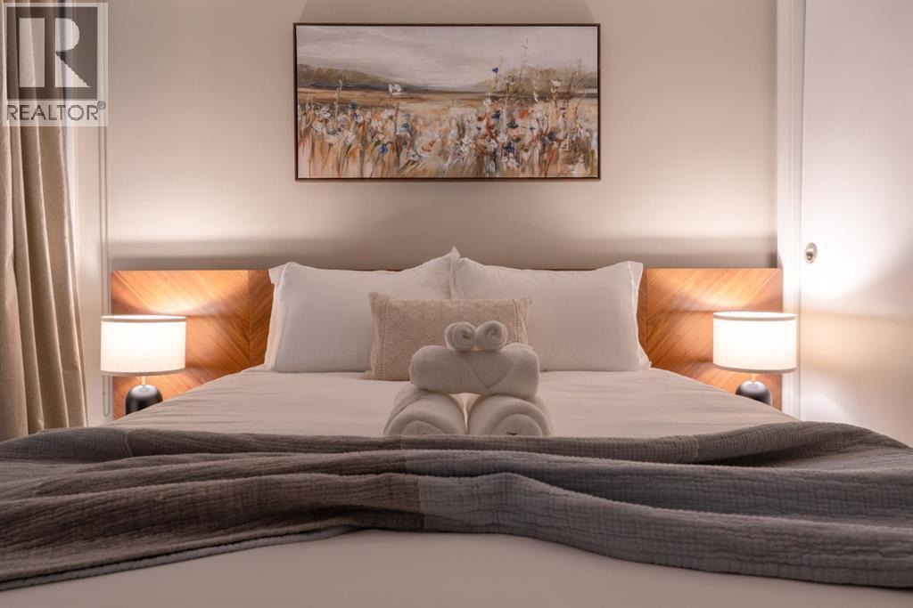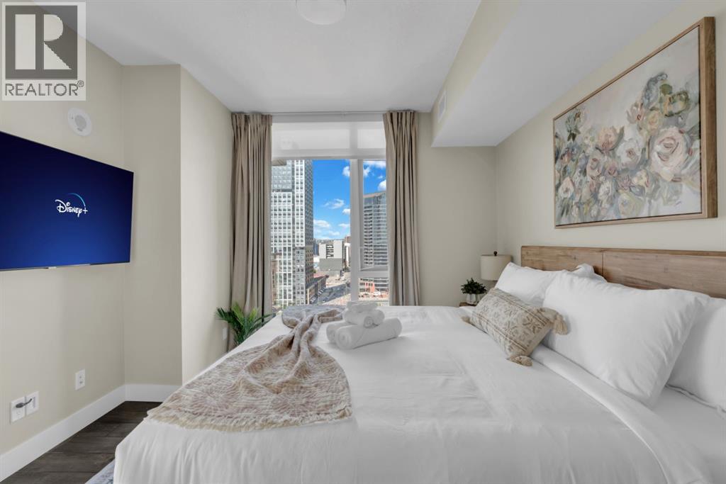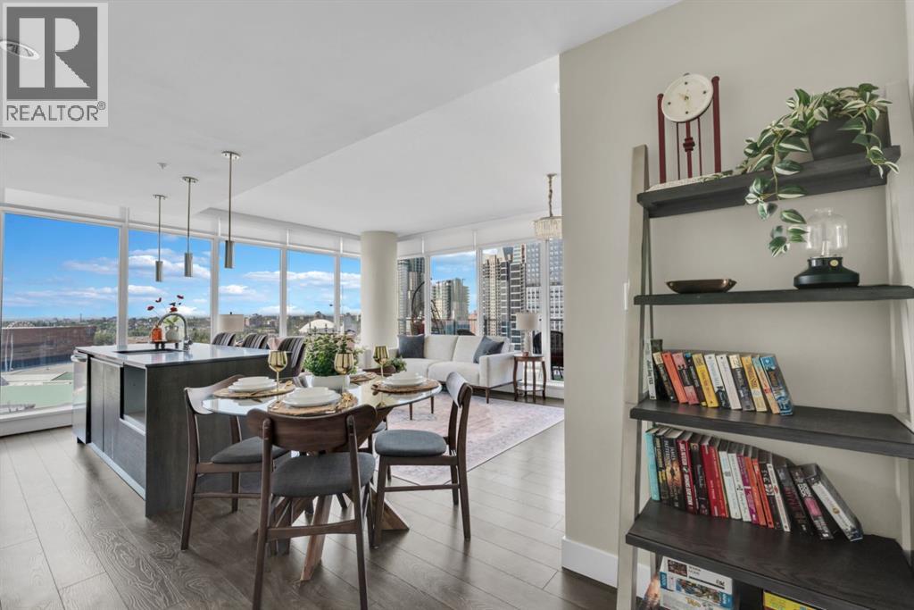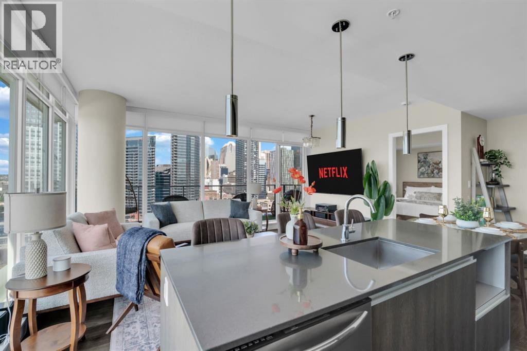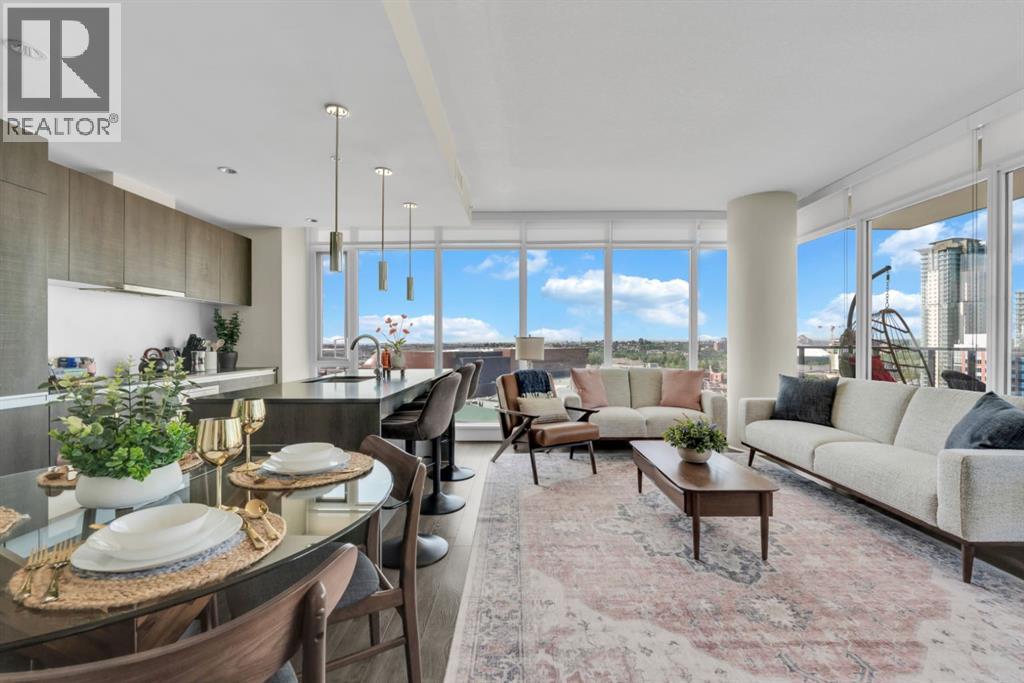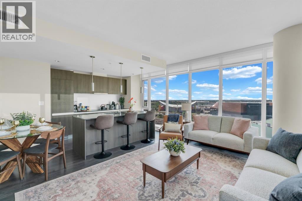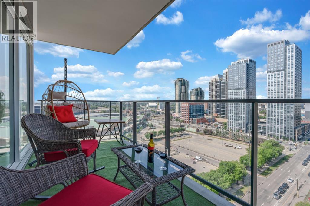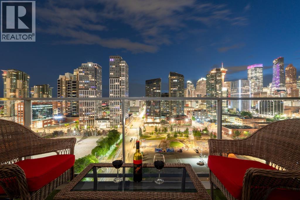 One of the few 900+ sq ft units currently available in The Guardian, this beautifully maintained condo stands out with its spacious layout, premium positioning, and stunning city-facing orientation. Located on the 14th floor in the highly desirable 09 stack, this home offers unobstructed skyline views of downtown Calgary and the Calgary Tower, filling the space with natural light through expansive floor-to-ceiling windows.The thoughtfully designed layout features a large, open-concept living area, ideal for both relaxing and entertaining. The modern kitchen is equipped with quartz countertops, Italian Armony Cucine cabinetry, and a sleek induction cooktop, blending style with functionality. The unit includes two well-sized bedrooms and two full bathrooms, offering comfort and privacy for residents, guests, or shared living. Step out onto your private balcony with BBQ, perfect for enjoying morning coffee or evening skyline views in your own outdoor space. This home has been exceptionally maintained and thoughtfully styled, creating a warm, upscale feel that stands apart from standard builder-grade units.Additional Features:Titled tandem parking (2 vehicles) conveniently located near the elevator.Oversized titled underground storage locker (rare within the building).24/7 concierge & secure access.Fitness centre, yoga studio & owner’s lounge.EV charging stations conveniently located just outside the building.Prime Inner-City Location: Situated in Calgary’s vibrant Beltline, you are just steps from Stampede Park & BMO Centre, 17th Avenue dining & nightlife, East Village & Bow River pathways, plus cafes, restaurants, transit, and everyday amenities.This residence offers more than just a home; it provides a lifestyle of convenience and sophistication. The 09 stack is widely considered one of the best in the building for its direct views and functional floor plan. Whether you are a professional seeking a central hub or a savvy investor looking for a premi um asset, this property delivers on every front. The high-end finishes, from the designer cabinetry to the durable quartz, ensure lasting value.The building itself is a landmark of the Calgary skyline, known for its sleek glass facade and high-quality construction. With the upcoming development in the Culture and Entertainment District, this location is poised for significant future appreciation. Secure your place in the heart of the action.The property is offered unfurnished, however select furnishings may be negotiable, providing flexibility for buyers seeking a partially move-in-ready option. This is a rare chance to acquire a high-floor, large-format unit with tandem parking and oversized storage in one of Calgary's most iconic towers. Experience the best of urban living at The Guardian II. Don't miss this opportunity to own in one of Calgary's most prestigious buildings. (id:63190)