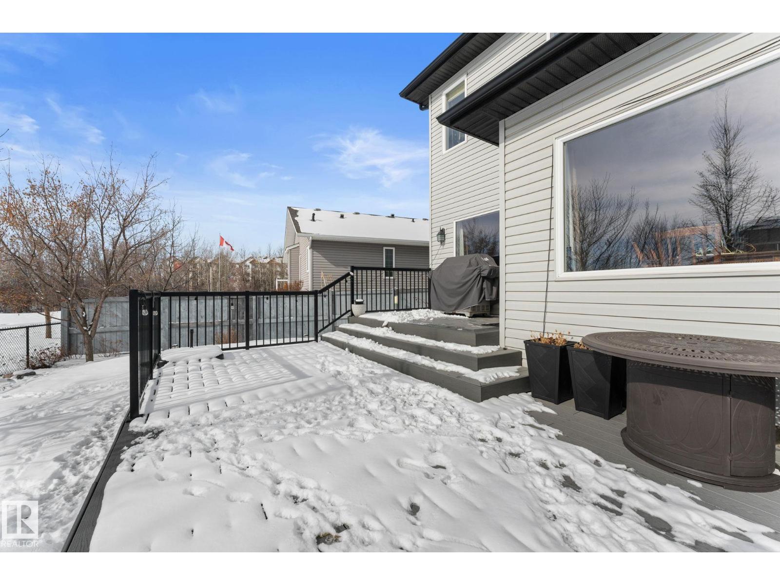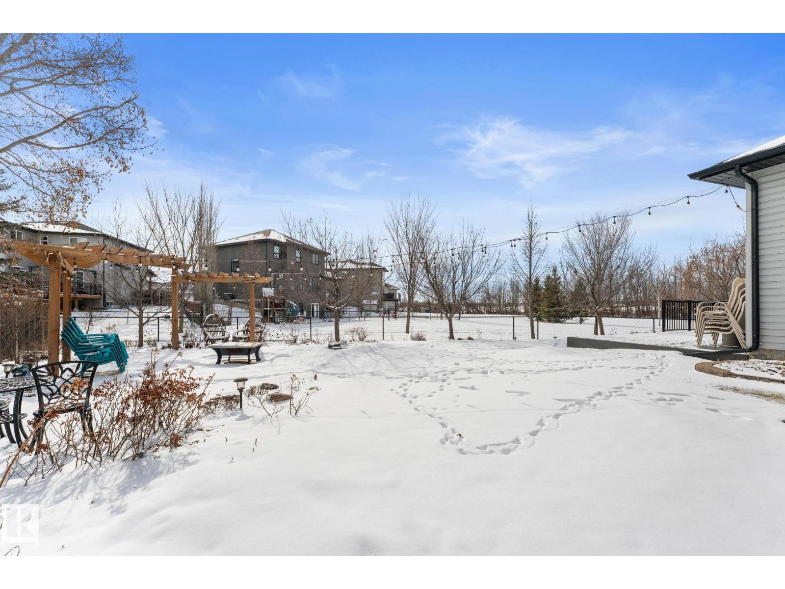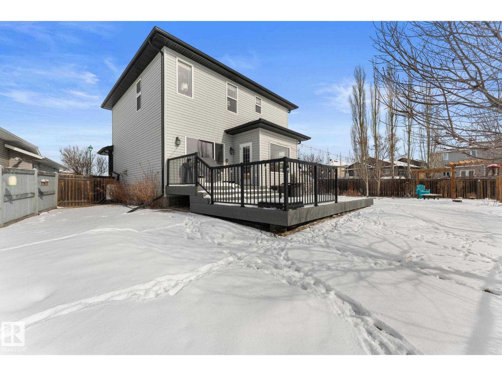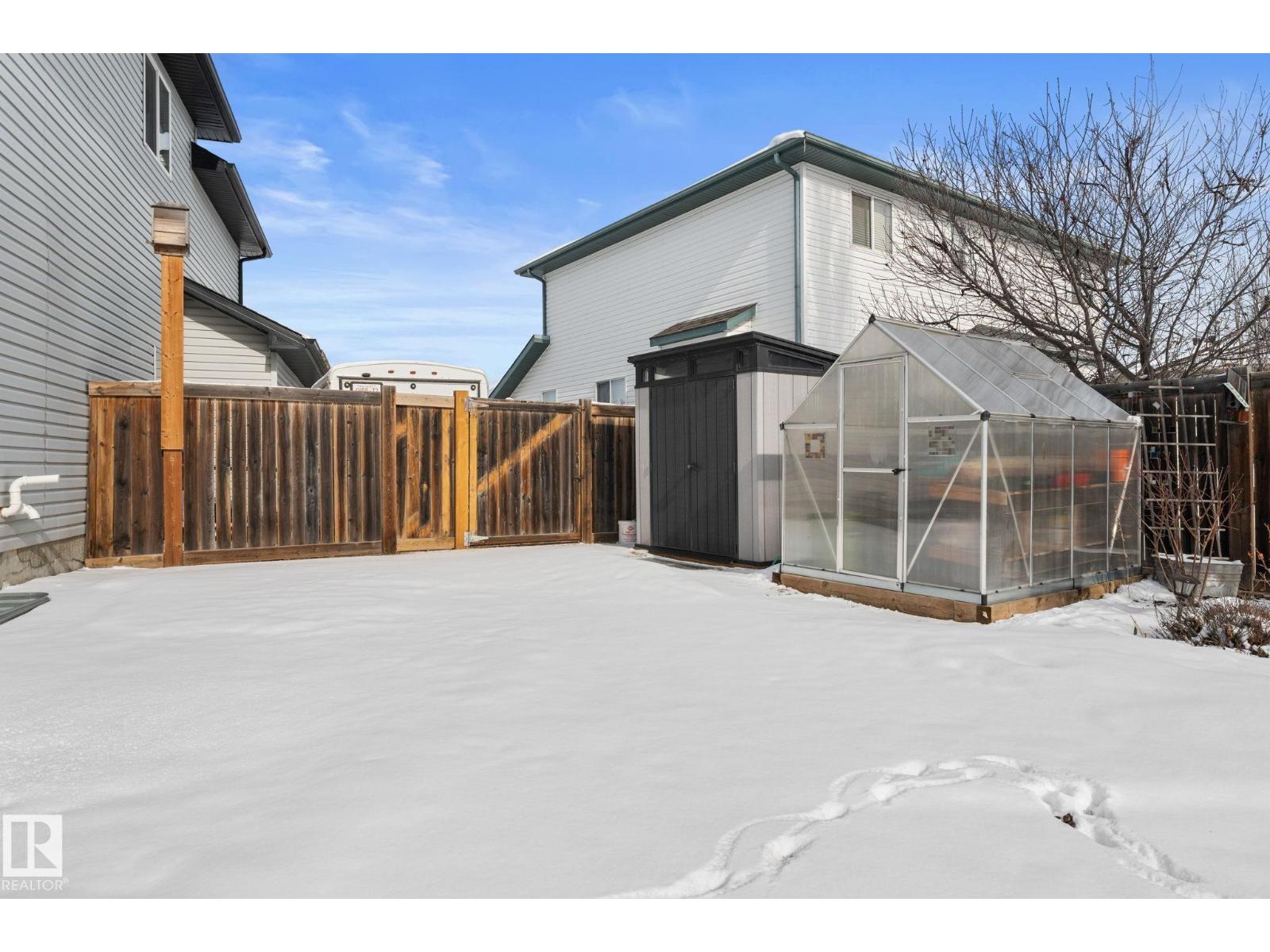 HUGE PIE SHAPED LOT! BEAUTIFULLY MAINTAINED! CHARACTER THROUGHOUT! This lovely home is located in the highly desirable City of Beaumont. It has 3 generous sized bedrooms upstairs with an additional bedroom in the basement. The open concept living space welcomes you with the warmth of the gas fireplace, and includes a huge custom kitchen with plenty of storage and second oven for your cooking dreams. Right off the dining room you'll find a large composite deck leading you to a beautifully landscaped backyard, backing green space, with a fireplace patio and plenty of perennials to enjoy. Stainless steel appliances in the kitchen, full laundry room with sink on the main level, oversized double car garage, RV Parking, bonus room, fully finished basement and more. NEW SHINGLES in 2025, pergola in the backyard, greenhouse, newer furnace & hot water tank. Don't miss out - this one won't last long! (id:63190)
