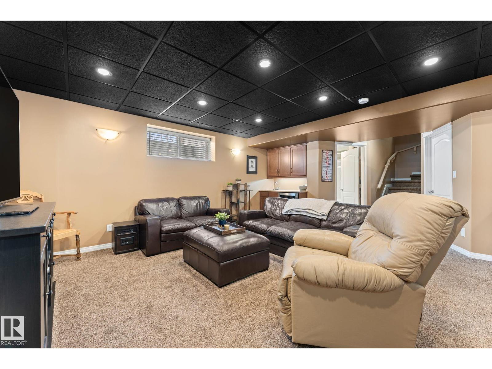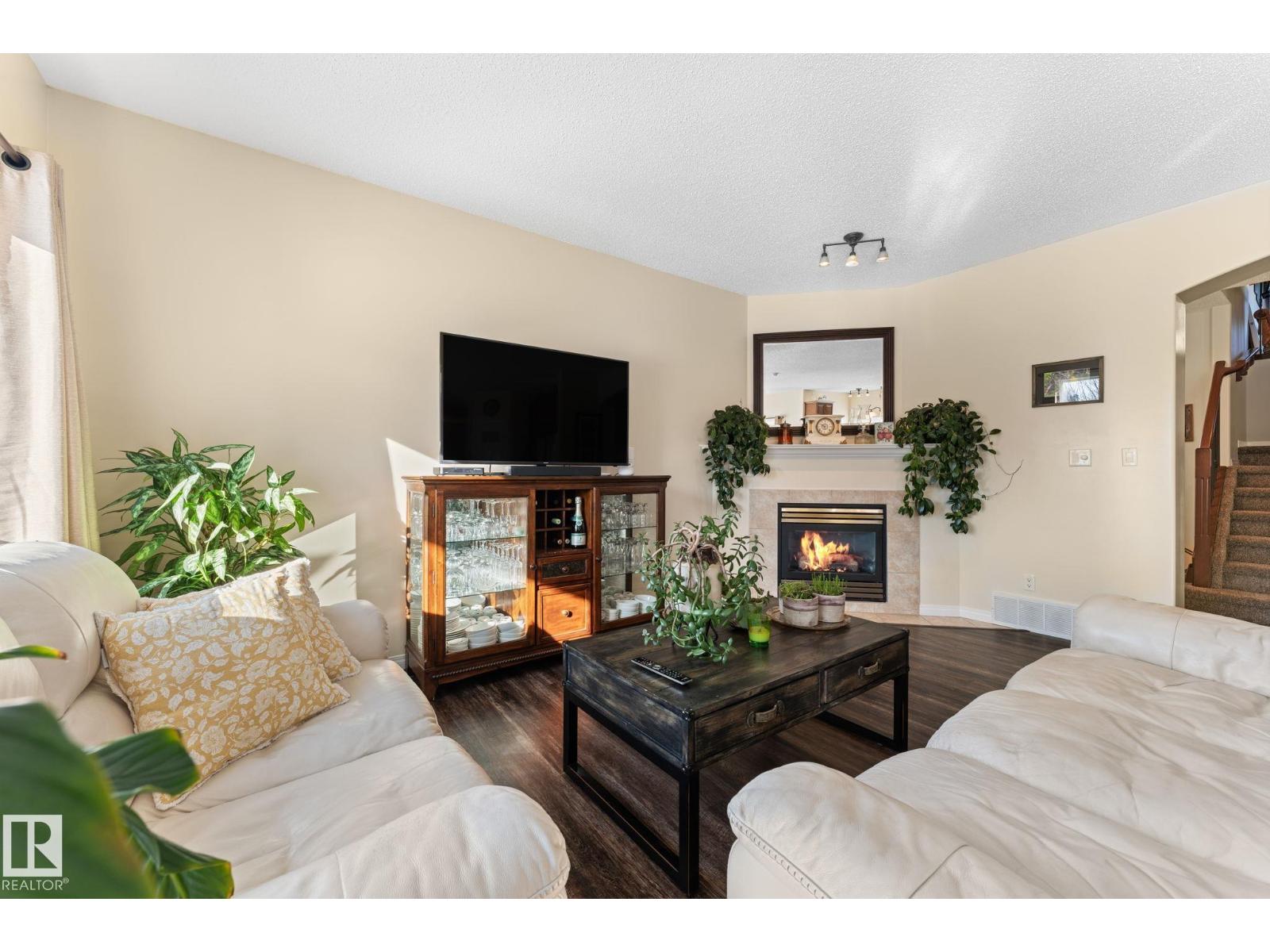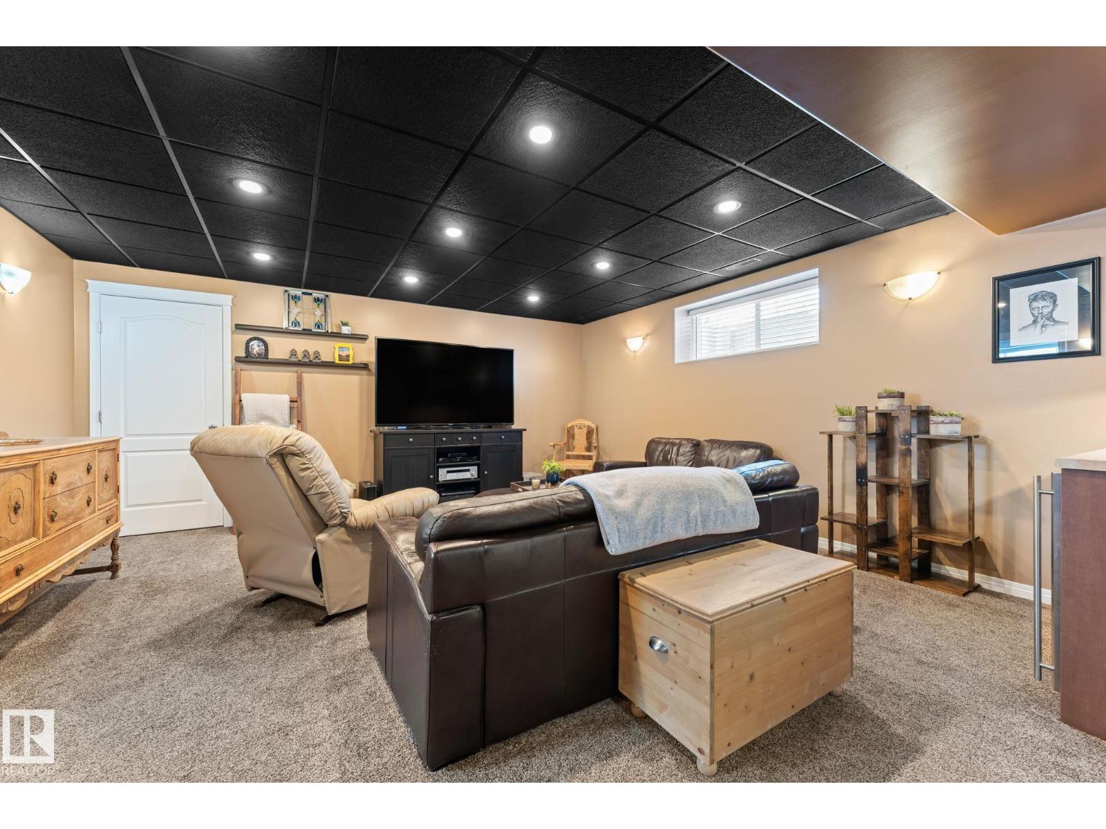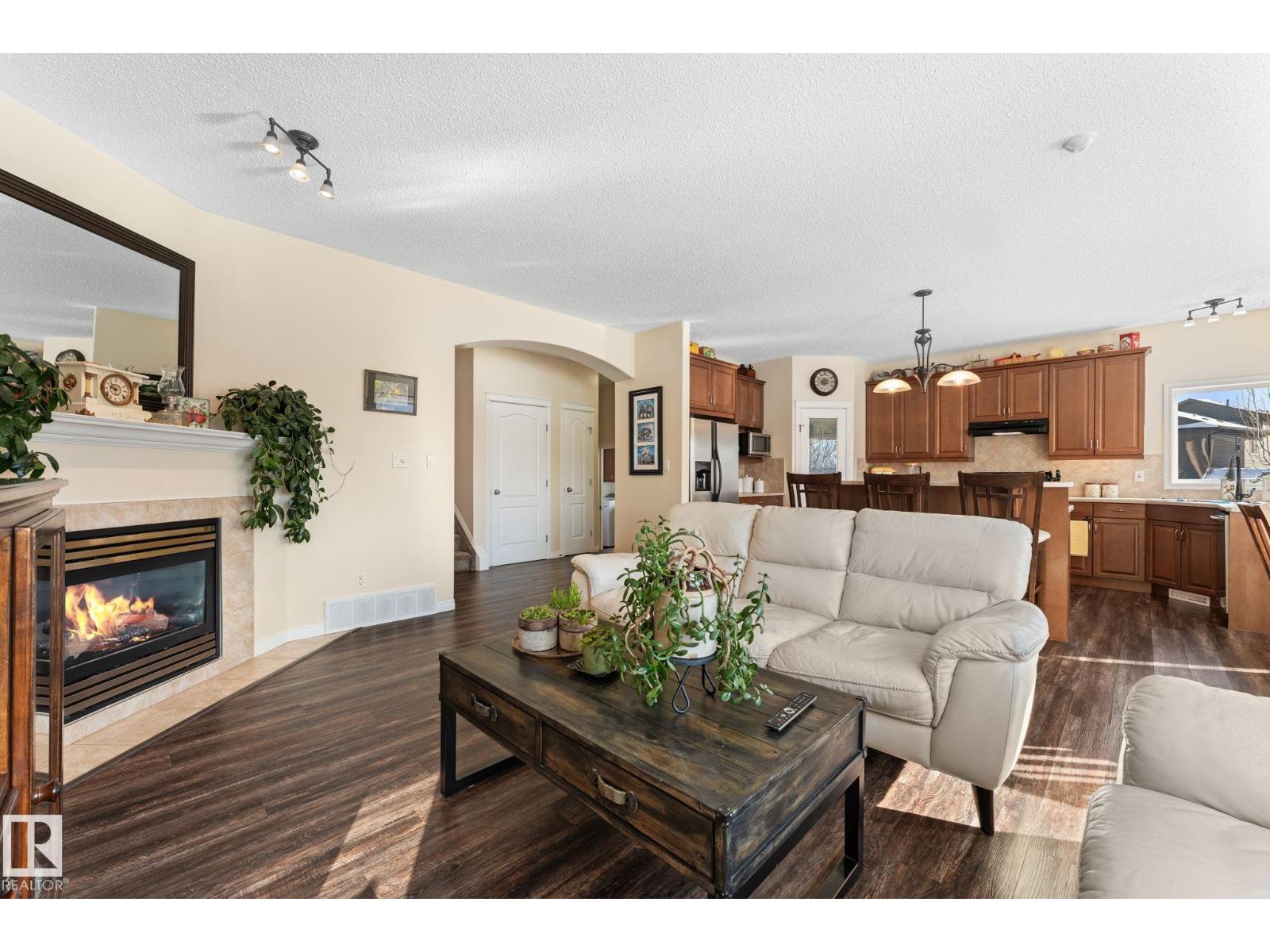 HUGE PIE SHAPED LOT! BEAUTIFULLY MAINTAINED! CHARACTER THROUGHOUT! This lovely home is located in the highly desirable City of Beaumont. It has 3 generous sized bedrooms upstairs with an additional bedroom in the basement. The open concept living space welcomes you with the warmth of the gas fireplace, and includes a huge custom kitchen with plenty of storage and second oven for your cooking dreams. Right off the dining room you'll find a large composite deck leading you to a beautifully landscaped backyard, backing green space, with a fireplace patio and plenty of perennials to enjoy. Stainless steel appliances in the kitchen, full laundry room with sink on the main level, oversized double car garage, RV Parking, bonus room, fully finished basement and more. NEW SHINGLES in 2025, pergola in the backyard, greenhouse, newer furnace & hot water tank. Don't miss out - this one won't last long! (id:63190)