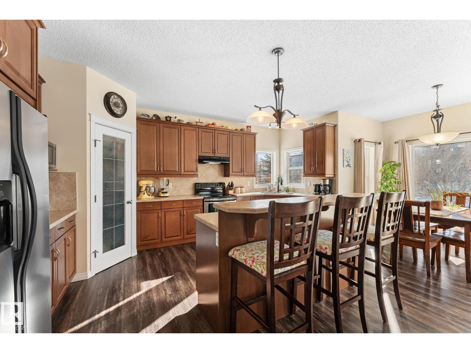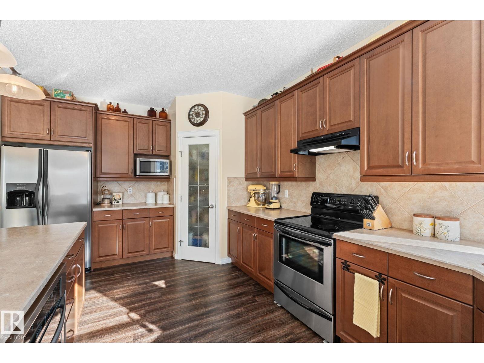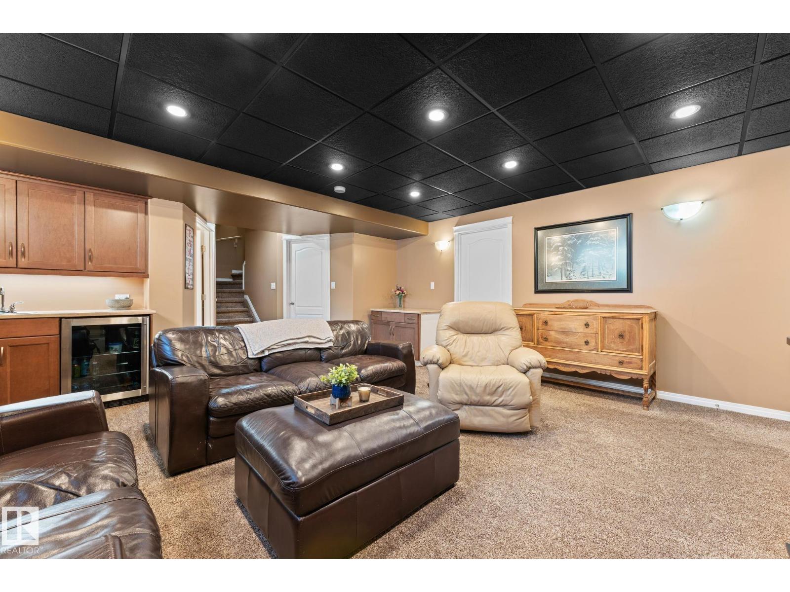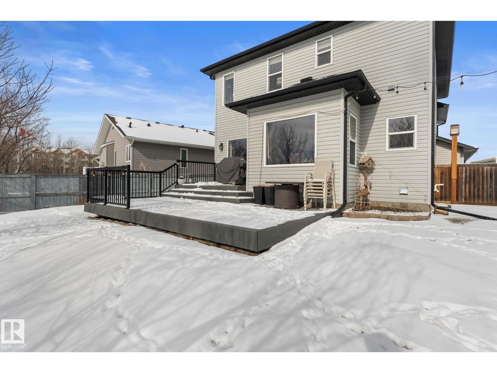 HUGE PIE SHAPED LOT! BEAUTIFULLY MAINTAINED! CHARACTER THROUGHOUT! This lovely home is located in the highly desirable City of Beaumont. It has 3 generous sized bedrooms upstairs with an additional bedroom in the basement. The open concept living space welcomes you with the warmth of the gas fireplace, and includes a huge custom kitchen with plenty of storage and second oven for your cooking dreams. Right off the dining room you'll find a large composite deck leading you to a beautifully landscaped backyard, backing green space, with a fireplace patio and plenty of perennials to enjoy. Stainless steel appliances in the kitchen, full laundry room with sink on the main level, oversized double car garage, RV Parking, bonus room, fully finished basement and more. NEW SHINGLES in 2025, pergola in the backyard, greenhouse, newer furnace & hot water tank. Don't miss out - this one won't last long! (id:63190)