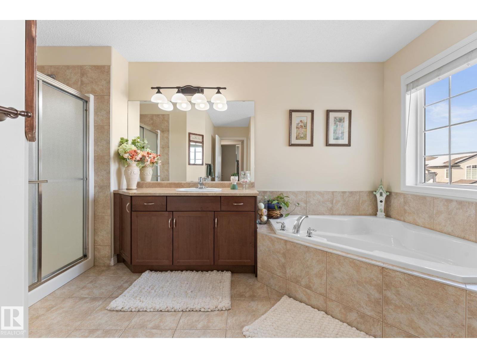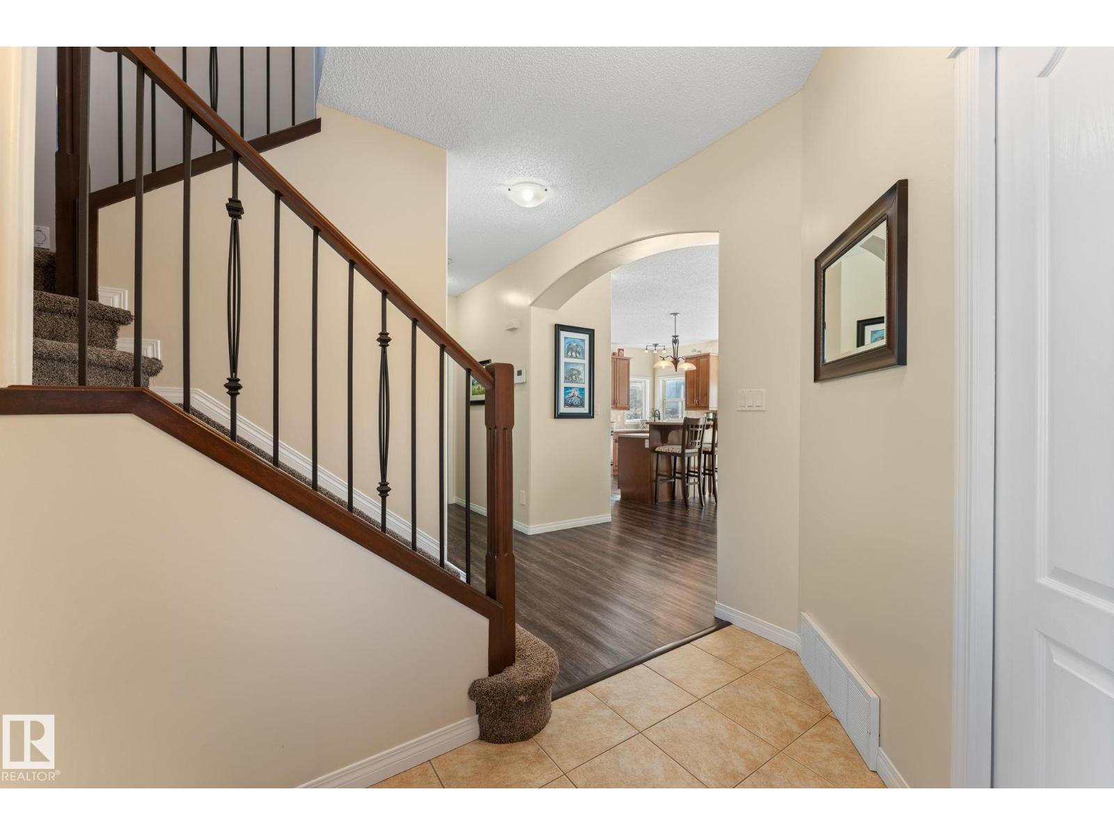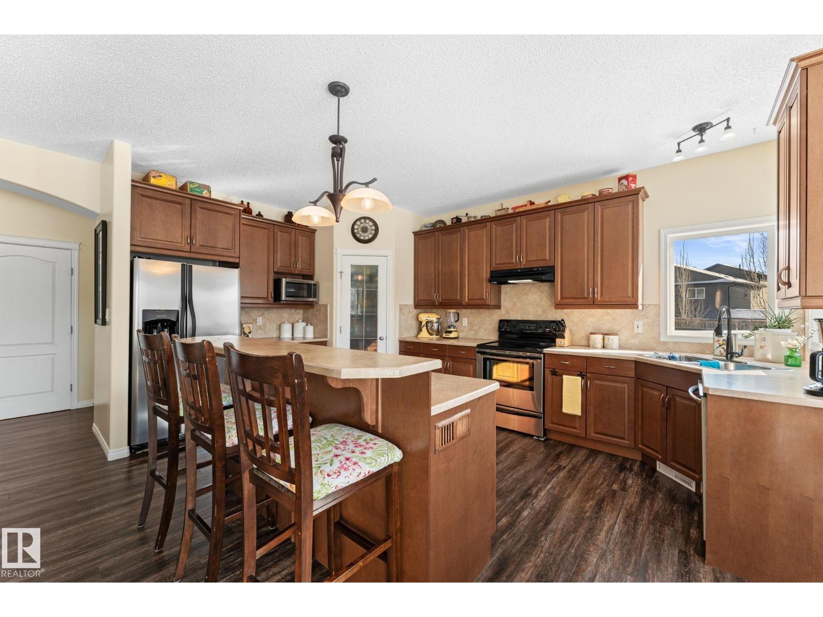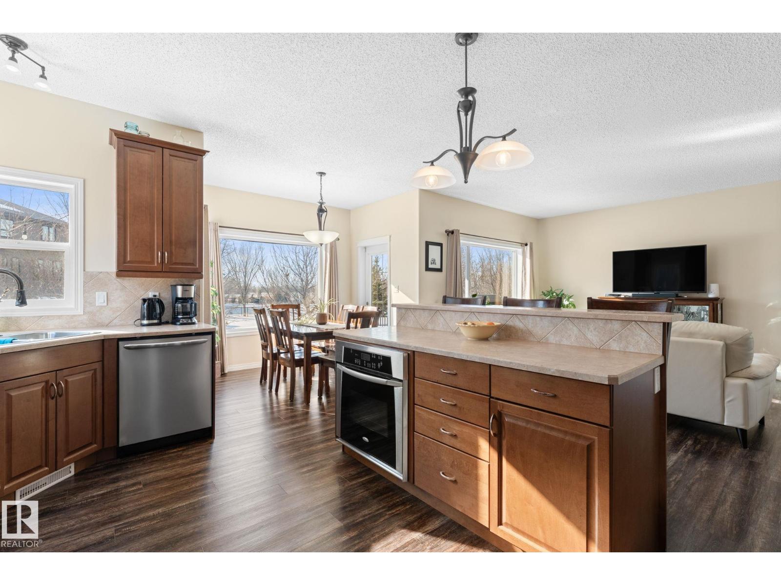 HUGE PIE SHAPED LOT! BEAUTIFULLY MAINTAINED! CHARACTER THROUGHOUT! This lovely home is located in the highly desirable City of Beaumont. It has 3 generous sized bedrooms upstairs with an additional bedroom in the basement. The open concept living space welcomes you with the warmth of the gas fireplace, and includes a huge custom kitchen with plenty of storage and second oven for your cooking dreams. Right off the dining room you'll find a large composite deck leading you to a beautifully landscaped backyard, backing green space, with a fireplace patio and plenty of perennials to enjoy. Stainless steel appliances in the kitchen, full laundry room with sink on the main level, oversized double car garage, RV Parking, bonus room, fully finished basement and more. NEW SHINGLES in 2025, pergola in the backyard, greenhouse, newer furnace & hot water tank. Don't miss out - this one won't last long! (id:63190)