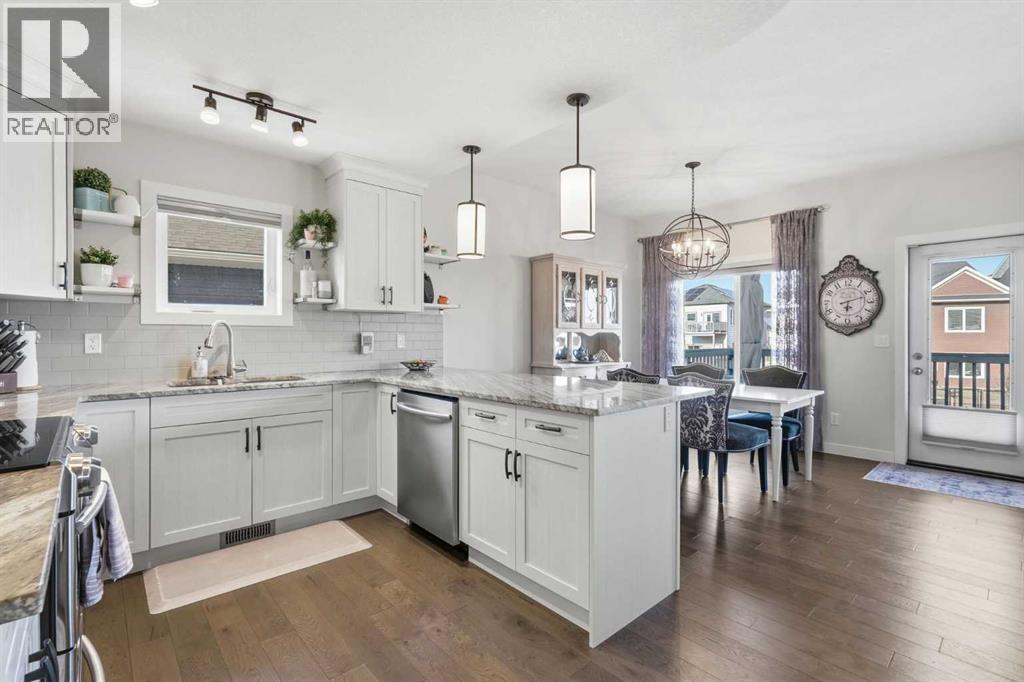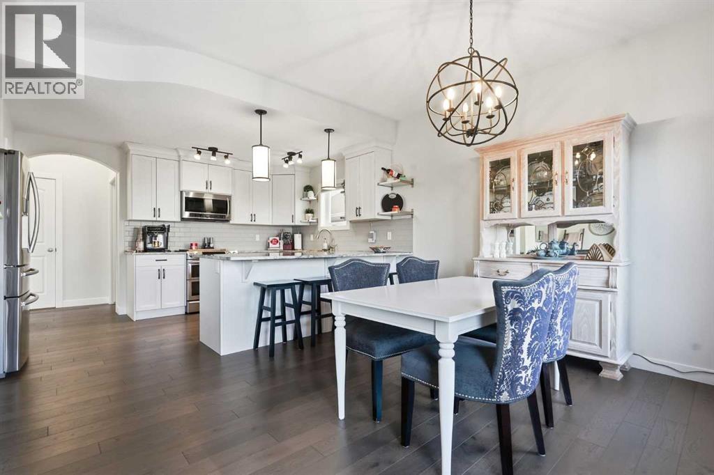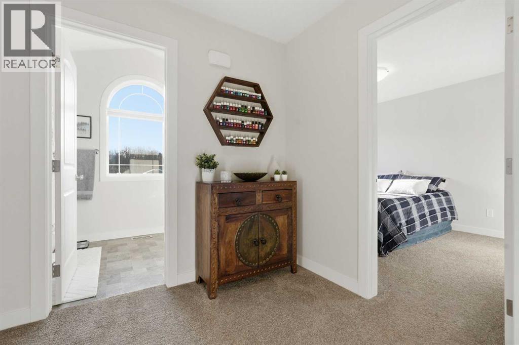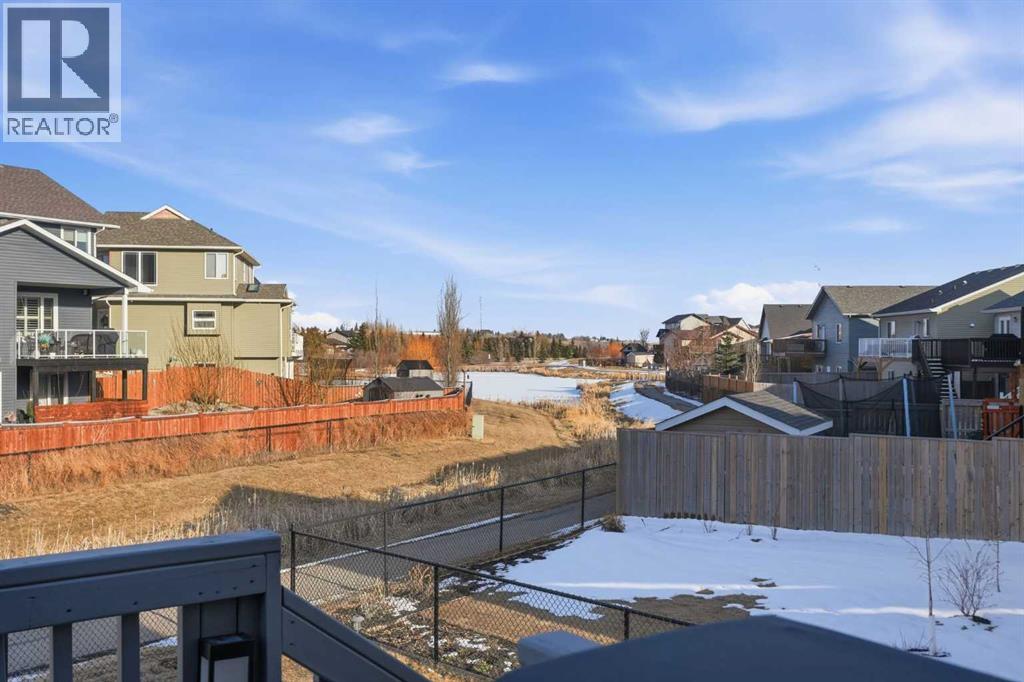 Offered by original owners, this meticulously maintained 2 storey home with over 2,470 sq ft of thoughtfully designed total living space on a pie-shaped lot with excellent curb appeal, a welcoming front seating area and a spacious front yard is a must see!Inside, the bright and modern layout features neutral colours, 9-foot ceilings throughout and granite countertops on all levels. With 4 bedrooms and 3.5 bathrooms, this home is ideal for families or those who love to entertain. The main level is filled with natural light from large windows and showcases engineered hardwood flooring, a welcoming front entry, and a convenient powder room. A custom-upgraded main-floor laundry room adds everyday convenience and functionality. Custom blinds, including blackout blinds upstairs and in the basement, central air conditioning, a security system, and smart lock technology provide comfort and peace of mind.Upstairs, the primary suite is a true retreat featuring vaulted ceilings, a walk-in closet, and a 3-piece ensuite with a full-sized shower. Large windows overlook the tranquil water and pathway, filling the space with natural light. The main upper bathroom also features vaulted ceilings and excellent lighting.The fully finished basement offers 9-foot ceilings, a spacious entertainment area, a wet bar with refrigerator, a large bedroom ideal for guests or family, a modern 3-piece bathroom, and generous storage.The extended-length, heated double garage is fully finished with built-in storage and heated by natural gas. The extra-wide front parking pad accommodates three or more vehicles with potential RV parking, with additional street parking—perfect for visitors. Step outside, the fully fenced backyard, with gates on each side and out to the path, offers views of the pond and overlooks a scenic pathway running alongside a creek/canal. The expansive back deck, large enough to accommodate a sectional and firepit, featuring sol ar lighting and a natural gas hook-up is an ideal space for entertaining or simply enjoying the beauty of the outdoors. Steps lead down to an enclosed under-deck area, providing additional storage without compromising the scenic views. Low-maintenance fruit trees, perennial gardens and raised garden boxes add charm. The lush and well maintained yard also includes a recirculating water system for summer lawn care, significantly reducing water costs. The pathway connects seamlessly to the community’s trail and nearby nature reserve, enhancing both lifestyle and walkability. This family-oriented subdivision is known for its strong sense of connection, where neighbours work together to create a welcoming, inclusive environment for all ages—including a community-built park created through local fundraising efforts. This is a rare opportunity to own a move-in-ready home with premium upgrades, scenic surroundings, and exceptional outdoor living in a truly connected community. (id:63190)