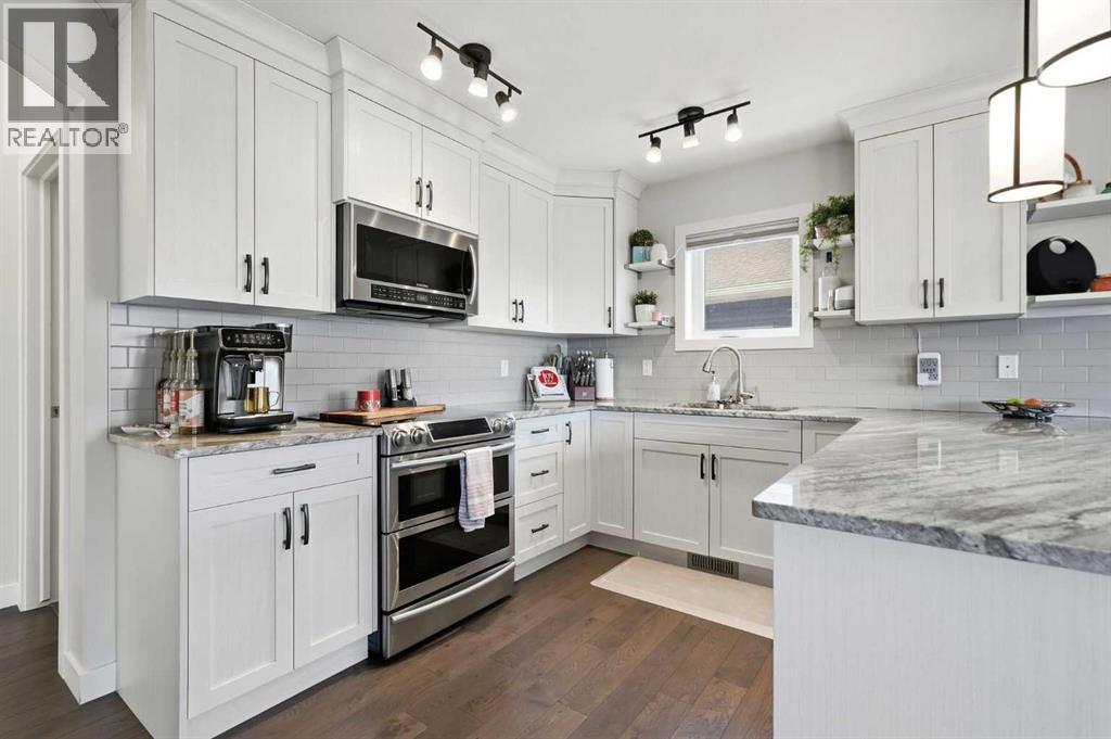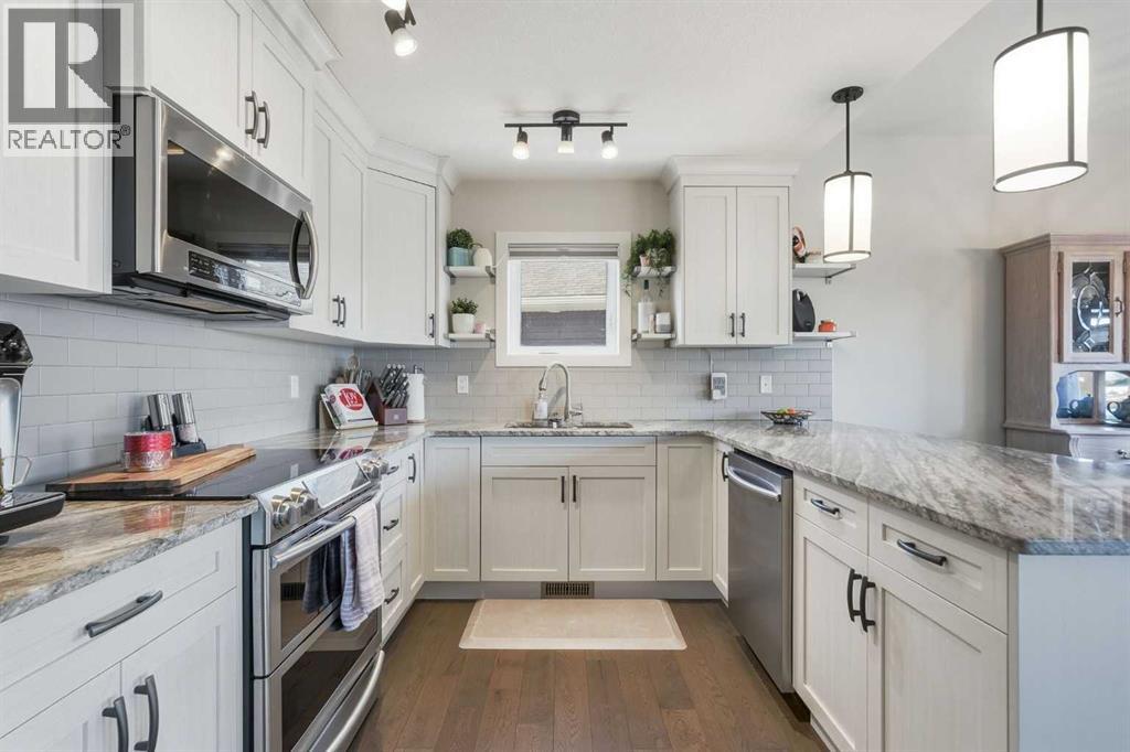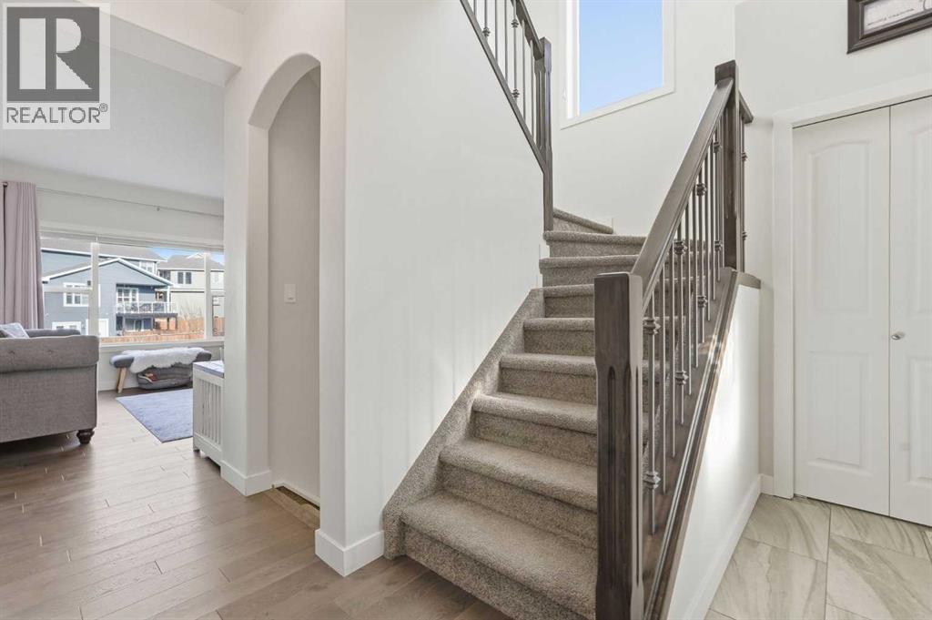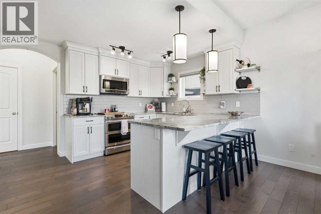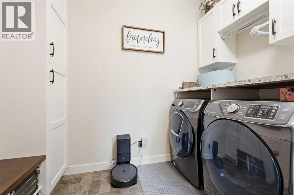 Offered by original owners, this meticulously maintained 2 storey home with over 2,470 sq ft of thoughtfully designed total living space on a pie-shaped lot with excellent curb appeal, a welcoming front seating area and a spacious front yard is a must see!Inside, the bright and modern layout features neutral colours, 9-foot ceilings throughout and granite countertops on all levels. With 4 bedrooms and 3.5 bathrooms, this home is ideal for families or those who love to entertain. The main level is filled with natural light from large windows and showcases engineered hardwood flooring, a welcoming front entry, and a convenient powder room. A custom-upgraded main-floor laundry room adds everyday convenience and functionality. Custom blinds, including blackout blinds upstairs and in the basement, central air conditioning, a security system, and smart lock technology provide comfort and peace of mind.Upstairs, the primary suite is a true retreat featuring vaulted ceilings, a walk-in closet, and a 3-piece ensuite with a full-sized shower. Large windows overlook the tranquil water and pathway, filling the space with natural light. The main upper bathroom also features vaulted ceilings and excellent lighting.The fully finished basement offers 9-foot ceilings, a spacious entertainment area, a wet bar with refrigerator, a large bedroom ideal for guests or family, a modern 3-piece bathroom, and generous storage.The extended-length, heated double garage is fully finished with built-in storage and heated by natural gas. The extra-wide front parking pad accommodates three or more vehicles with potential RV parking, with additional street parking—perfect for visitors. Step outside, the fully fenced backyard, with gates on each side and out to the path, offers views of the pond and overlooks a scenic pathway running alongside a creek/canal. The expansive back deck, large enough to accommodate a sectional and firepit, featuring sol ar lighting and a natural gas hook-up is an ideal space for entertaining or simply enjoying the beauty of the outdoors. Steps lead down to an enclosed under-deck area, providing additional storage without compromising the scenic views. Low-maintenance fruit trees, perennial gardens and raised garden boxes add charm. The lush and well maintained yard also includes a recirculating water system for summer lawn care, significantly reducing water costs. The pathway connects seamlessly to the community’s trail and nearby nature reserve, enhancing both lifestyle and walkability. This family-oriented subdivision is known for its strong sense of connection, where neighbours work together to create a welcoming, inclusive environment for all ages—including a community-built park created through local fundraising efforts. This is a rare opportunity to own a move-in-ready home with premium upgrades, scenic surroundings, and exceptional outdoor living in a truly connected community. (id:63190)