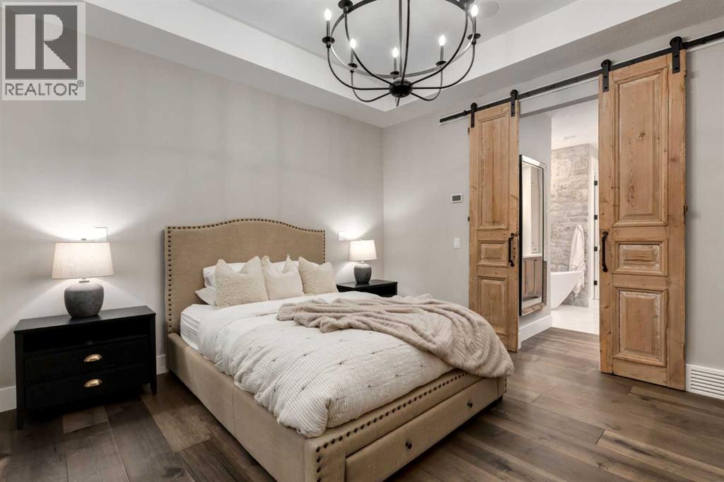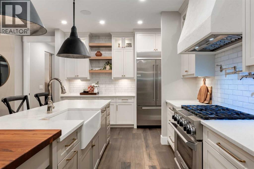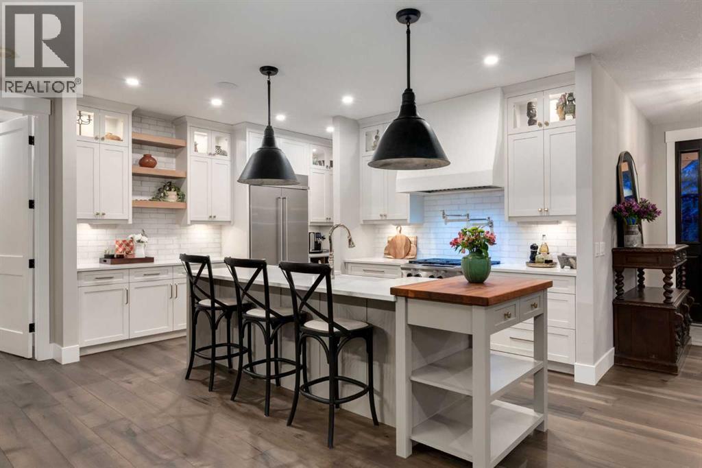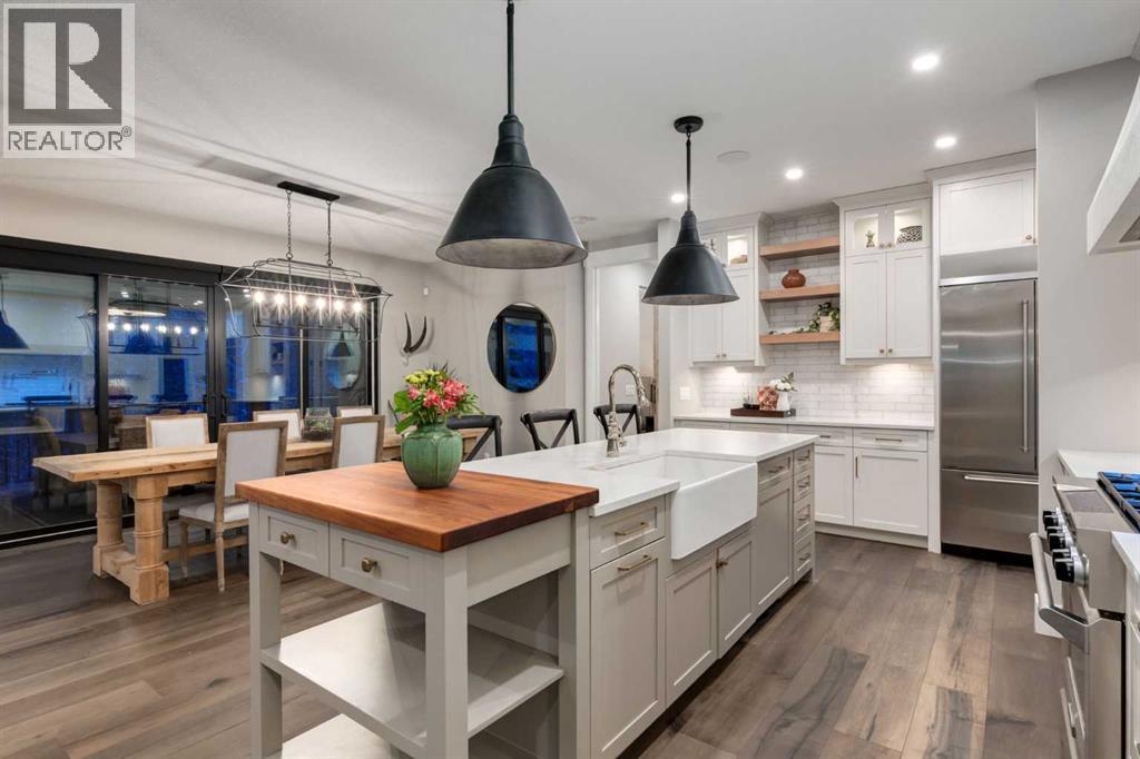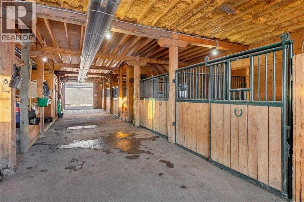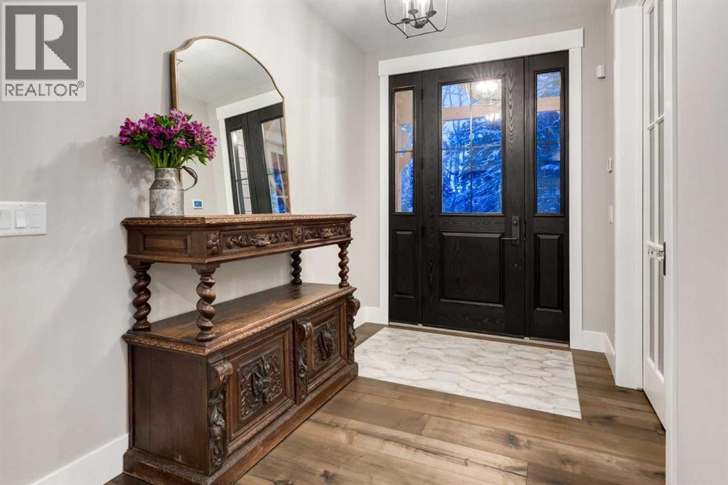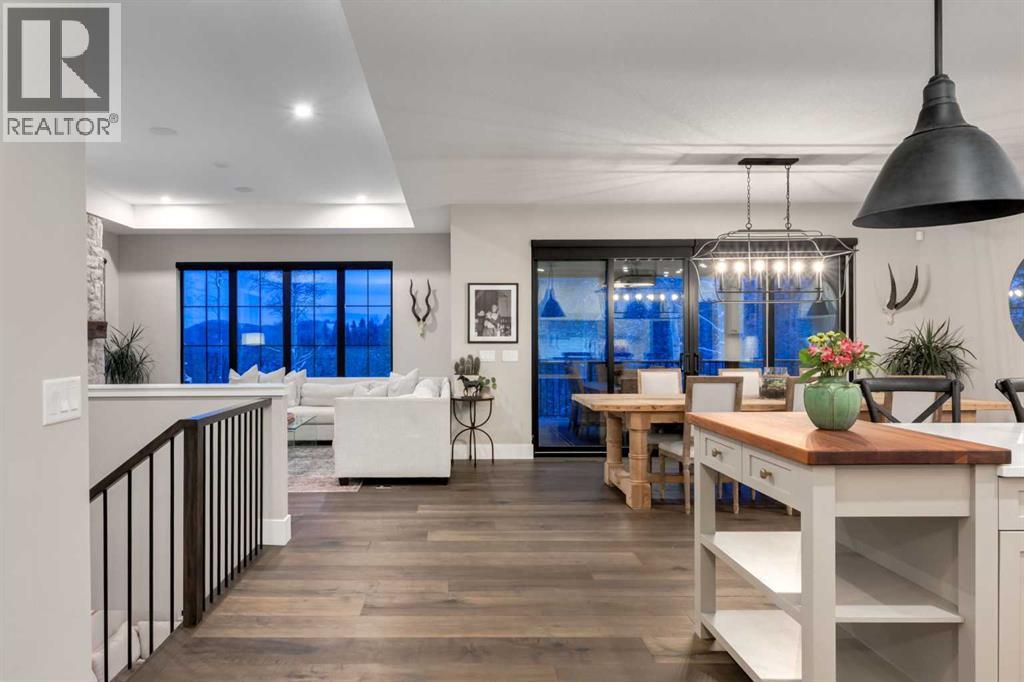 This SPECTACULAR LIFESTYLE Property is the PERFECT ESTATE for the AVID OUTDOORSMAN located in the gated community of Square Butte Ranches on 1.98 ACRES w/BREATHTAKING — UNINTERRUPTED — MOUNTAIN VIEWS + a LUSH, TREED YARD!! This AWARD-WINNING 1.5 Story home blends MODERN FARMHOUSE + OLD-WORLD CHARM, offering 3,318 Sq. Ft. of DEVELOPED LIVING SPACE, 4 Bedrooms, 3.5 Bathrooms, WALK-OUT Basement, Home Gym, Guest Quarters + ATTACHED TRIPLE GARAGE + 8’ doors (TRUCK + BOAT). It's STUNNING CURB APPEAL has Hardie Board siding, Stone accents + NATURAL WOOD pillars. An incredible backyard feat. a WRAP-AROUND Deck w/MOUNTAIN VIEWS, STONE-CLAD WOOD-BURNING Fireplace, OUTDOOR DINING, DUAL GAS BBQ LINE + a HOT TUB!! Inside this “IMMACULATE” home, you’re welcomed by 9’ knockdown ceilings, rich wide-plank hardwood flooring + a neutral colour palette throughout, thoughtfully incorporating both NEW + VINTAGE elements. Off the foyer is a private office feat. CUSTOM BUILT-INS, along + a 2 PC bath for guests. The striking BLACK-FRAMED Windows in living room capture the MOUNTAIN VIEWS, as well as a STUNNING STONE-CLAD gas fireplace w/a wood mantle is a focal point + elevated TRAY CEILING for added depth + architectural interest. The SPACIOUS dining area flows seamlessly into the INCREDIBLE CHEF’S KITCHEN featuring a complete two-tone custom floor-to-ceiling cabinetry, under-cabinet lighting, a LARGE island finished in QUARTZ + a BUTCHER block extension + a farmhouse sink. Premium SS APPLIANCES include a 36” GAS RANGE w/a POT FILLER, a Venetian plaster range hood + a DOUBLE fridge. Large sliding doors off the dining area create a seamless INDOOR-OUTDOOR LIVING experience. Archway leads to the mudroom + a built-in microwave in the BUTLER'S PANTRY, while the Laundry Room connects to the garage. The PRIMARY BEDROOM is a SERENE RETREAT has a tray ceiling + large windows that fill the space w/natural light. The SPA-INSPIRED ENSUITE showcases stone work, a freestanding tub, glass shower + dual vanity + a CUSTOM WALK-IN CLOSET w/built-in shelving + thoughtfully designed storage. A LOFT BEDROOM above the garage is ideal for GUEST QUARTERS w/a private exterior entrance + access through the garage. A partial kitchen has a farmhouse sink, microwave + mini fridge, built-in bench seating, a 3 PC bath + wardrobes. The WALK-OUT basement has a WINE ROOM w/stone wall, a SPACIOUS family room has MOUNTAIN VIEWS. A WET BAR in the flex room has cabinetry, a wine fridge + sink. A HOME GYM w/10MM glass doors, rubber flooring + mirrored wall. The 2nd + 3rd bedrooms are a GOOD SIZE, a 4 PC bath + utility/storage room. Square Butte Ranch: 480 ACRES w/Ponds + Pastures + PRIVATE Riding Trail + AMENITIES incl EQUESTRIAN FACILITY (heated barn, tack room, trailer storage, riding arena, round pen, paddocks), SALOON, gym, stocked pond, trout stream + community garden— ideal for FULL-TIME LIVING or FLEXIBLE, COME-AND-GO LIFESTYLE + direct access to Kananaskis Country: hiking, biking, trail riding + MORE!! (id:63190)