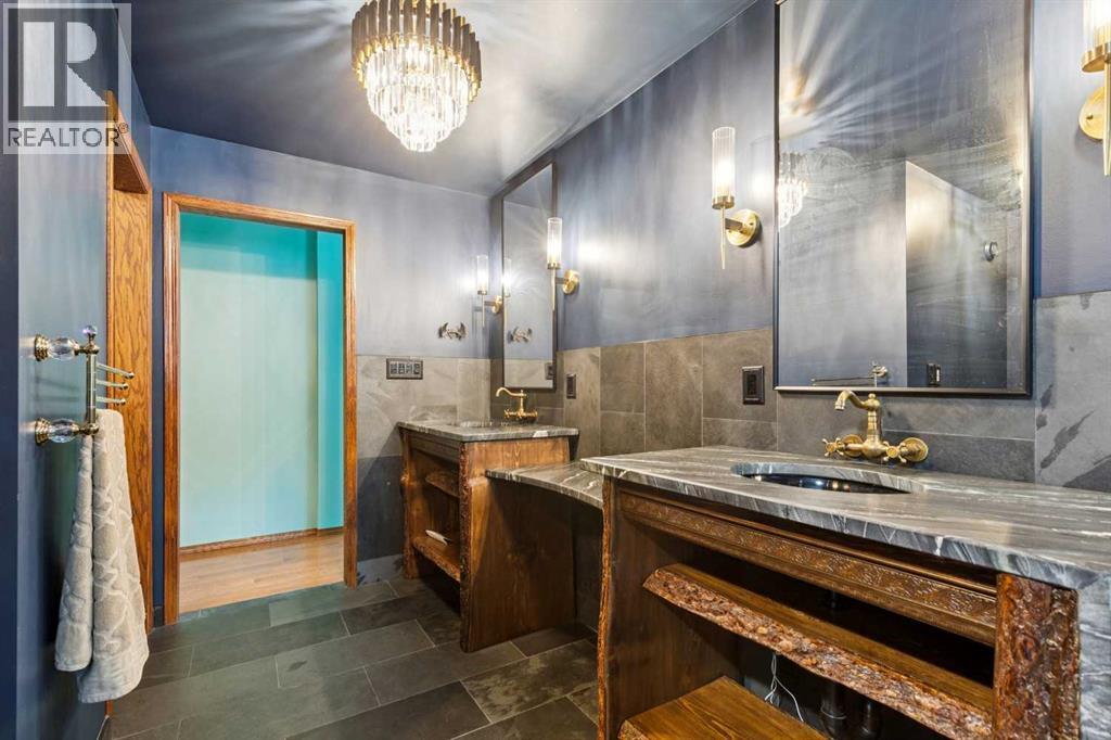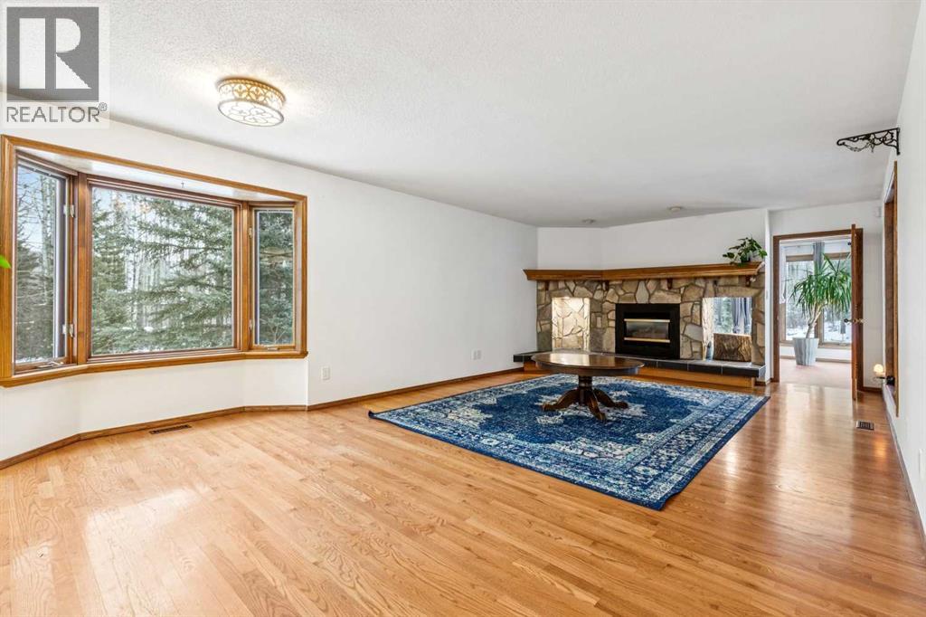 OPEN HOUSE SAT APRIL 4 2-4PM | Set on two fully treed private acres backing directly onto trail systems leading into Kananaskis. Enjoy a stroll with natural rivers, streams, and quiet forests. This extraordinary bungalow offers over 6000 square feet of solid, enduring construction allowing you the opportunity to own ample space and quality that cannot be recreated at this price point. Your gigantic main living area draws the eye upward with high vaulted ceilings. Natural oak floors throughout can be reimagined in any stain, and the entertainment area has been designed with a sunken floor to add dimension while you are warmed by the Napoleon wood burning fireplace - one of three fireplaces (2 gas) in the home. The large wood clad windows and sliding doors draw the beauty of the serene landscape in with a color palette that blends with the natural beauty surrounding the property. This solid home has been thoughtfully designed and built with extended cottage overhangs and stone exterior to keep the elements out and your warmth inside in winter, paired with beautiful bay windows to draw in natural air cooling during summer months. All oversized, recently upgraded appliances are ready for your family including chef grade dual-wall oven, fridge, dishwasher and ample laundry walk-in ready to keep the family fun tidy with ease. The home has been upgraded with 3 new, zoned, gas-fired furnaces ensuring individual comfort in the dining, family and sleeping areas. With the home's natural flow, enjoy entertaining in the many living areas combined with a brand new tucked away wooded hot spring inspired master suite with spa that could easily be doubled in size with the adjacent bedroom/den. Walk out into nature from both the east and west wings of the home from one of 3 glass patio doors giving access to the enormous 700 sq/ft deck, complete with covered gazebo and pergola. 2 oversized double garages combined for a massive ~1200 sq/ft of storage and shop space. Be a part of K-c ountry living and check out Elbow Falls or the world class hiking, biking and skiing trails of West Bragg Creek. Your reimagined country estate awaits! Make sure to ask your Realtor to forward the floor plan, full list of FEATURES and IMPROVEMENTS, RPR and all supplemental information that can be found in supplement documents. (id:63190)