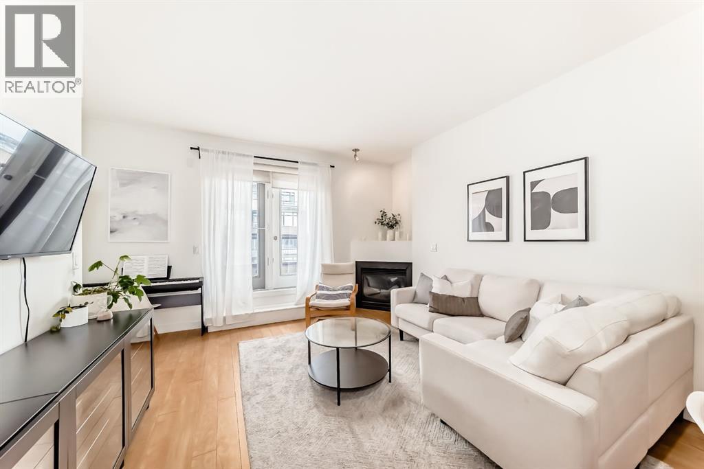 "" OPEN HOUSE: SUNDAY, APRIL 26, 3:00 - 4:30 PM "" Excellent move in ready top floor, West facing, one bedroom plus spacious den (room for a guest bed), open floor plan with kitchen, granite countertop, pantry, updated cabinetry, stainless steel appliances, spacious primary bedroom (double closet with custom cabinetry, blackout blind), full bath soaker tub with cheater door access, spacious living room with gas fireplace. Extra length west facing deck (gas line for bbq). Recently painted. Extras include: ceiling fan, vented hood fan, infloor heating, Hunter Douglas Blinds, insuite laundry One underground parking stall and extra storage locker in the parkade area. Excellent amenities location: near Bridgeland restaurants, coffee shop, parks, Bow River pathway system, Bridgeland C-Train station (id:63190)