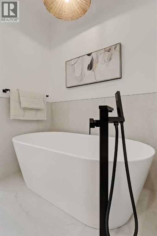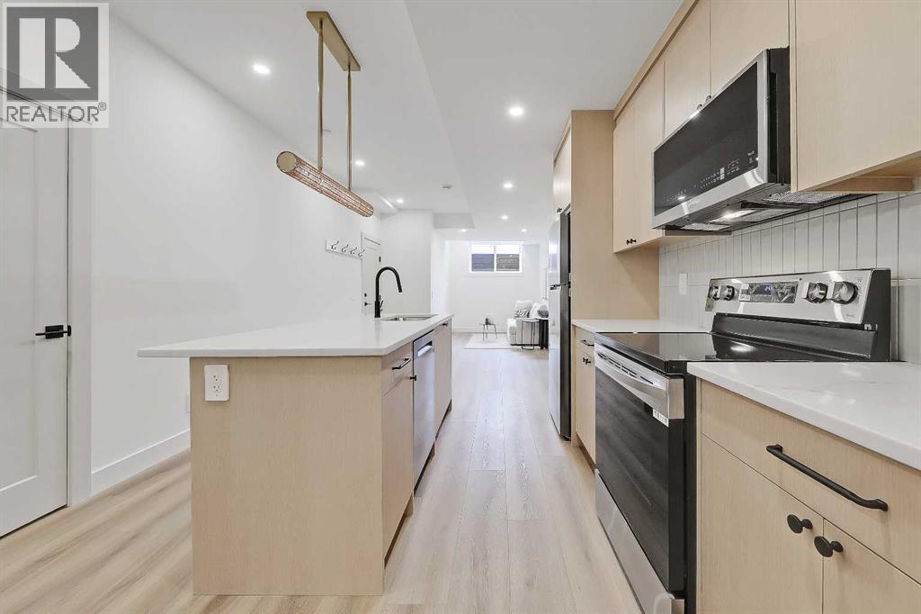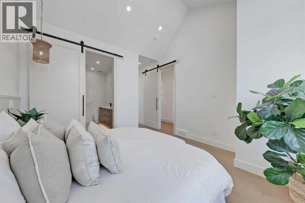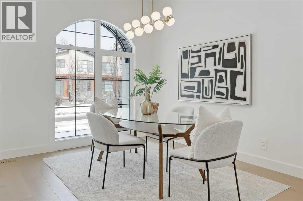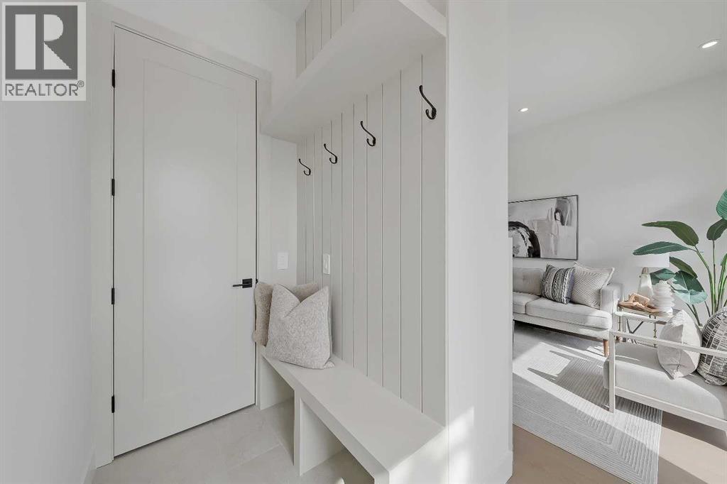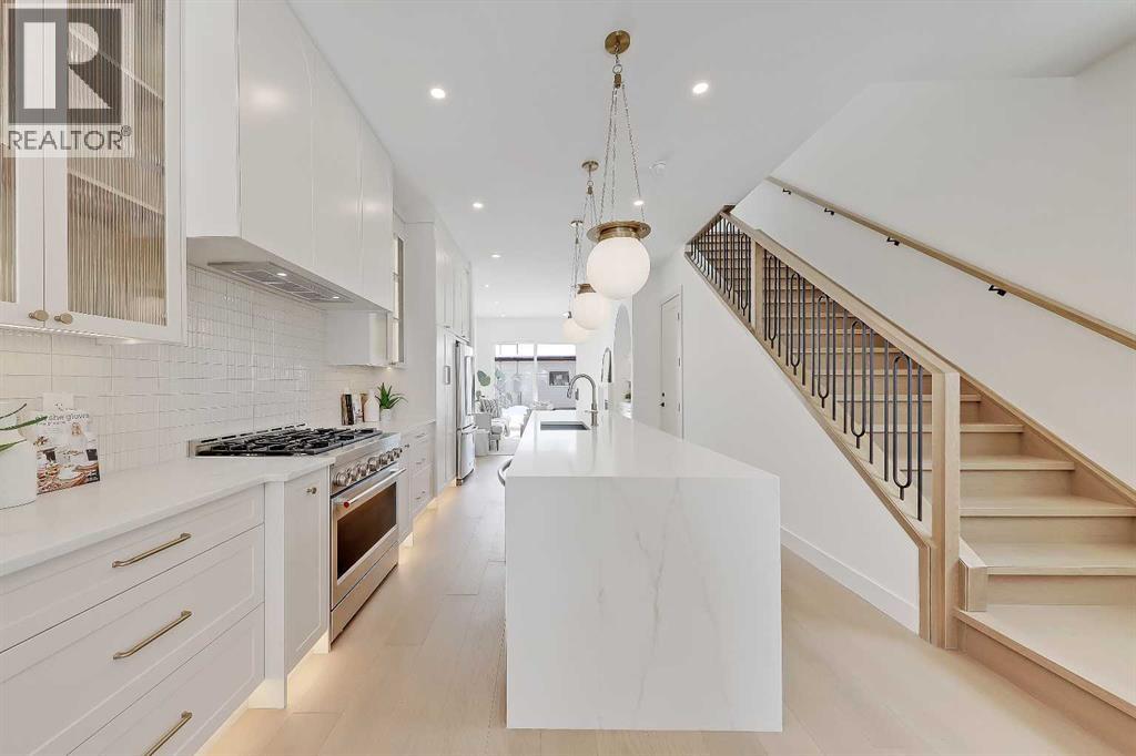 Warm, refined, and effortlessly livable, this brand-new luxury infill in Mount Pleasant, Calgary blends clean-lined contemporary design with thoughtful everyday function. Designed for modern family living, this two-storey home with a legal basement suite offers bright, open-concept living in one of Calgary’s most desirable inner-city communities.Step inside from the covered front entry to a welcoming FOYER with clean sightlines into the main living space. The sun-filled DINING AREA overlooks the front streetscape through oversized windows, creating a bright setting for everyday meals and hosting. This space flows seamlessly into a stunning open-concept CHEF’S KITCHEN, anchored by an oversized island with seating, quartz countertops, abundant lower drawers, and full-height cabinetry for a clean, modern look. The upgraded stainless steel appliance package includes a gas range, French door refrigerator, built-in microwave, and dishwasher.At the rear, the LIVING ROOM centres around a sleek gas fireplace with a designer tile surround. A custom built-in with a soft arched detail adds architectural character, complemented by integrated shelving and subtle lighting.Large rear windows bring in afternoon sun and open onto the SOUTH-facing backyard and patio, creating a natural extension of the living space, ideal for summer evenings and outdoor dining. A functional rear MUDROOM with bench and walk-in closet keeps daily routines organized, while the main-floor POWDER ROOM continues the elevated finish palette with quartz counters and designer lighting.Upstairs, the PRIMARY SUITE is a true retreat with a vaulted ceiling and a generous walk-in closet with built-in organization. The spa-inspired ENSUITE features a double vanity, freestanding tub, and glass-enclosed shower with bench and dual shower heads. Designer tile and light-toned quartz create a calm, timeless feel.Two additional BEDROOMS offer flexibility for family, guests, or a home office. They share a full bat hroom finished with modern tile and large-format flooring. The upper-level LAUNDRY ROOM includes added cabinetry for convenience.The fully developed lower level features a LEGAL BASEMENT SUITE complete with a full kitchen, living area, separate laundry, and full bathroom. Ideal for rental income or multigenerational living, it maintains the same high-end finishes found throughout.Located in Mount Pleasant NW Calgary, just blocks from Confederation Park, enjoy access to walking and biking paths, playgrounds, green space, and golf. Nearby 4th Street NW and Centre Street offer local cafés, restaurants, and daily amenities, while quick access to 16th Ave and Deerfoot Trail simplifies commuting. Close to King George School, Saint Joseph, École de la Rose Sauvage, Crescent Heights High School, SAIT, and the University of Calgary, this is a well-connected, established inner-city community. (id:63190)