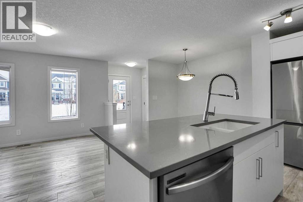 NO CONDO FEES – Discover exceptional value and stylish living at 216 Windbury Lane SW, a beautifully upgraded 3-bedroom, 2.5-bath townhome nestled in the heart of South Windsong, Airdrie. Perfectly positioned directly across from a park and scenic walking paths, this home offers the ideal blend of comfort, location, and modern design—with zero condo fees. Step into a bright and inviting open-concept main floor featuring luxury vinyl plank flooring, knock-down ceilings, and an abundance of natural light. The designer kitchen is the true showpiece, showcasing sleek quartz countertops, stainless steel appliances, upgraded cabinetry, and a large central island with bar seating, making it perfect for hosting or enjoying casual family meals. Upstairs, the spacious primary suite offers a tranquil retreat with a luxurious tiled ensuite shower, while two additional bedrooms provide ample space for kids, guests, or a home office. Both bathrooms are finished with high-end tilework and modern fixtures for a spa-like feel. Enjoy the convenience of an attached garage, a private driveway, and a fully landscaped exterior—all just minutes from top-rated schools, shopping, and quick access to Deerfoot Trail, CrossIron Mills, and North Calgary. Whether you're a first-time buyer, a growing family, or looking to downsize without sacrificing style, this move-in-ready gem delivers the perfect balance of function and flair—all with no condo fees. Don't miss this rare opportunity! (id:63190)