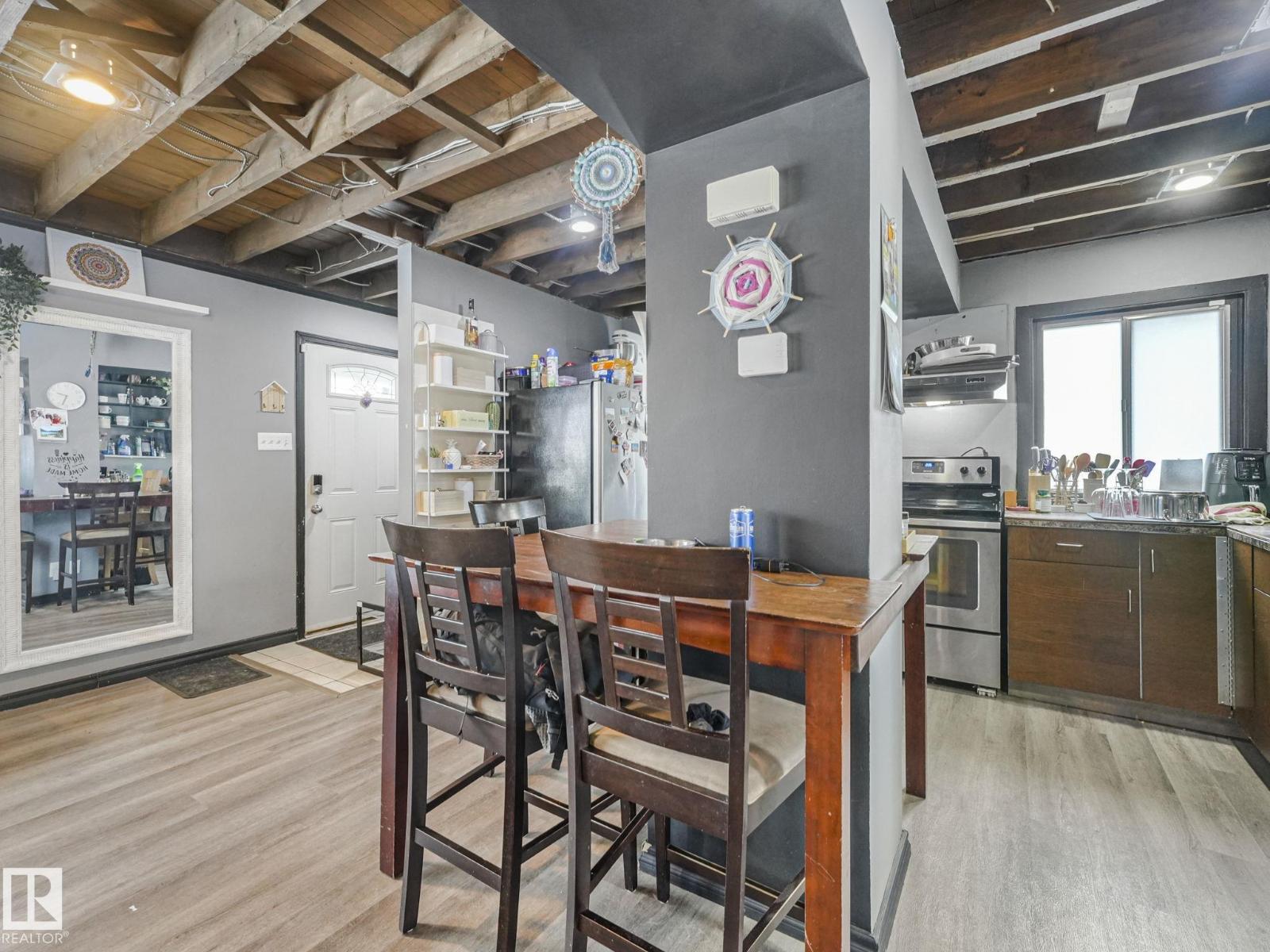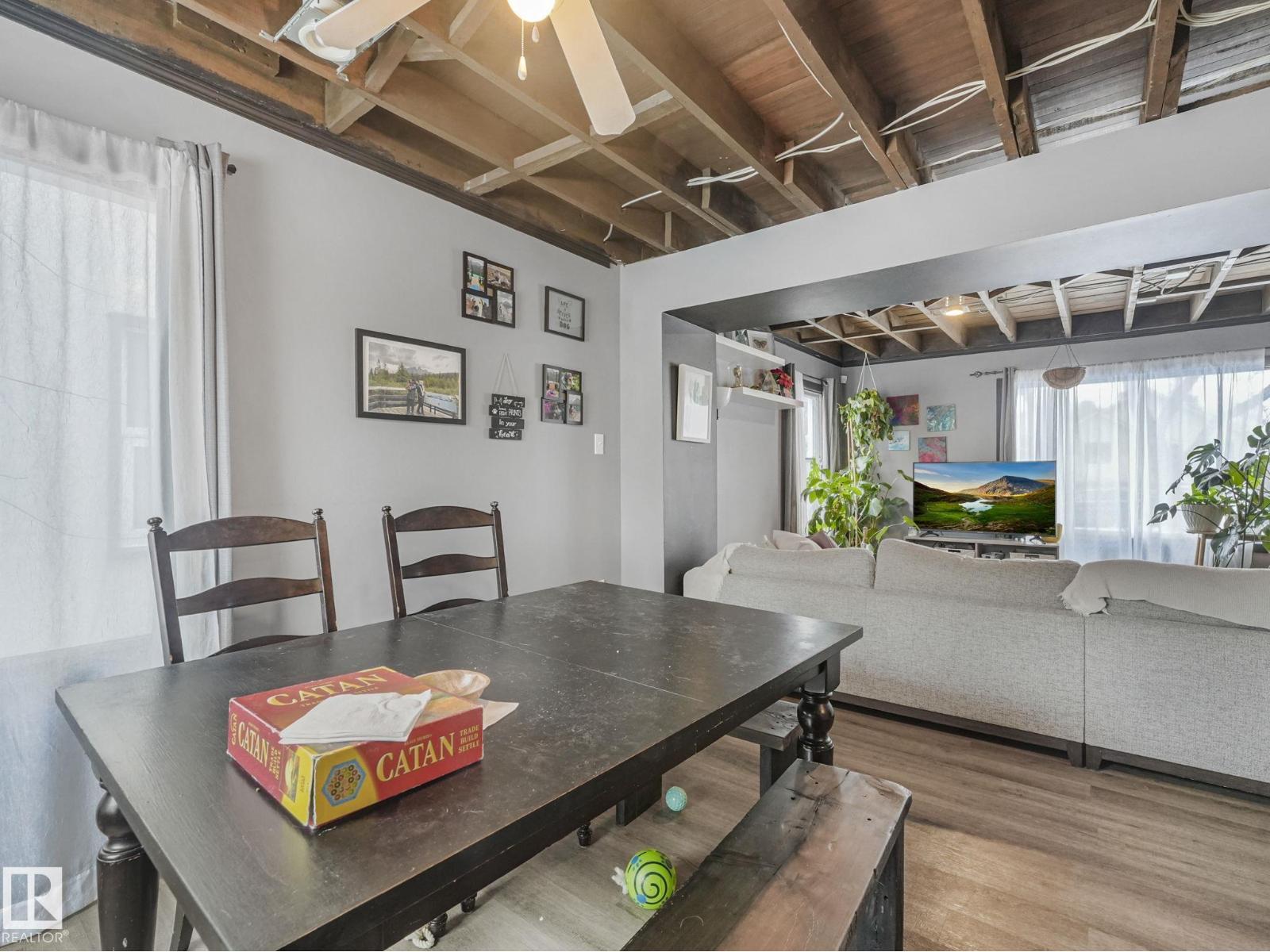 This solid 1.5 storey home is quaint, cute, fully functional and affordable! The main floor has a great open concept floor plan. Comfortable kitchen with built in eating bar/table, spacious living and dining rooms plus a full bath. Up stairs you have 2 spacious bedrooms and the attic storage synonymous with this era of homes. The main floor has an open ceiling that has been stained, new vinyl plank flooring, many upgraded windows plus a Bath Fitter bathroom renovation. The upper level is neat and in great condition. The full basement has a room that was used as a bedroom in the past, otherwise is all open. The newer electrical, furnace and HWT plus laundry should give you a maintenance free home for years to come. A spacious back yard with 2 designated paring spaces. (id:63190)