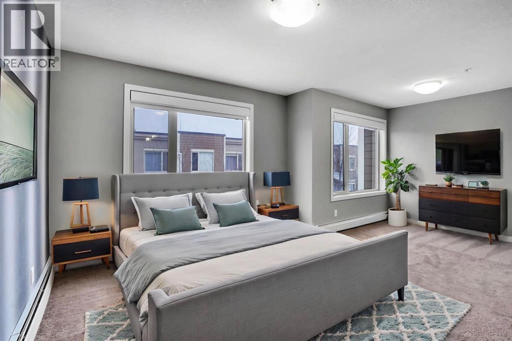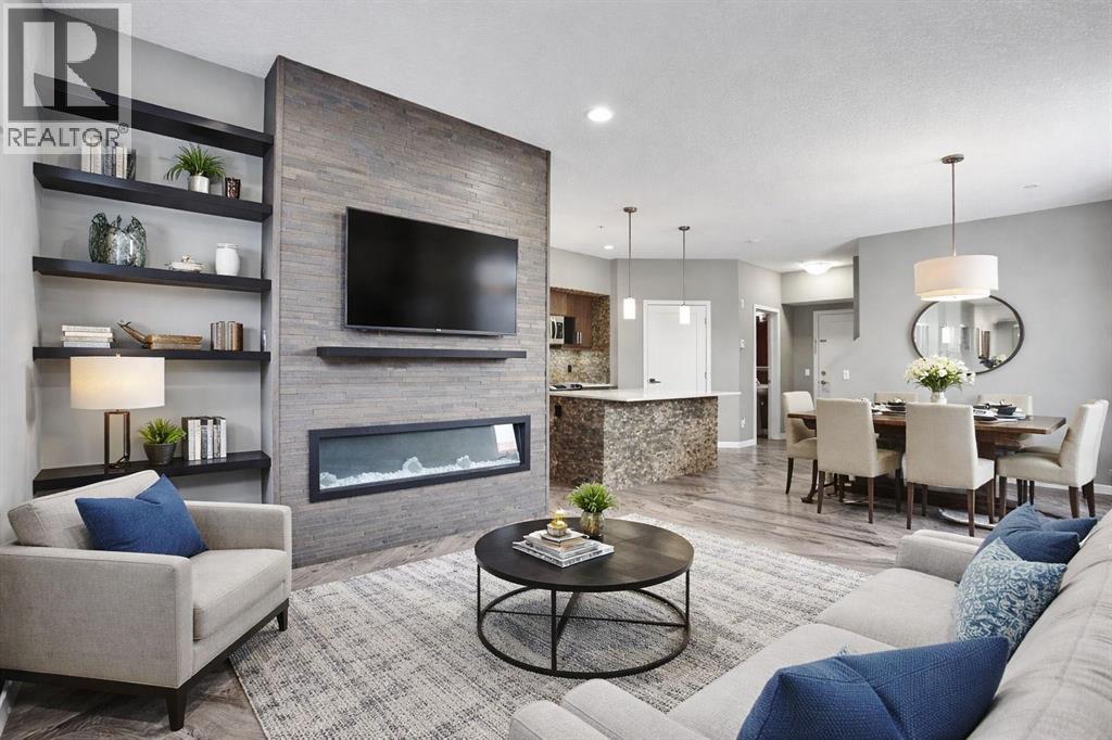 Welcome to this rare and beautifully appointed end-unit townhome in the heart of the highly desirable West Springs community—an ideal blend of comfort, functionality, and long-term value for families and savvy buyers alike.Offering 1,113 sq ft of thoughtfully designed living space, this 2-storey home features a bright and open-concept main floor enhanced by extra windows exclusive to corner units, filling the home with natural light throughout the day. The stylish kitchen is both functional and inviting, complete with quartz countertops, stainless steel appliances, a stone mosaic backsplash, and an oversized island—perfect for family meals, entertaining, or everyday living. Added cabinetry, extended counter space, and under-cabinet LED lighting provide exceptional storage and usability.The welcoming living area showcases custom built-in shelving, a modern electric fireplace, and a sleek wood slat feature wall with pre-installed TV mount, creating a cozy yet contemporary space for relaxing with family. A private entrance leading to a quiet courtyard, along with direct access to the street and underground parkade, adds both convenience and a sense of privacy.Upstairs, you’ll find a spacious primary retreat complete with a fully upgraded ensuite featuring dual sinks, heated floors, a glass shower, and a walk-in closet. Two additional versatile dens provide excellent flexibility—ideal for a home office, nursery, or easily convertible into an additional bedroom to suit growing families. A full guest bathroom and a dedicated workspace just outside the bedrooms make this layout especially appealing for today’s work-from-home lifestyle.Additional highlights include:•Hunter Douglas dual motorized blinds (blackout & sheer) throughout•Countdown timer ventilation systems in all bathrooms•In-suite laundry with smart lighting features•Two titled underground heated parking stalls (side-by-side)•Separate bike storage & ample visitor parkingSituated in a fam ily-friendly, walkable neighborhood, you’re just steps from everyday essentials including grocery stores, cafes, restaurants, and services—making daily life effortless and enjoyable.With its unique layout, premium upgrades, and unbeatable location, this home offers strong long-term value and excellent livability—a perfect opportunity for families looking to settle into one of Calgary’s most sought-after communities. (id:63190)