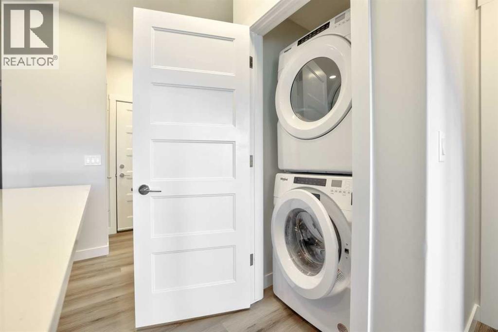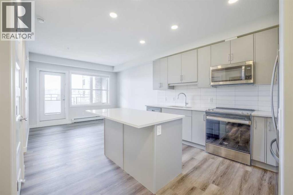 Price reduced Welcome to Bow 360, a boutique condominium community by Cove properties, one of Calgary's most trusted multi-family builders. Perfectly situated in the heart of Wolf Willow, this stunning 2 bedroom , with 4 Piece bathroom .Home pairs thoughtful design with a prime location just steps from the Bow River, scenic trails, and Blue Devil golf course. Main floor inside discover upgrades, elevating this home with high end finishes and stylish details. The kitchen impresses with full height cabinetry, sleek quartz countertops, a large island, and premium stainless-steel appliances ( whirlpool upgraded appliances) and vinyl plank flooring. Unwind on your private deck with peaceful views, or retreat to the open concept living space that blend functionality with modern elegance. A re-enforced concrete foundation ensures exceptional sound proofing and long-lasting quality, while included conveniences such as underground titled parking stall and a private storage locker makes everyday effortless. Just outside your door , nature, and community come together. Explore 80 km of trails and bike paths, let your pup play at the 9-acre off-leash dog park, or spend the day at near by Fish Creek Park. Shopping , restaurants, golf courses, and South Health Campus Hospital are all within minutes, ensuring both convenience and lifestyle at your door step. This is your opportunity to own a stylish condo in one of Calgary's most desirable new communities, where modern comfort meets riverside living. Vacant with quick possession. (id:63190)