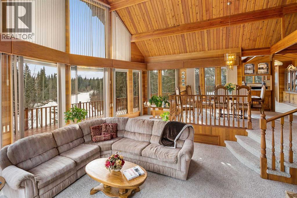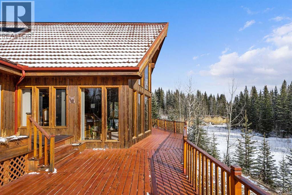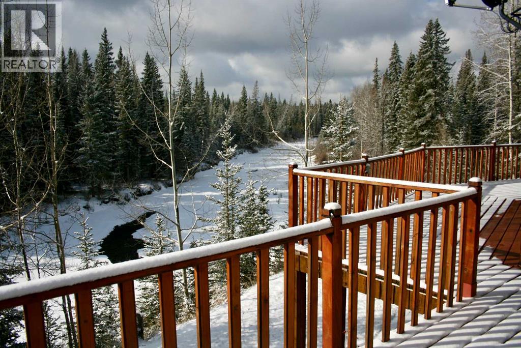 A rare opportunity to own 80 extraordinary acres with direct river access (Fallen Timber Creek) and breathtaking valley views northwest of Calgary. Set in an unforgettable natural setting, this remarkable property offers over 4,000 sq. ft. of developed living space across three levels, Including a spacious walkout family room. A large balcony overlooking the river and a seamless connection to the landscape from every angle.Designed for both comfort and function, the property includes a double detached garage, an additional single garage, and an impressive 48' x 32' workshop, with a yard space that allows ample room to pull in a trailer and turn around with ease. Private hiking and quad trails weave through the land, while Crown land only a few quarters to the west adds even more freedom and recreational access. Scenic, private, and exceptionally well equipped, this is a river property of rare quality and lasting appeal. (id:63190)