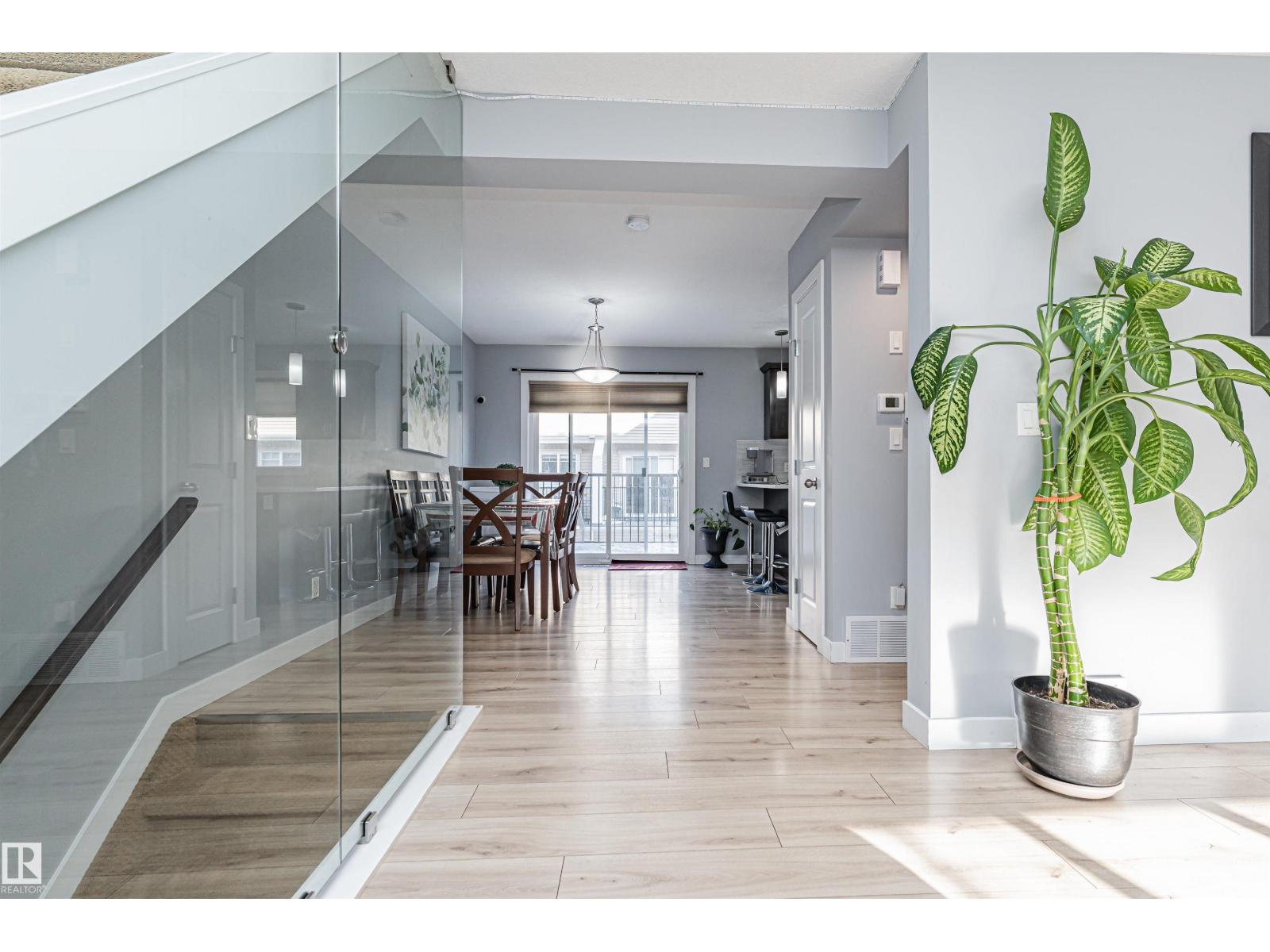 Welcome to this quiet 3 bedroom Townhome in the sought after area of Albany. The main floor is bright and spacious which features a 2 pc powder room, good size kitchen separated from a large dining area with access to the balcony, great for summer entertainment. The glass walled stair case enhances the bright open feel of the living room. Upper level primary bedroom has an 3 pc ensuite and walk in closet. There are 2 other good size bedrooms which share a 4 pc main bath in the hallway. The Lower level has a washer, dryer and access to the oversized attached double garage which features a new garage door opener and 2 controls. This home is located minutes away to all amenities and access to Anthony Henday. This one will not last long! (id:63190)