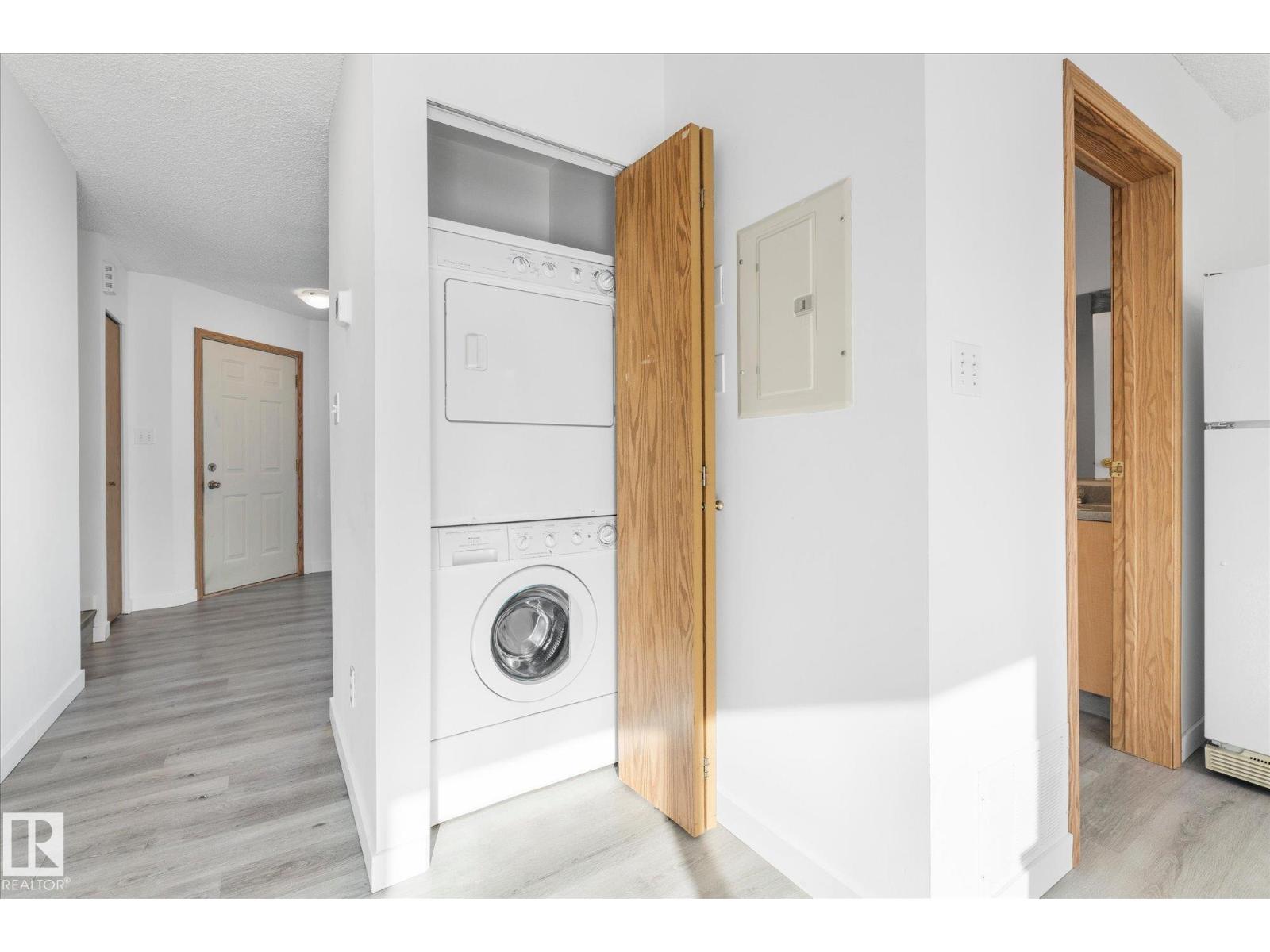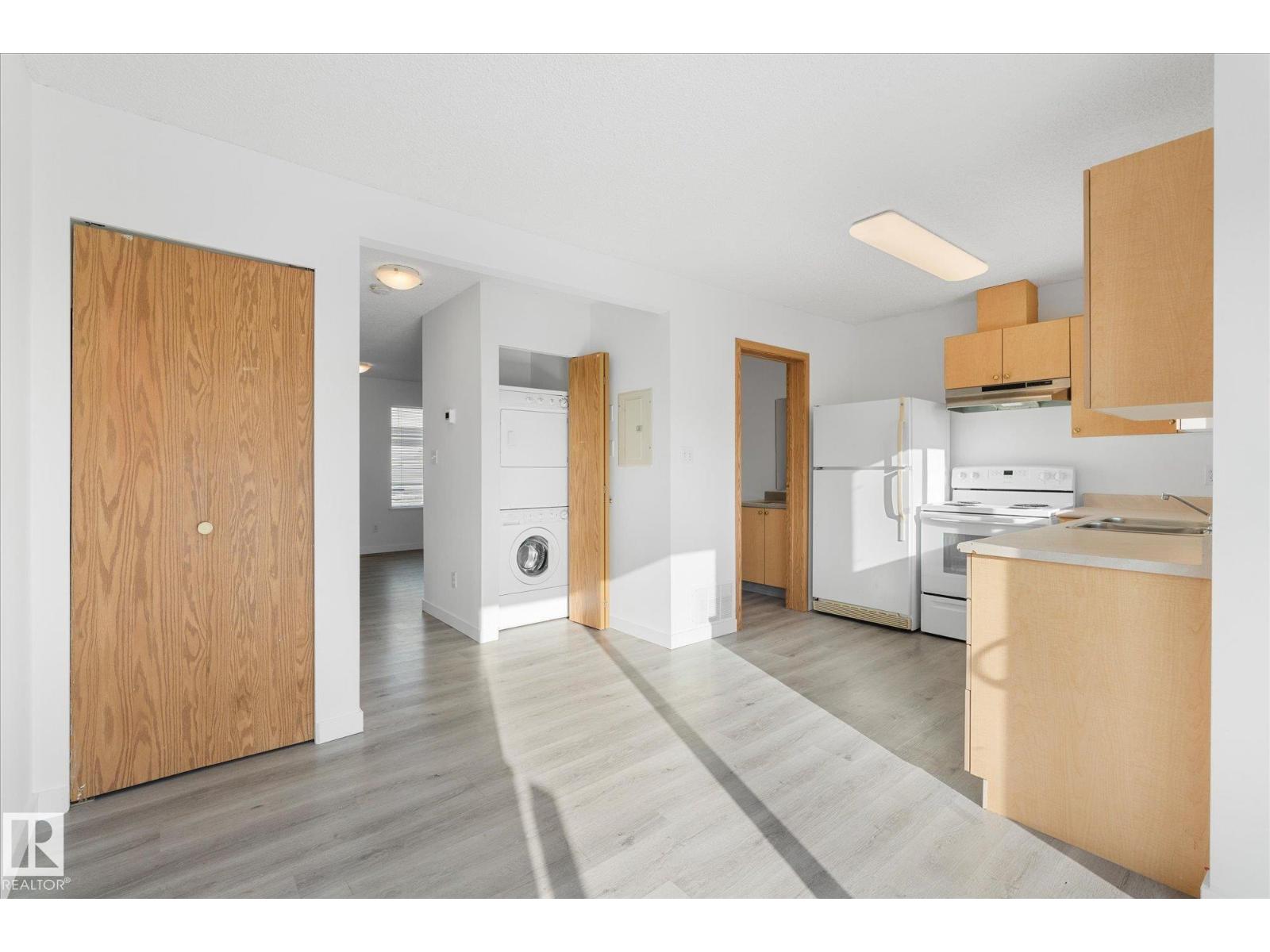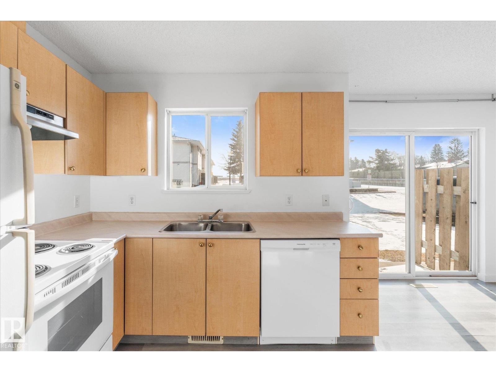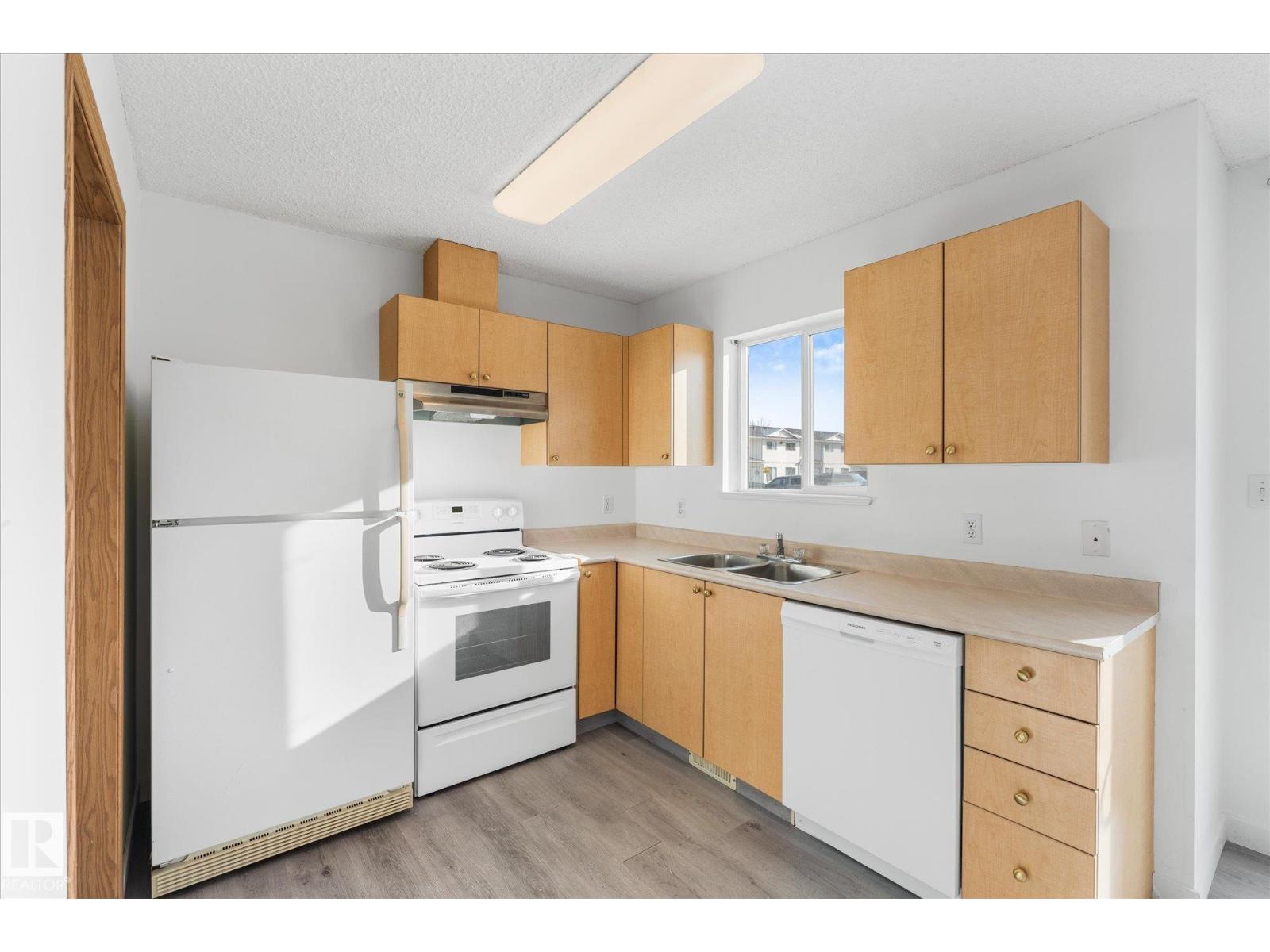 Welcome to this well-maintained 2 bedroom, 1.5 bath townhouse in Grove Estates — an excellent opportunity for first-time buyers or investors looking for affordable living in Spruce Grove. The bright and functional main floor features a spacious living room, generous dining area, and L-shaped kitchen with plenty of cupboard and counter space. Also on the main floor you have 2 pc powder room & in-suite laundry along with furnace & hot water tank for added practicality and control over utilities. Upstairs you’ll find two large bedrooms and a full 4-piece bathroom, offering comfortable space for family or guests. Large windows fill the home with natural light and vinyl plank flooring provides a modern, low-maintenance finish. This unit is located in a well-managed complex with low condo fees that include water, recently redone roof shingles, and a parking stall close to the front door. Centrally located near schools, parks, trails, shopping, transit, and quick access to Highway 16. (id:63190)