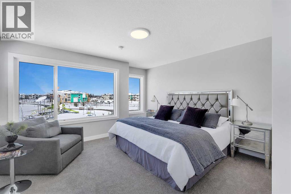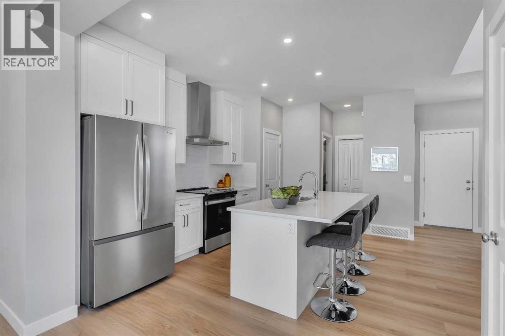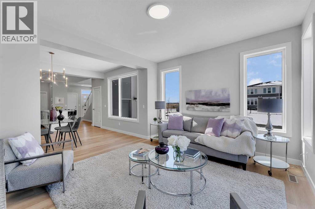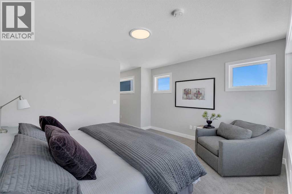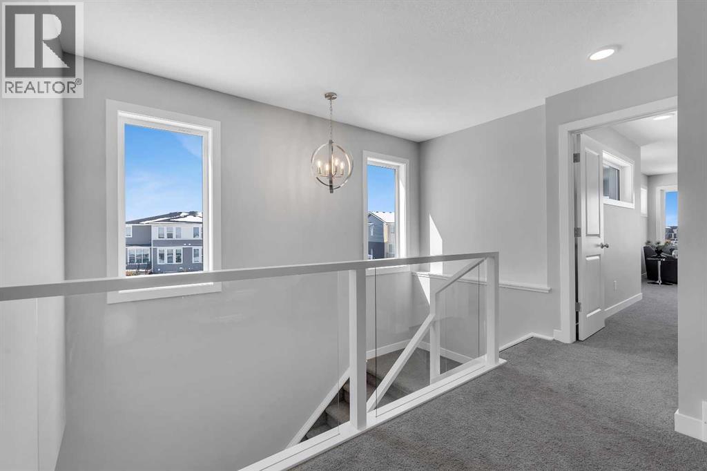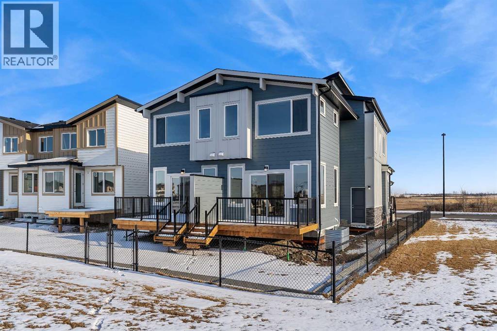 Set on a desirable lot backing onto a walking path and playpark, this award-winning Alliston Homes new build offers mountain views, southwest exposure, and over 1,700 sq ft of beautifully designed space. Large windows (triple pane) throughout the main floor let sunlight pour in all day, creating a bright, inviting space that truly sets this home apart.Step inside to an open-concept main floor highlighted by modern finishes and sleek glass railings. The kitchen is both functional and stylish, featuring stainless steel appliances, ample cabinetry, and a spacious island perfect for entertaining. The layout flows seamlessly into the dining and living areas, where views of the greenspace can be enjoyed from every angle. Step outside to your sunny backyard and enjoy direct sightlines to the playpark, ideal for keeping an eye on the kids. Upstairs, a central loft provides flexible space for a home office or reading nook. The primary suite is expansive, complete with a walk-in closet and a spa-inspired ensuite featuring dual sinks and an oversized shower. Two additional bedrooms, a full bathroom, and convenient upper-level laundry complete the upper floor. The basement offers a separate entry and is ready for future development to suit your needs. Located in South Shore, surrounded by estate homes, walking paths, and playgrounds, and just steps from Chestermere Lake, this community is designed for those who value both lifestyle and location. (id:63190)