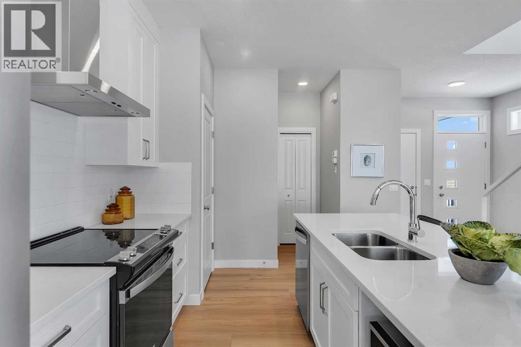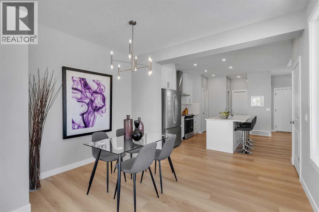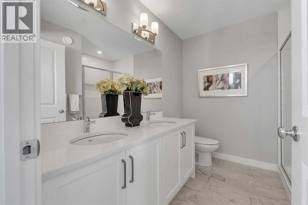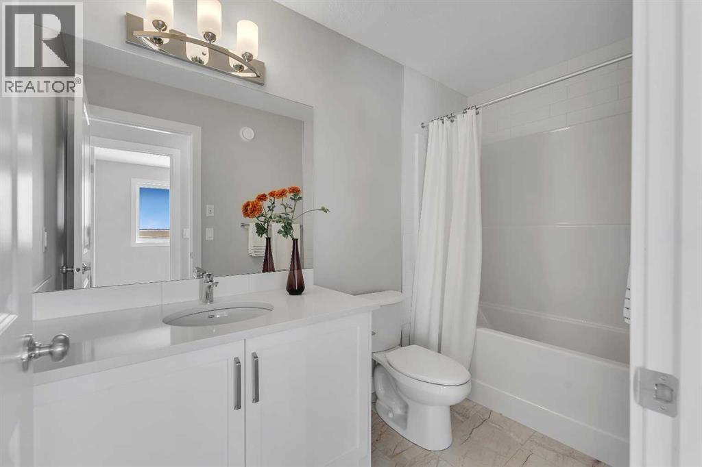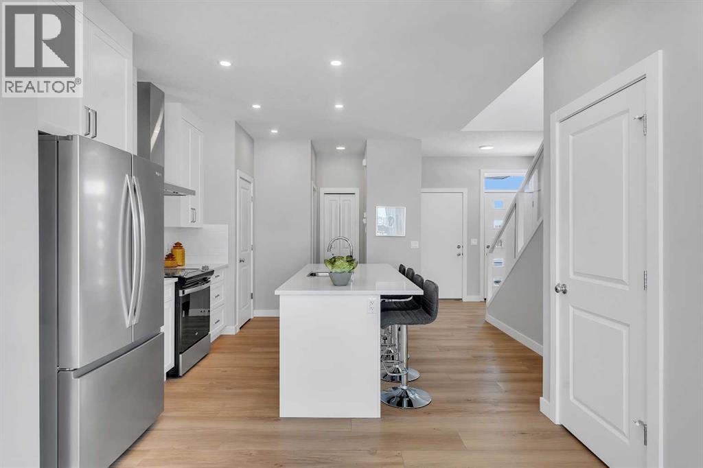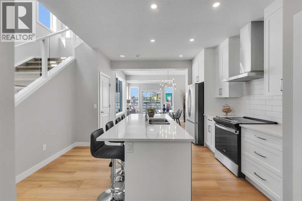 Set on a desirable lot backing onto a walking path and playpark, this award-winning Alliston Homes new build offers mountain views, southwest exposure, and over 1,700 sq ft of beautifully designed space. Large windows (triple pane) throughout the main floor let sunlight pour in all day, creating a bright, inviting space that truly sets this home apart.Step inside to an open-concept main floor highlighted by modern finishes and sleek glass railings. The kitchen is both functional and stylish, featuring stainless steel appliances, ample cabinetry, and a spacious island perfect for entertaining. The layout flows seamlessly into the dining and living areas, where views of the greenspace can be enjoyed from every angle. Step outside to your sunny backyard and enjoy direct sightlines to the playpark, ideal for keeping an eye on the kids. Upstairs, a central loft provides flexible space for a home office or reading nook. The primary suite is expansive, complete with a walk-in closet and a spa-inspired ensuite featuring dual sinks and an oversized shower. Two additional bedrooms, a full bathroom, and convenient upper-level laundry complete the upper floor. The basement offers a separate entry and is ready for future development to suit your needs. Located in South Shore, surrounded by estate homes, walking paths, and playgrounds, and just steps from Chestermere Lake, this community is designed for those who value both lifestyle and location. (id:63190)