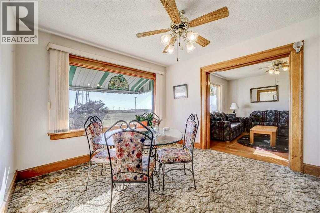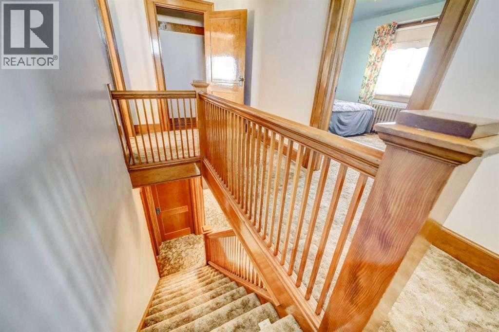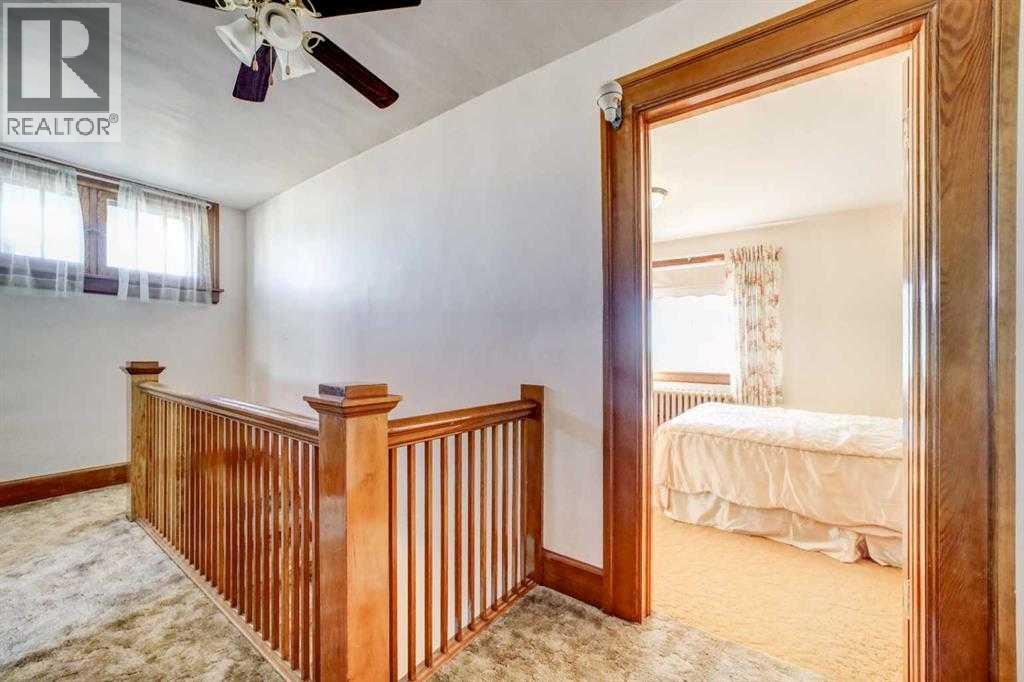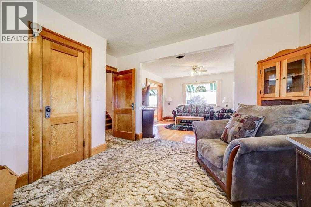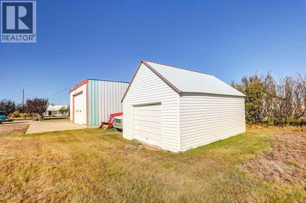 Nestled on a sprawling 3.73 acres of picturesque land,. This delightful residence showcases charm and character and boasts 1799 sq ft of living space, Featuring original hardwood floors, solid wood doors and wide trim that you just don't see in homes anymore. The staircase to the second level is a show stopper. The heart of the home is the large eat in kitchen, recently painted white with sage green cabinets, new dishwasher and a large island. Main floor includes a convenient laundry room that also doubles as a second washroom. All the plumbing is there just need to add the shower and toilet. Completing the main level is a mud room, bedroom, dining room, living room, office/flex room, sunroom and 4 pce bath. Upstairs there are two additional bedrooms. The basement has 9' ceilings and could developed to your personal taste. Recently, the sellers replaced the old boiler to a new high tech system costing $38000. You will also be able to enjoy the A/C for the hot summer months. This property is just as impressive outside and offers so much possibilities for the new owners. With a total of ten outbuildings, there’s endless space for hobbies, storage, and work. Two heated shops anchor the property — one 30’x40’ with radiant heat and dual overhead doors, and another 24’x30’ with its own heat and single overhead door. You’ll also find a three-car garage/workshop, a 54’x33’ quonset, two additional garages, two sheds, a chicken coop, and even a bunkhouse for guests or extra storage. Leaving enough space for a garden or two. Located on 10 mins off of highway 23 and minutes to Carmangay this could be the perfect property for you to call home. (id:63190)
