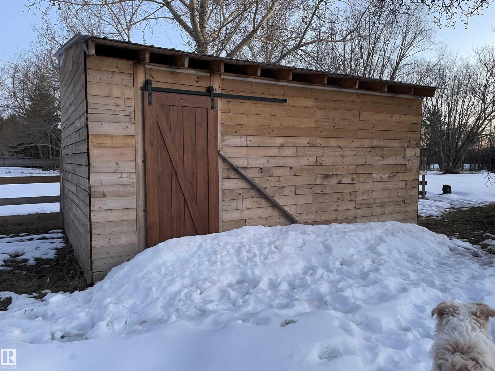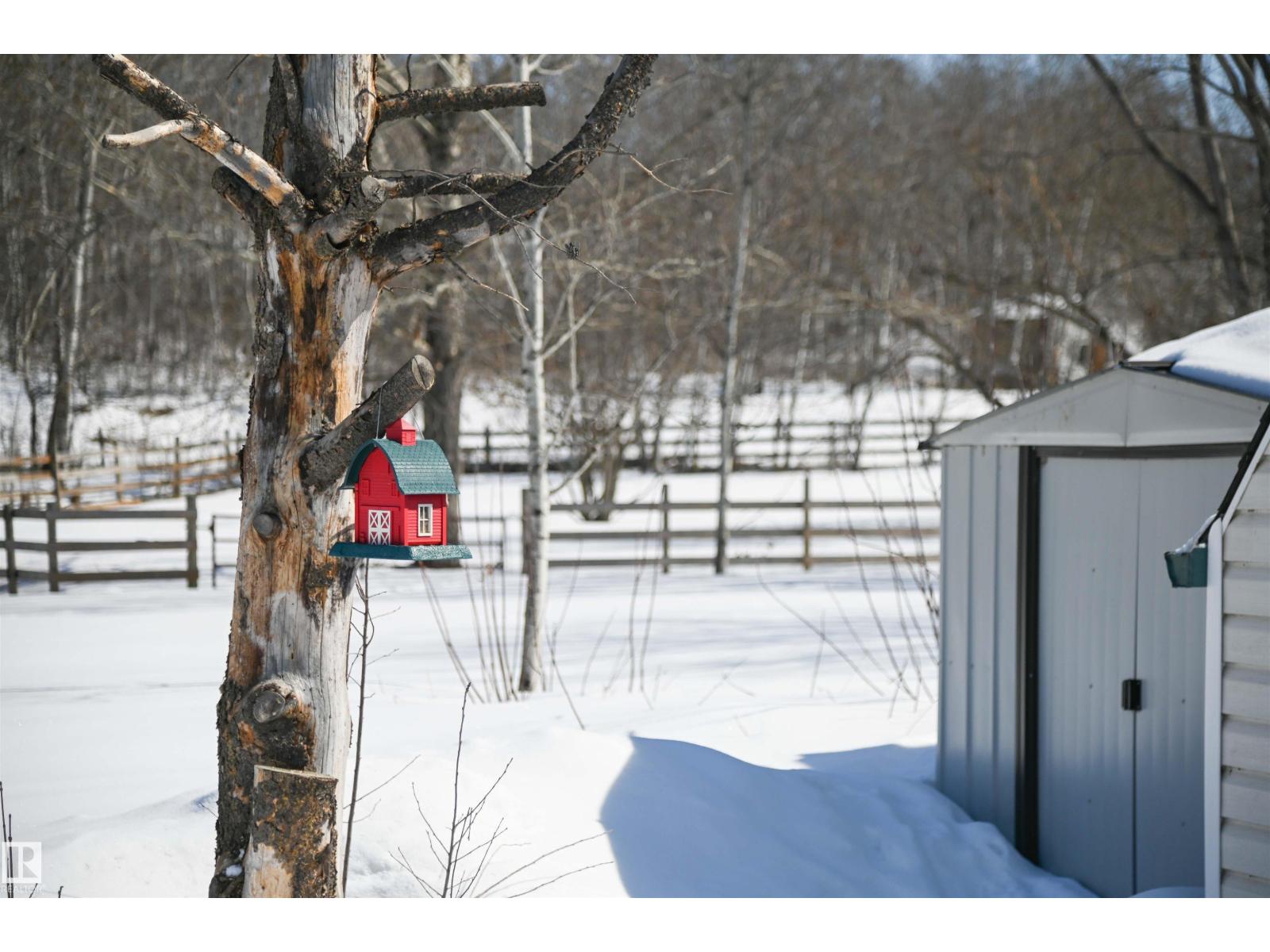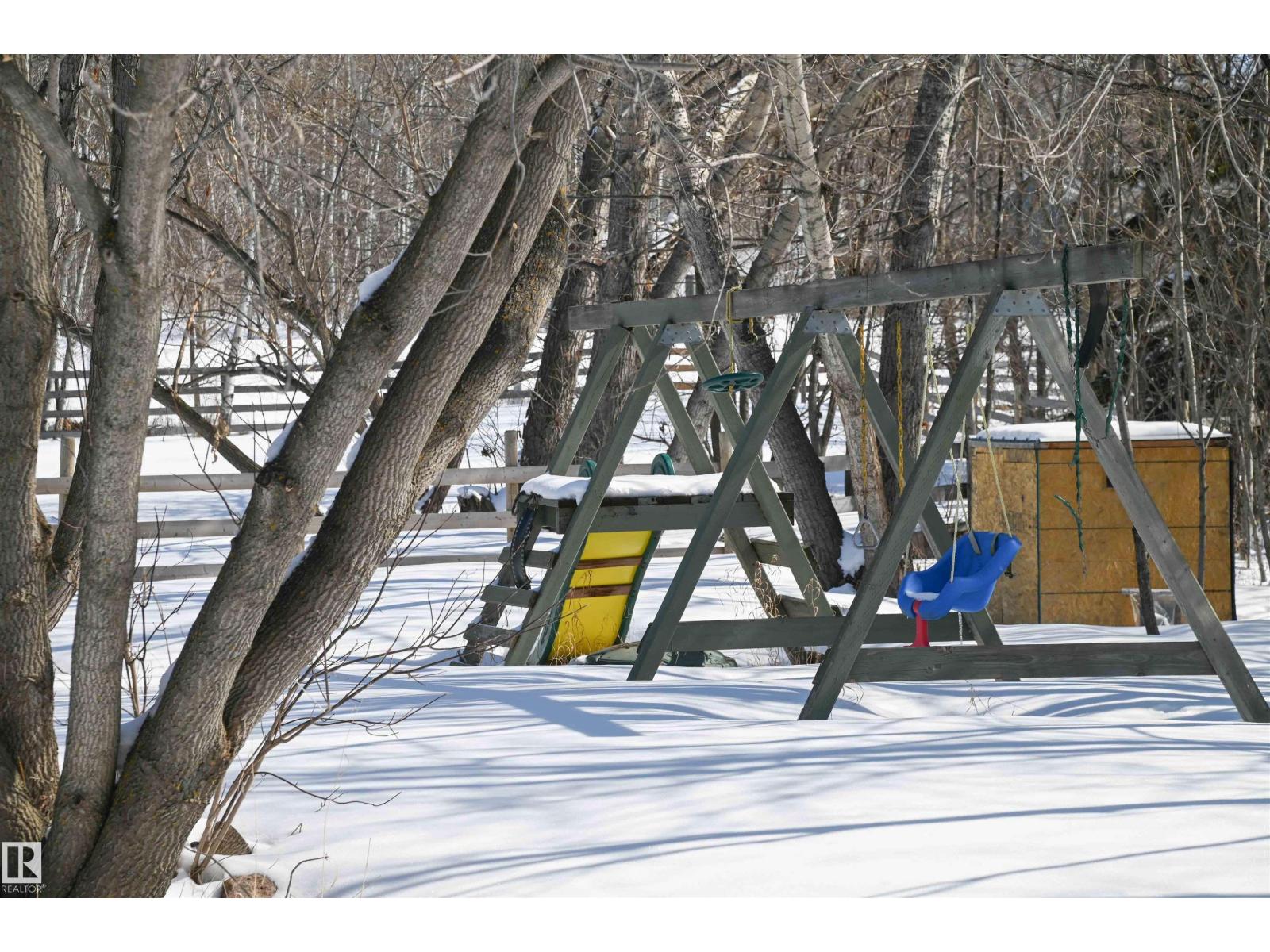 Just 35 minutes from Edmonton and only 5 minutes to Half Moon Lake, this affordable acreage offers the best of country living. Enjoy your own private 2 acres, fully fenced and set up with a horse corral and shelter, potting shed/greenhouse, fruit trees, wildflowers, and rose bushes. The large double garage is insulated and features a 30 amp plug and 30A heater. An electrified shed adds flexible space for a playhouse, bunkhouse, or extra storage. The spacious 1998 manufactured home (16x76) offers a great layout with 3 bedrooms and 2.5 bathrooms. Just a short trot away, you’ll find the Rainbow Equitation Society and Half Moon Lake Natural Area, perfect for trail riding and hiking. A fantastic spot for riding, boating, fishing, and enjoying the country lifestyle, with only about 100 metres of gravel road to travel. (id:63190)
