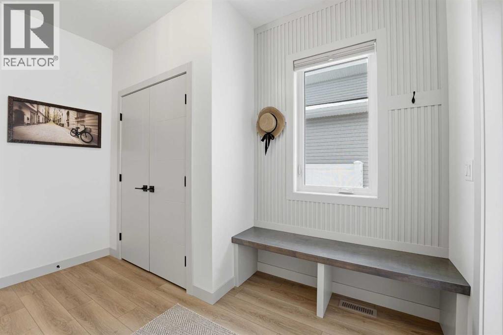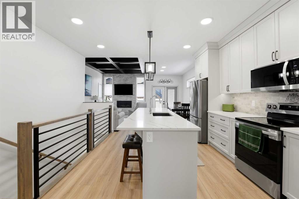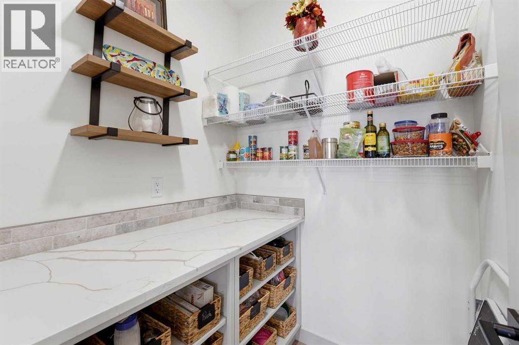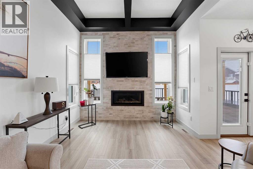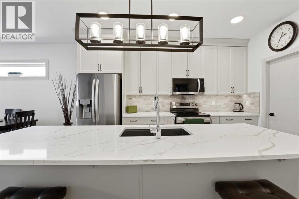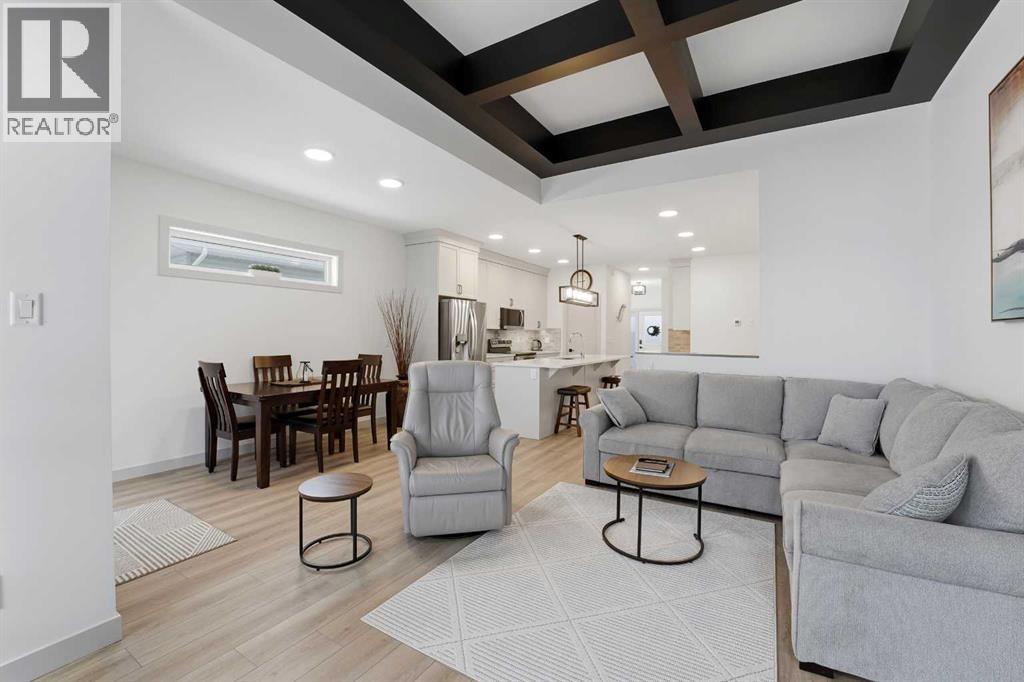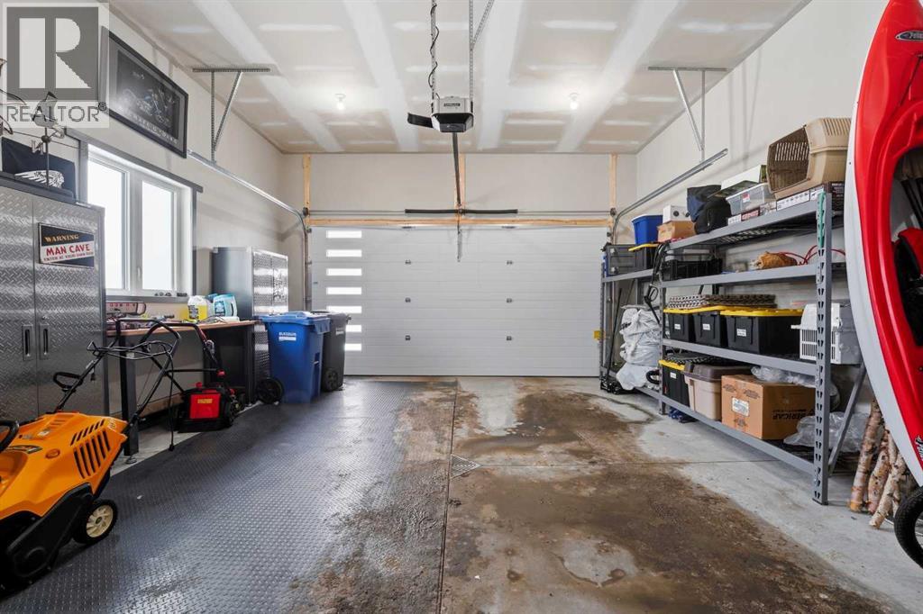 Like new and thoughtfully designed, this 2 bedroom, 2 bathroom bungalow with main floor laundry is the perfect downsizing opportunity. From the moment you arrive, the curb appeal shines with a charming covered front porch leading into a welcoming entry featuring a stylish feature wall and built-in bench seating. The stunning kitchen offers a centre island, butlers pantry, modern cabinetry with tile accents, and a convenient desk or coffee bar area. The bright living room showcases an eye-catching black coffered ceiling, feature fireplace, and large windows that fill the space with natural light. The dining area opens onto a west-facing deck complete with a pergola—ideal for relaxing or entertaining. The fully fenced and landscaped yard is designed for low maintenance with decorative rock, trees, and a garden shed. The primary bedroom includes a walk-in closet and 5-piece ensuite with dbl sinks soaker tub and stand up shower, while the second bedroom is perfect for guests and is complemented by an additional full bathroom. Main floor laundry with added storage enhances everyday convenience. The finished and heated garage includes a floor drain. The unfinished basement offers excellent potential for future development, with space for a family room, two additional bedrooms, and a bathroom. Built by quality builder Riser Homes, this property is located in the desirable McKay Ranch community on the east side of town, close to walking paths and playgrounds. (id:63190)