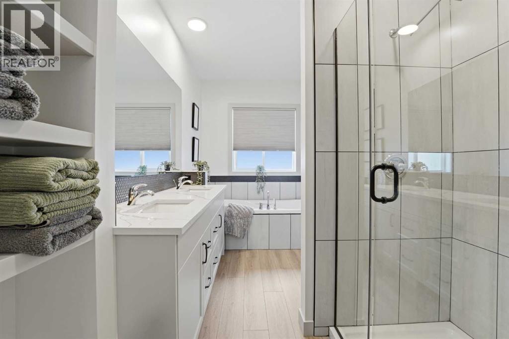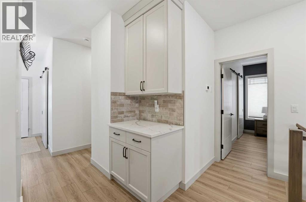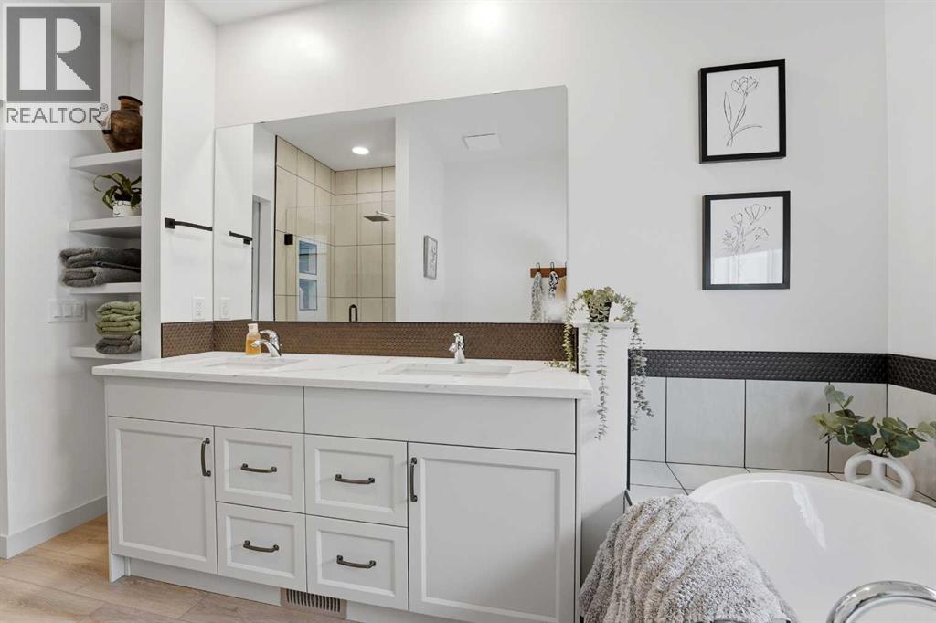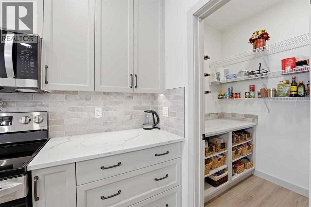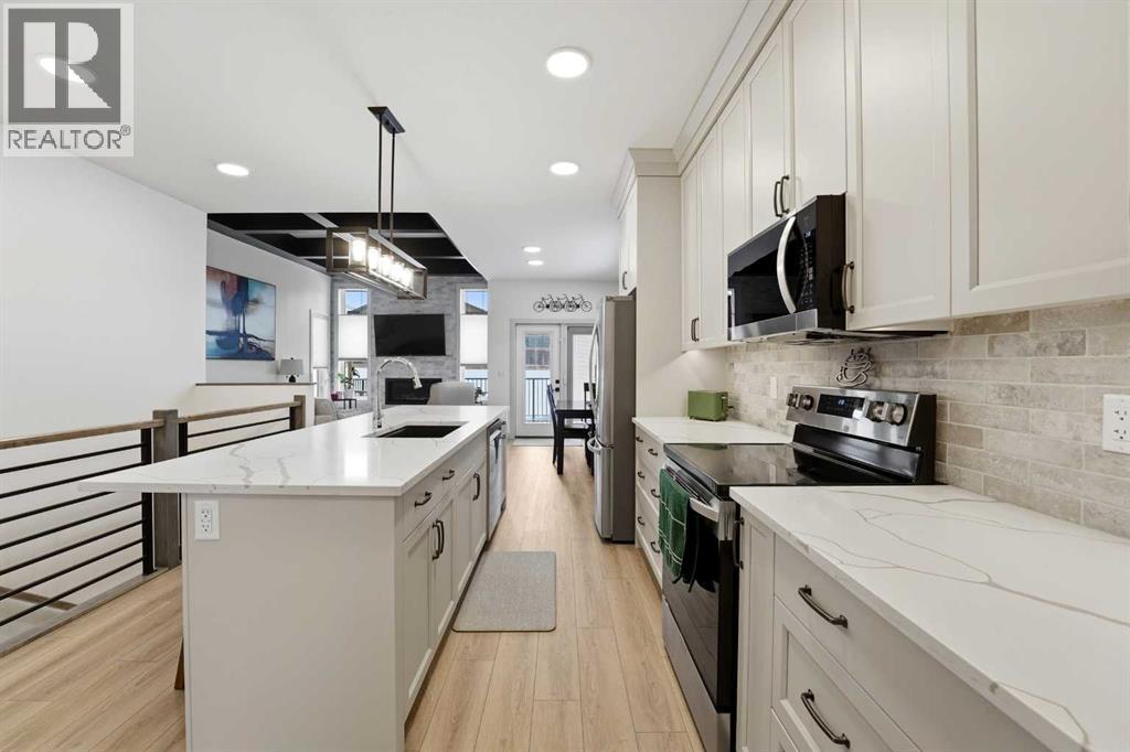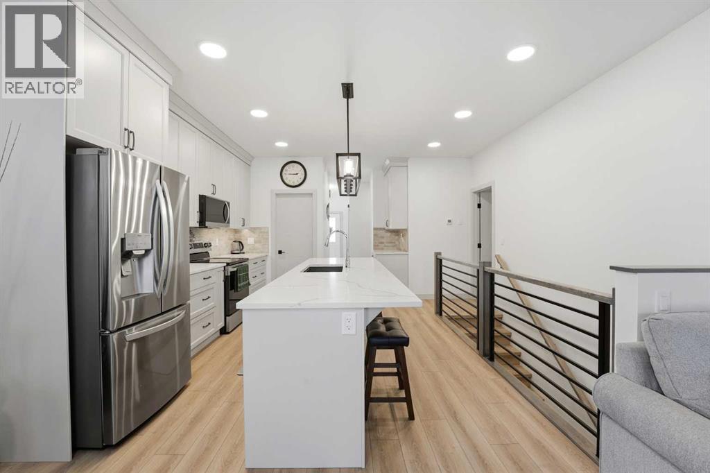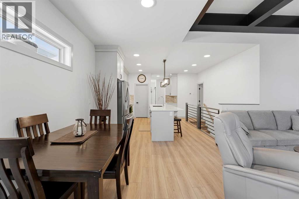 Like new and thoughtfully designed, this 2 bedroom, 2 bathroom bungalow with main floor laundry is the perfect downsizing opportunity. From the moment you arrive, the curb appeal shines with a charming covered front porch leading into a welcoming entry featuring a stylish feature wall and built-in bench seating. The stunning kitchen offers a centre island, butlers pantry, modern cabinetry with tile accents, and a convenient desk or coffee bar area. The bright living room showcases an eye-catching black coffered ceiling, feature fireplace, and large windows that fill the space with natural light. The dining area opens onto a west-facing deck complete with a pergola—ideal for relaxing or entertaining. The fully fenced and landscaped yard is designed for low maintenance with decorative rock, trees, and a garden shed. The primary bedroom includes a walk-in closet and 5-piece ensuite with dbl sinks soaker tub and stand up shower, while the second bedroom is perfect for guests and is complemented by an additional full bathroom. Main floor laundry with added storage enhances everyday convenience. The finished and heated garage includes a floor drain. The unfinished basement offers excellent potential for future development, with space for a family room, two additional bedrooms, and a bathroom. Built by quality builder Riser Homes, this property is located in the desirable McKay Ranch community on the east side of town, close to walking paths and playgrounds. (id:63190)
