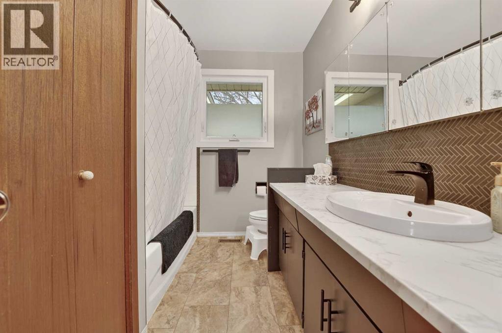 This well-maintained bi-level offers the perfect blend of comfort, flexibility, and long-term value, it is ideal for first-time buyers looking to get into the market or investors seeking strong rental potential. The bright, open concept main floor is designed for everyday living and easy entertaining, featuring a spacious living room and a functional kitchen with ample counter space for multiple cooks. A cozy coffee nook transitions into a sun-filled dining area with a charming bay window overlooking the mature, private backyard. Step outside to a covered patio which is perfect for relaxing or hosting summer BBQs. Upstairs includes two generous size bedrooms and a beautifully updated full bathroom. Downstairs, the fully finished lower level adds even more versatility with a warm family room, and 2 additional bedrooms, matching updated bathroom, generous storage, and a separate rear entrance through the laundry area, creating excellent potential for a future suite setup. The exterior is equally impressive, offering front double parking plus rear alley access to an oversized single garage with workshop or storage space, potential RV parking, and a low-maintenance yard with garden areas and a poured patio. Recent updates include newer windows & patio doors, new dishwasher & HWT, plus the garage roof was recently done & new carpet in the basement when the 4th bedroom was added. Located close to schools, parks, and shopping in a welcoming neighborhood, this is a smart move whether you're buying your first home or expanding your investment portfolio. (id:63190)