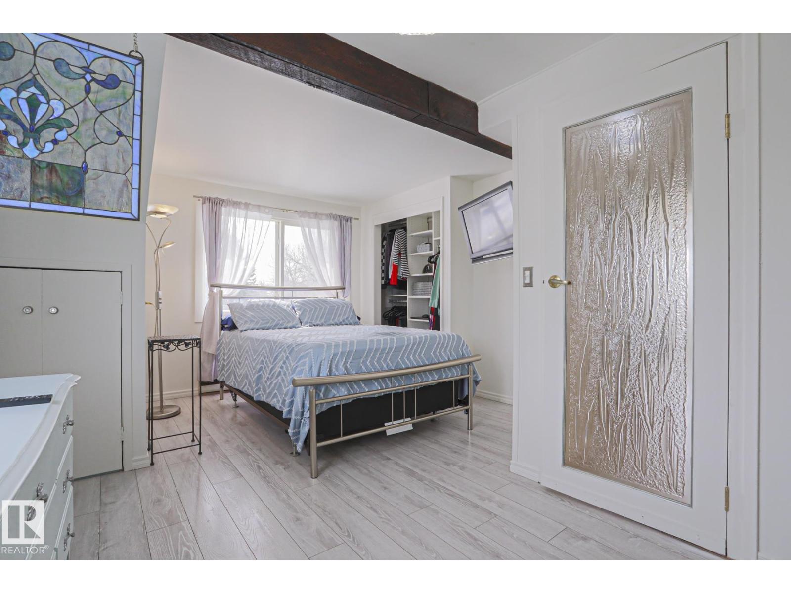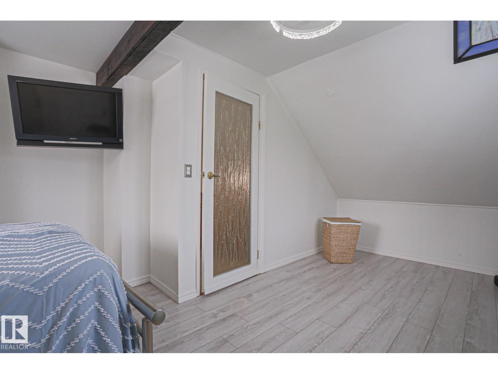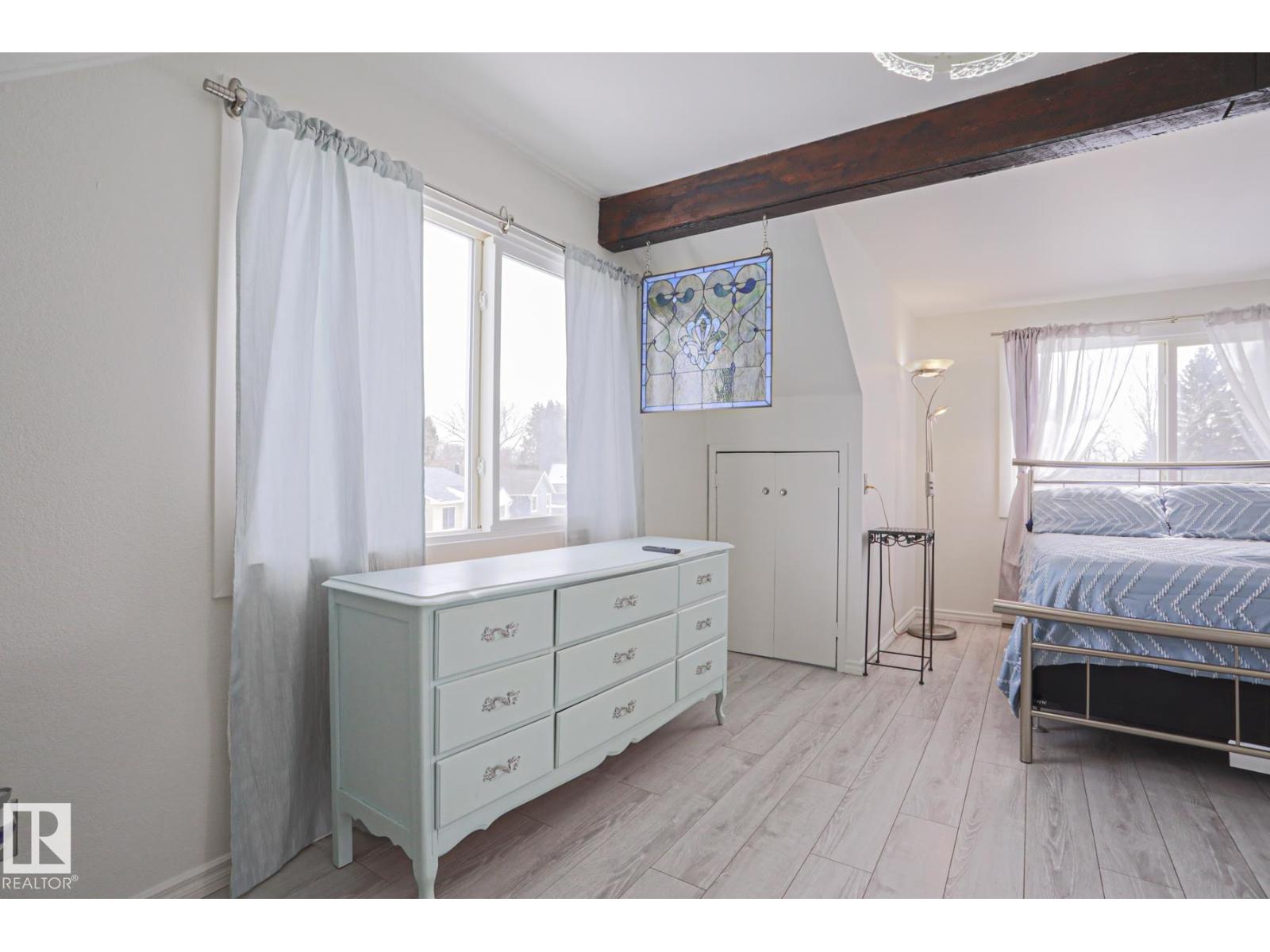 An outstanding character home + a mortgage helper! Renovated, mid-century 1.5-storey on a HUGE 1/4 ACRE PIE LOT with an INCOME PRODUCING 2 BEDROOM GARAGE SUITE built by Paramount Homes, plus space for future development! Across from an island park, updates include windows, siding, shingles, eavestroughs, fascia, doors, furnace, H20 tank, & perfectly landscaped. Main house: Open & adjacent living & dining rooms, crown-molding & curved archway, peninsula kitchen with s/s appliances, main bath, & bedroom (in use as m/f laundry). Top floor: 2 bedrooms & storage. Basement: SUITE POTENTIAL! SEPARATE ENTRANCE, 220v, egress windows, family rm, bdrms 4&5, full bath, & storage rm w/laundry hookups. SPV-LVP, new paint & upgraded lighting & designer ceiling fans throughout! Garage Suite: Spacious w/2 bedrooms, bath, living/dining & kitchen. Garage: 2 separate bays, heated, 220v. Landscaping: Wrought iron fencing & gates, arbours, deck, patio, paths. RV Parking, new sewer line. (Virtually staged main flr bdrm) (id:63190)