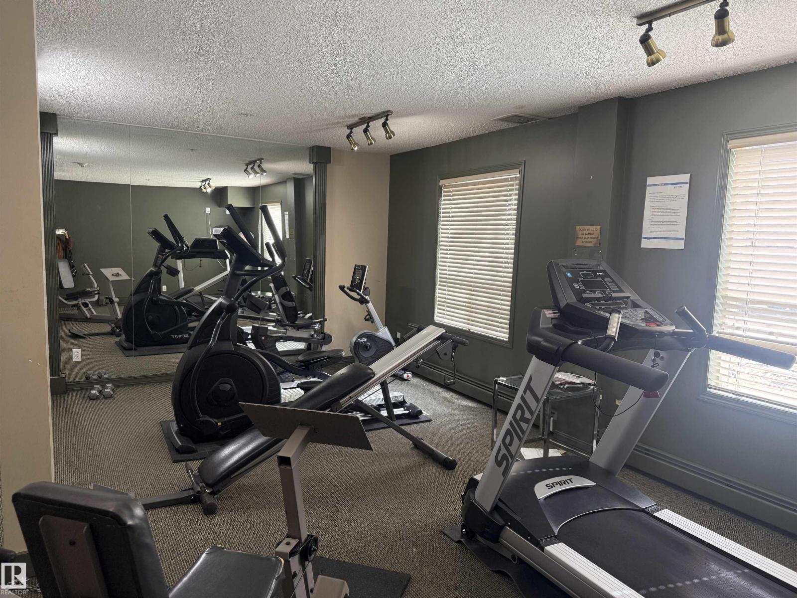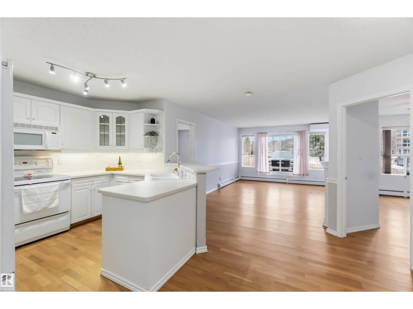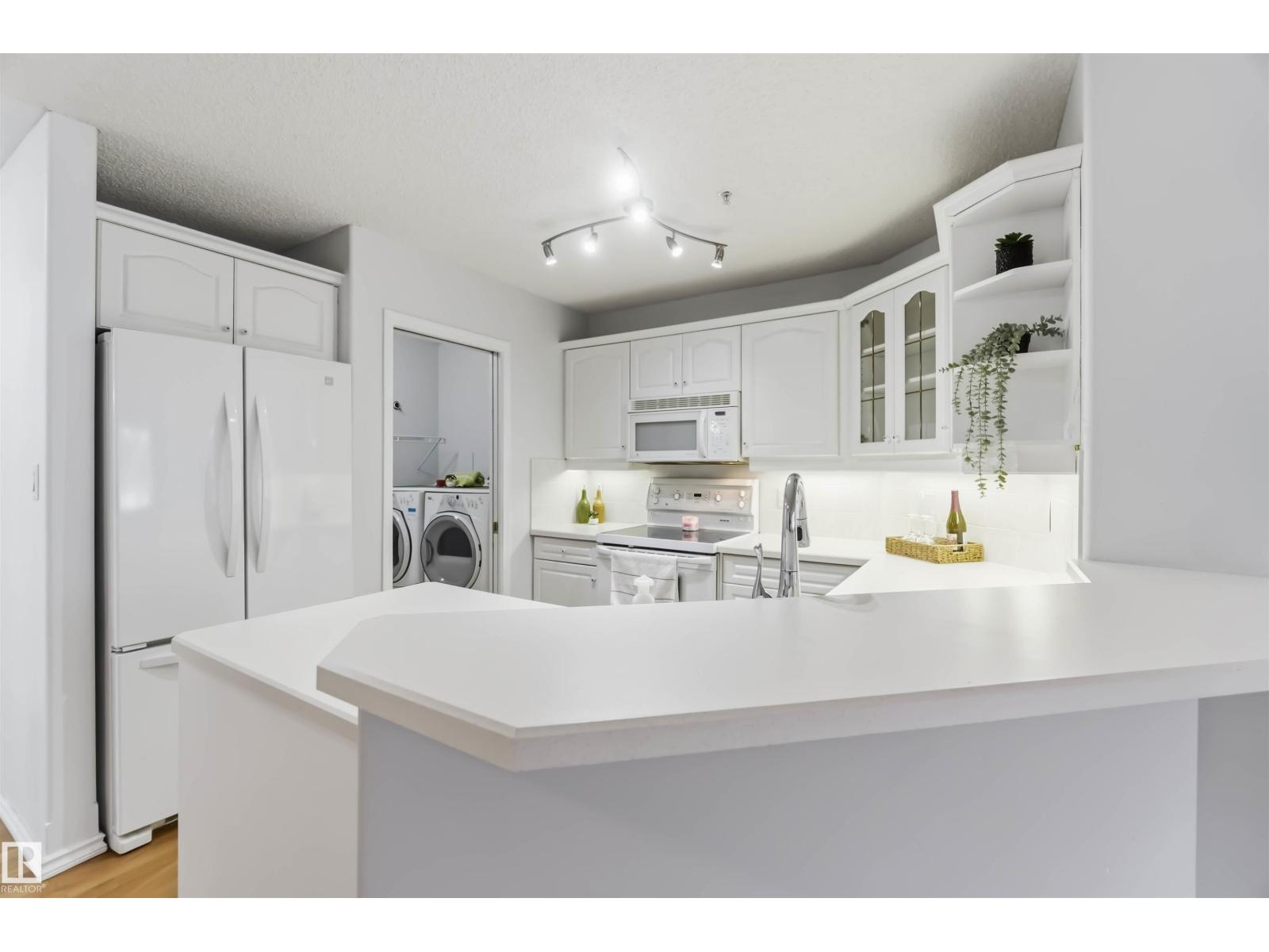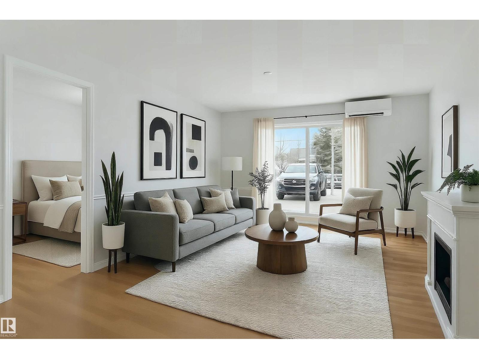 2 Pkg Stalls! Amazing main floor condo in the desirable community of Terra Losa, known for its charm & unbeatable location next to WEM! Offering 18+ adult living, w just under 1,000 sq ft, this modern former show condo features a bright, open layout w NO CARPET. The kitchen showcases contemporary white cabinetry, light countertops, a breakfast bar, & updated appliances. The cozy living room w gas fireplace separates two spacious bedrooms, each w ample closet space, incl. a large primary w 4-piece ensuite. Upgraded LED lighting & brand new central A/C, enhance staying comfortable year-round & seal the deal! Enjoy your SE-facing patio—perfect for summer evenings. This unit comes with TWO titled parking stalls (surface & heated underground) , and a separate storage cage. Building amenities include a fitness centre, social room, carwash & tons of visitor parking! Located close to parks, walking paths, shopping, transit, & Anthony Henday. Quick possession available! Quiet, peaceful & waiting for you! (id:63190)