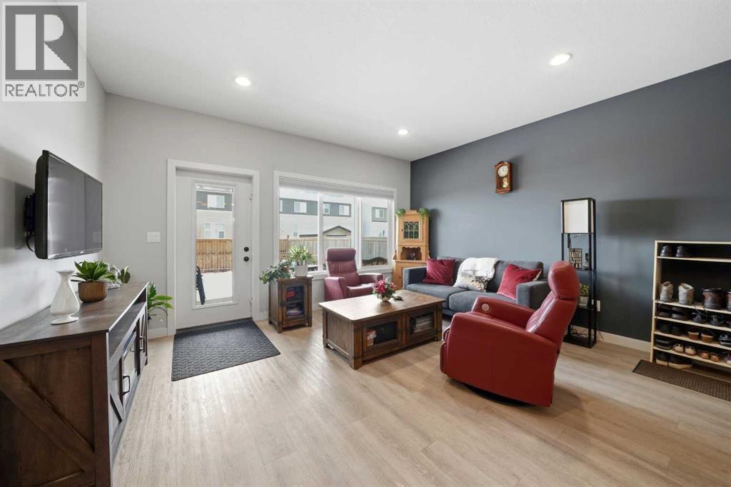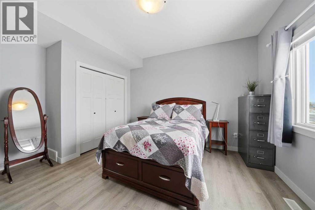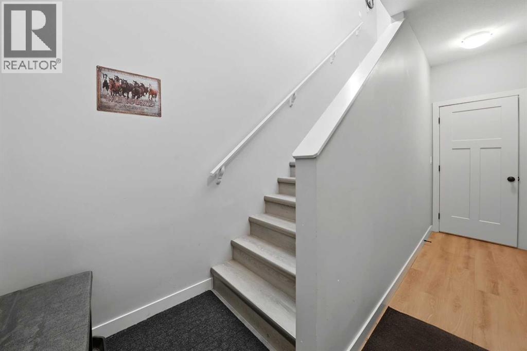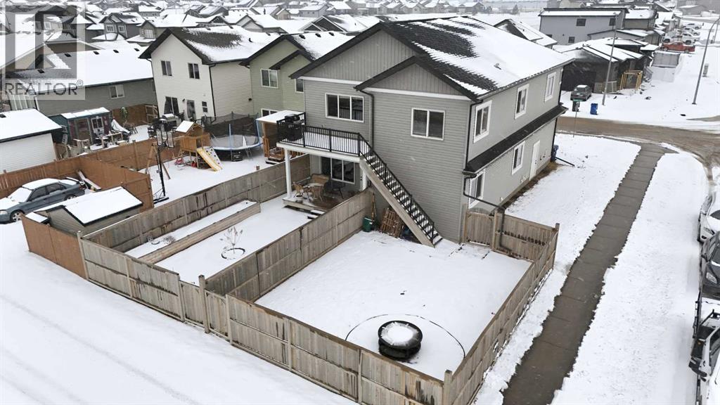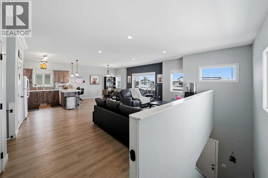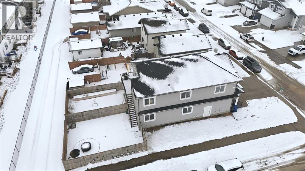 Welcome to this unique UP/DOWN DUPLEX concept, offering the perfect blend of comfort, privacy, and togetherness. With separate utility services, private fenced backyards, and individual attached garages this home features a LEGAL SUITE. The main floor has ACCESSIBILITY, 2 bedrooms, 1 bathroom and the garden door leads to a private COVERED DECK and garden boxes. Upstairs, offers 3 bedrooms, 2 bathrooms and large windows that have an awesome WEST VIEW and bring in plenty of natural light. Step out onto the deck to enjoy your raised deck or head down the stairs to your privately fenced backyard with back alley access and a beautiful fire pit area. Highlights include CONRETE BETWEEN FLOORS providing excellent sound separation, a utility room with a SEPARATE EXTERIOR ENTRANCE and access to a full 4' CRAWL SPACE with so much storage!! Located in a newer, family-friendly neighborhood in Blackfalds, close to parks, schools, and the popular Abbey Center while having quick access to both Highway 2 & 2A. (id:63190)