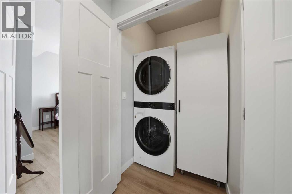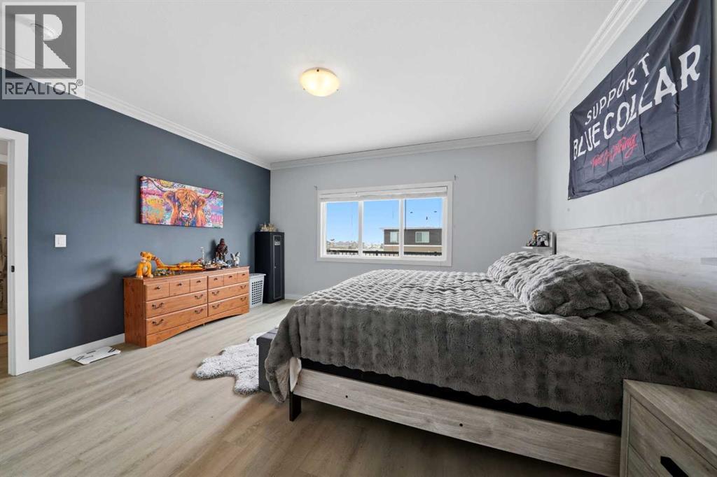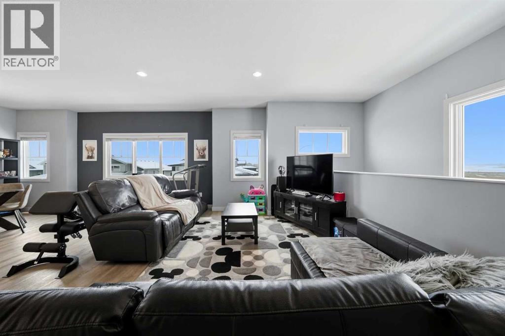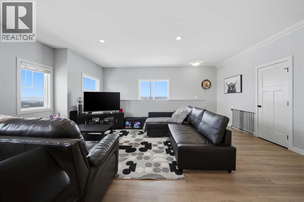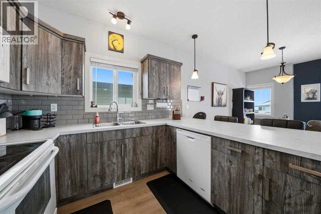 Welcome to this unique UP/DOWN DUPLEX concept, offering the perfect blend of comfort, privacy, and togetherness. With separate utility services, private fenced backyards, and individual attached garages this home features a LEGAL SUITE. The main floor has ACCESSIBILITY, 2 bedrooms, 1 bathroom and the garden door leads to a private COVERED DECK and garden boxes. Upstairs, offers 3 bedrooms, 2 bathrooms and large windows that have an awesome WEST VIEW and bring in plenty of natural light. Step out onto the deck to enjoy your raised deck or head down the stairs to your privately fenced backyard with back alley access and a beautiful fire pit area. Highlights include CONRETE BETWEEN FLOORS providing excellent sound separation, a utility room with a SEPARATE EXTERIOR ENTRANCE and access to a full 4' CRAWL SPACE with so much storage!! Located in a newer, family-friendly neighborhood in Blackfalds, close to parks, schools, and the popular Abbey Center while having quick access to both Highway 2 & 2A. (id:63190)