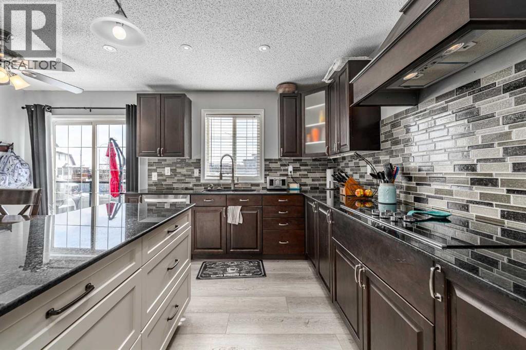 Welcome to Bayside! One of Airdrie’s most desirable and family-oriented communities, where lifestyle and convenience come together. This is a home that has been well loved, thoughtfully maintained, and truly lived in. It is ready for its next chapter, whether that means busy mornings, family dinners, or kids playing in the yard. From the moment you walk in, you can feel the warmth and functionality that makes a house a home.The main floor offers a welcoming front flex space just off the entry, perfect for a home office, reading room, or formal dining area. As you move through, the home opens into a large and inviting kitchen and living room that truly serve as the heart of the home. The kitchen is both functional and cozy, designed for everyday living and gathering, featuring stainless steel appliances, a wall oven and microwave, quartz countertops, and a large walk-through pantry that keeps everything organized and within reach.Upstairs, you will immediately notice that the bedrooms are larger than average, giving everyone their own comfortable space to unwind. The upper-level flex room with its vaulted ceiling adds even more versatility, easily functioning as a TV room, playroom, library, home office, or in this case, a fourth bedroom. Laundry is conveniently located on the top floor, right where you need it most.The fully developed walkout basement expands the living space even further, offering a large additional bedroom, another flexible area perfect for a home office or workout space, and a spacious second living room ideal for movie nights, teenagers, or guests.Step outside and discover a truly standout backyard. Set on a GIGANTIC pie-shaped lot, this space offers an incredible amount of room to spread out, whether it is for kids to run and play, hosting summer barbecues, or simply enjoying a peaceful evening outdoors. The walkout basement adds both natural light and seamless access, creating a backyard that feels open, connected, and full of potent ial. It is rare to find this kind of outdoor space combined with a walkout, making it a perfect extension of the home for both everyday living and entertaining.To top it all off, the home has been freshly painted in March 2026, including the entire main floor and most of the upper level, creating a bright, refreshed feel throughout that is completely move-in ready. With multiple schools just a short walk away, this is a location perfectly suited for growing families. Quick access to Yankee Valley Blvd makes commuting simple, while you are only 15 minutes to the airport and 8 minutes to CrossIron Mills for shopping, dining, and entertainment. This is more than just a house, it is a place where families grow, memories are made, and where everyday life just feels a bit better. This is home. (id:63190)