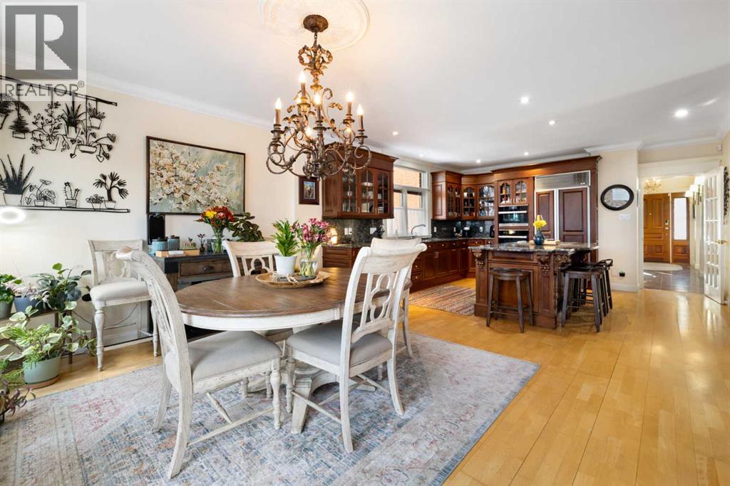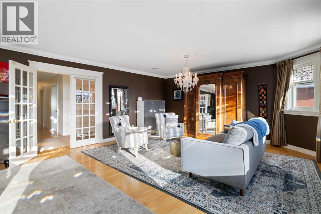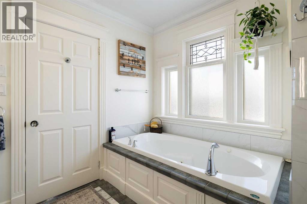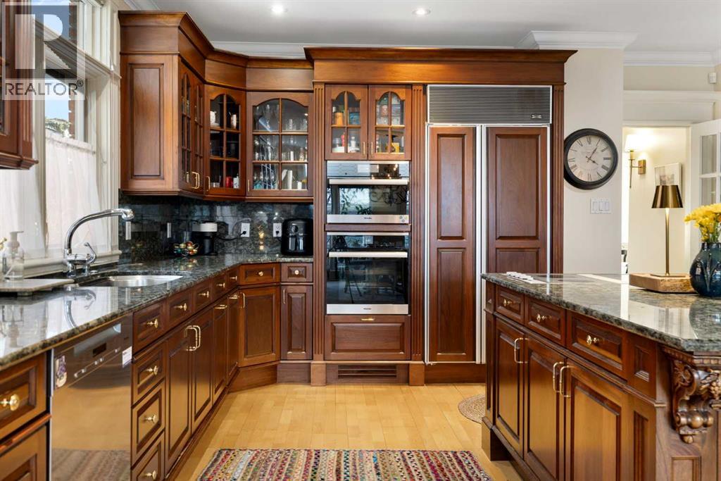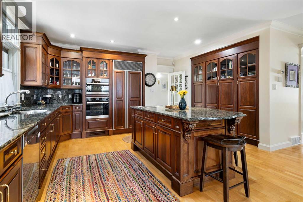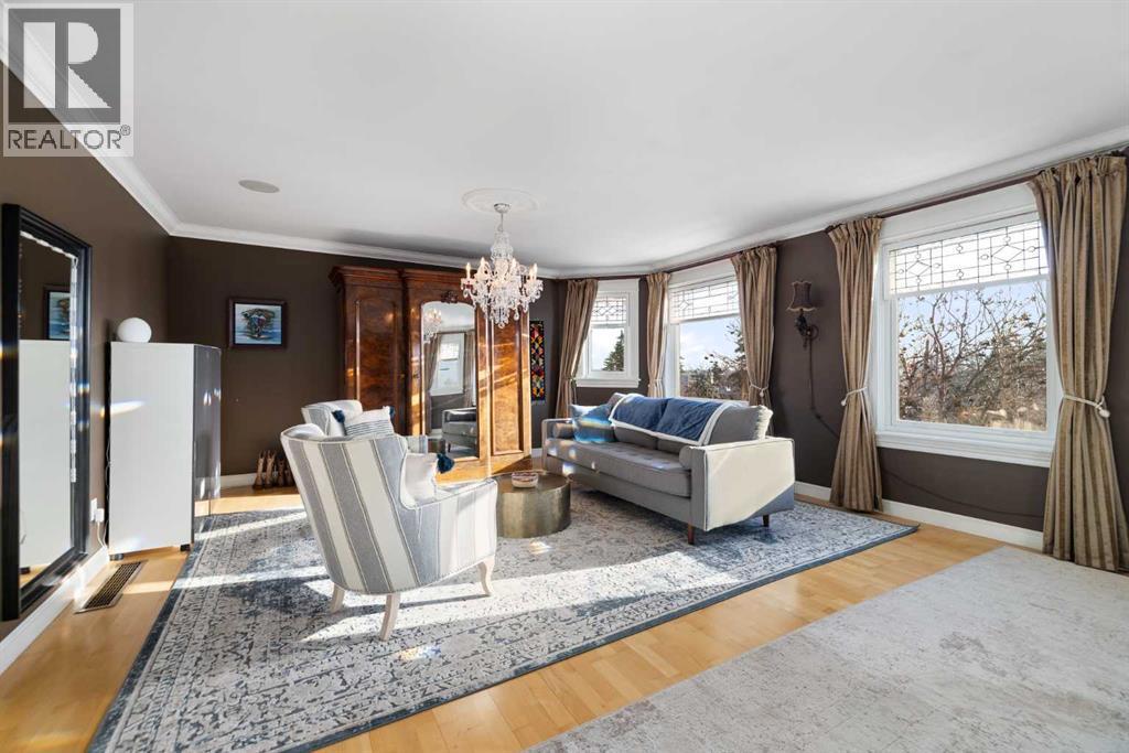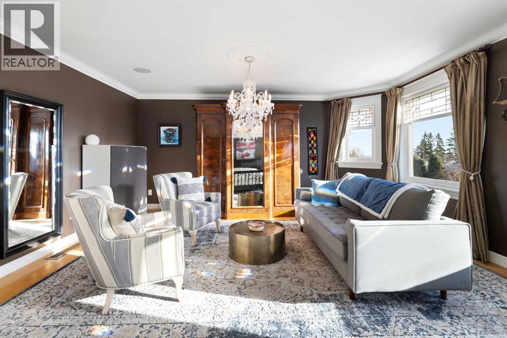 Stepping into this well-maintained 1912 estate in Shaganappi feels like entering a livable piece of art. High ceilings & marble floors set the stage for an interior where historic soul meets modern precision. With over 3,800 sq.ft of curated living space, the layout was designed to host grand events. As you step in, you're welcomed by dual living spaces and two dining features framed by custom mahogany millwork, an executive office with built-ins, and the warmth of a classic wood-burning fireplace. The daily rhythm revolves around light and luxury. The kitchen is anchored by rich mahogany cabinetry, newer Miele appliances, and vast counters scaled for entertaining. Mornings begin in the primary suite, bathed in east-facing sunlight with direct views of the Calgary skyline before stepping into a custom-built ensuite. While heritage homes often lack modern utility, investments in this home ensure comfortable living with dual laundry setups on both the main and upper floors, alongside newly upgraded bathrooms. The lower level maximizes versatility with a separate entrance, a full bathroom, and a dedicated flex space. A third fireplace warms the mahogany-trimmed rec room, but the true highlight is the custom movable bookcase, which seamlessly swings open to reveal hidden storage and a utility room. Outside, the west-facing yard is a private summer oasis featuring a four-zone irrigation system, a stone patio, and a built-in water feature. Inner-city living usually means fighting for parking, but this property redefines urban convenience with a large garage, a parking pad and a long interlocking brick driveway in front, located less than 10 minutes from downtown. You're encouraged to join the Shaganappi community association for access to the private tennis courts, outdoor rink and community events. Make sure to enjoy the surrounding area by visiting either of the two off-leash parks, exploring the Bow River, and discovering all the conveniences along 17th Ave. To finis h it off, take a short 10-minute walk to the C-Train Station where you're only two stops away from Downtown Calgary. (id:63190)