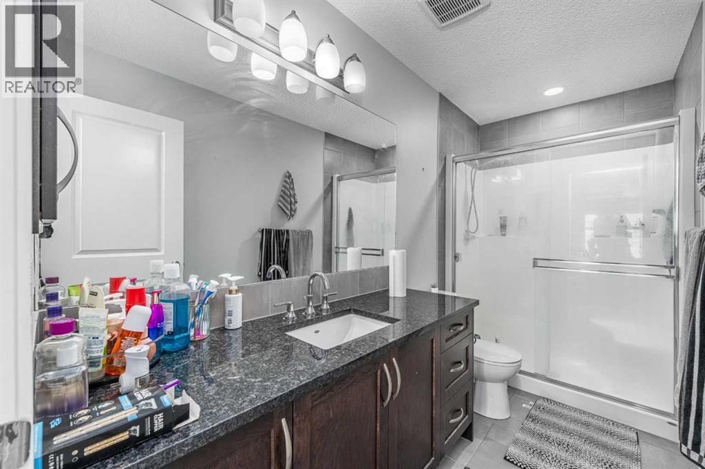 Welcome to the highly sought-after community of Hillcrest!This well-appointed home is ideally located within walking distance to Northcott Prairie School (Grades K–9), making it a perfect fit for growing families.Featuring a bright and open floor plan, the main level showcases beautiful hardwood and tile flooring along with a functional layout designed for everyday living and entertaining. The kitchen is a standout, complete with quartz countertops and soft-close cabinetry, offering both style and practicality.Upstairs you will find three spacious bedrooms, while the partially developed basement offers two additional bedrooms, providing flexibility for guests, a home office, or extended family.Step outside to enjoy the sunny south-facing, private fenced backyard, backing onto peaceful, undeveloped farmer’s fields. On clear days, take in stunning views of the Calgary skyline from your large raised deck, the perfect place to relax or host summer gatherings.Additional highlights include a single attached garage and a quiet location with local traffic only.This is a fantastic opportunity to own in one of Airdrie’s most popular neighborhoods. (id:63190)