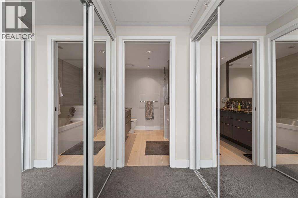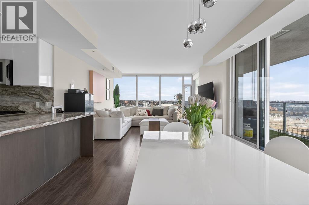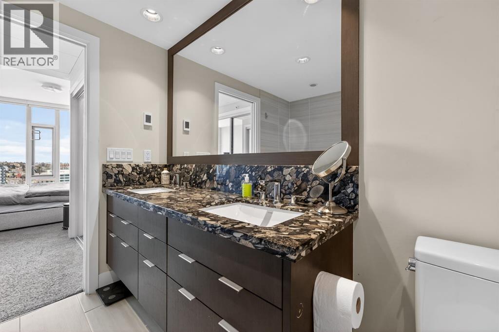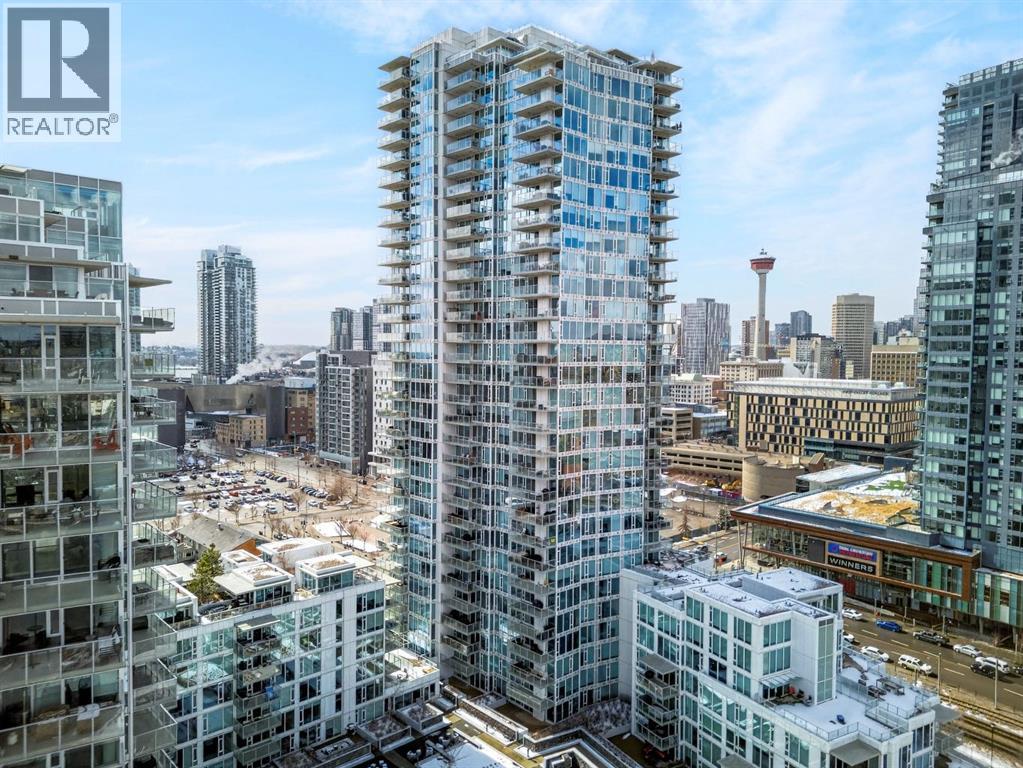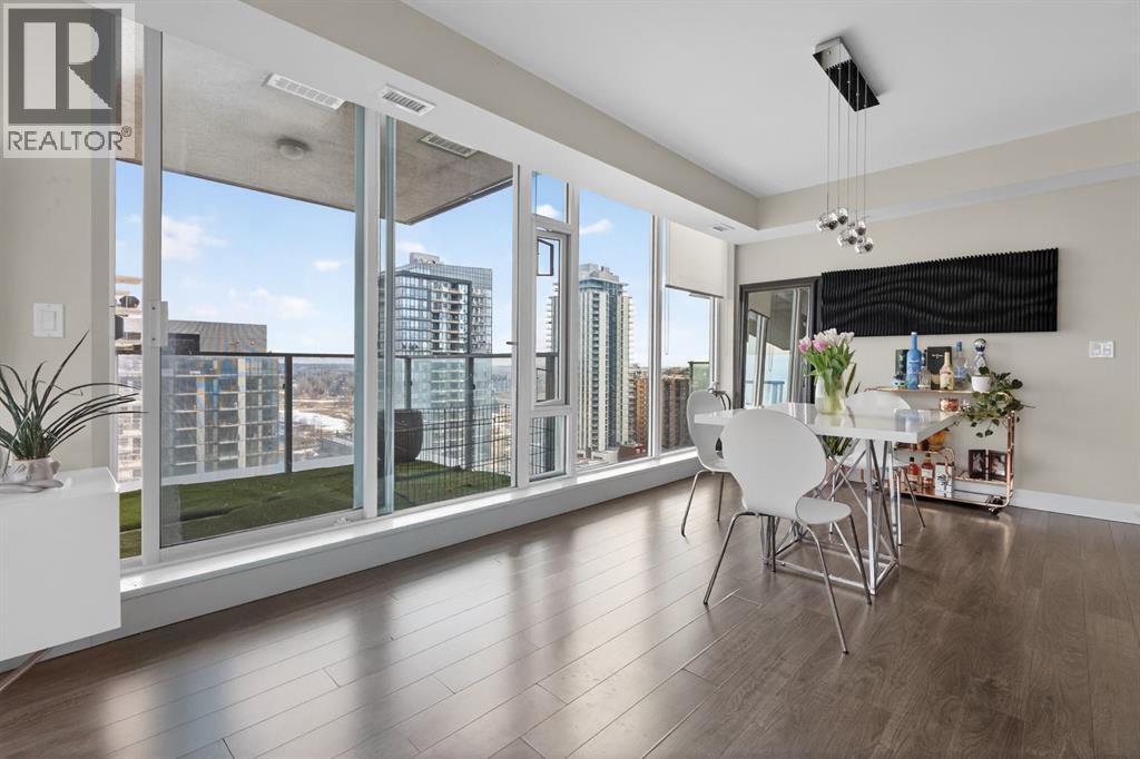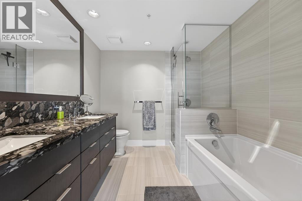 Perched on the 17th floor, this executive residence offers breathtaking views overlooking the Bow River and the vibrant city skyline. Designed with both comfort and style in mind, this spacious 2-bedroom, 2-bathroom suite features soaring ceilings, expansive floor-to-ceiling windows, rich hardwood and tile flooring, and plush carpeting in the primary bedroom. The open-concept layout seamlessly connects the kitchen, dining, and living areas—perfect for hosting guests or enjoying everyday living. The chef-inspired kitchen is equipped with a gas range, stainless steel appliances, granite countertops, and a sleek modern backsplash, delivering both functionality and sophistication. Retreat to the luxurious primary suite, complete with a spa-like 5-piece ensuite showcasing dual vanities, a deep soaker tub, and a fully tiled glass shower. Step outside to your oversized, nearly 20-foot-wide balcony—an ideal space for summer evenings, complete with room for lounging and BBQing while soaking in the incredible river views. Residents enjoy access to exceptional amenities, including a stunning rooftop courtyard, two fully equipped fitness centers, a sauna, and an expansive party room. With 24-hour concierge and security, peace of mind comes standard. This unit also includes a titled parking stall, a secure storage locker, and access to convenient visitor parking. Located in the heart of East Village, you’re just steps from river pathways, dining, shopping, and everything downtown living has to offer. (id:63190)