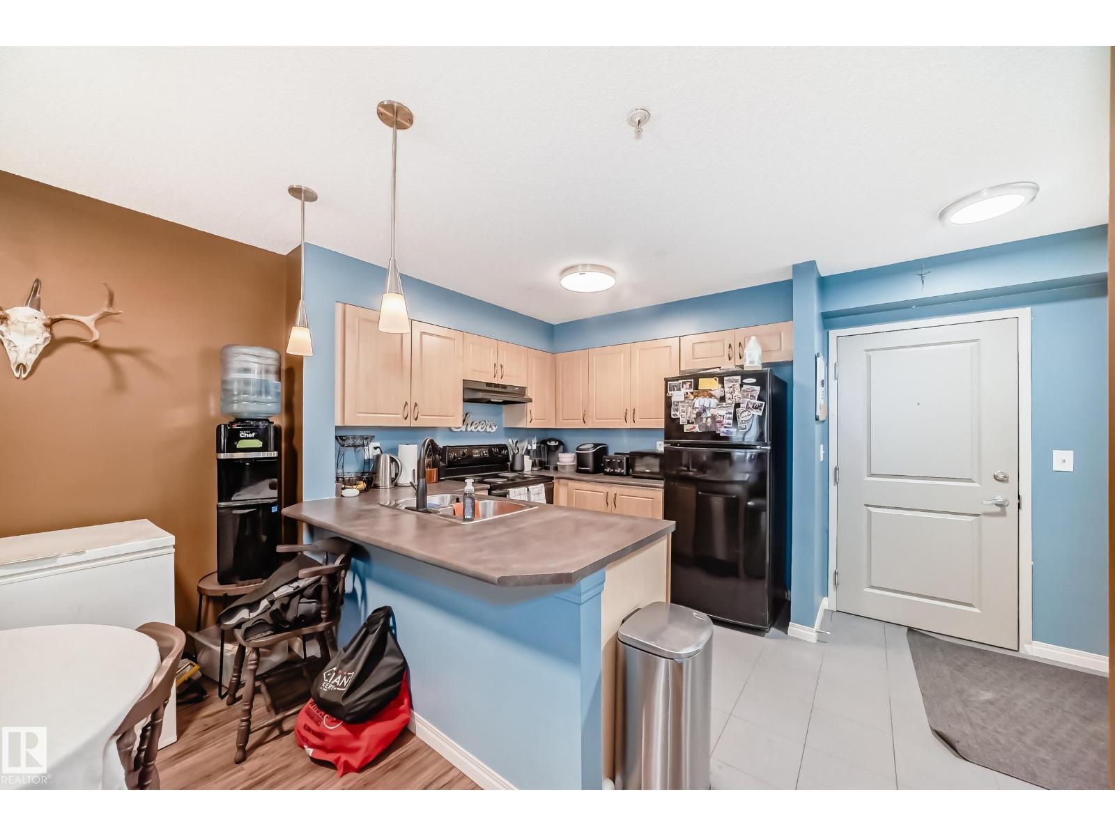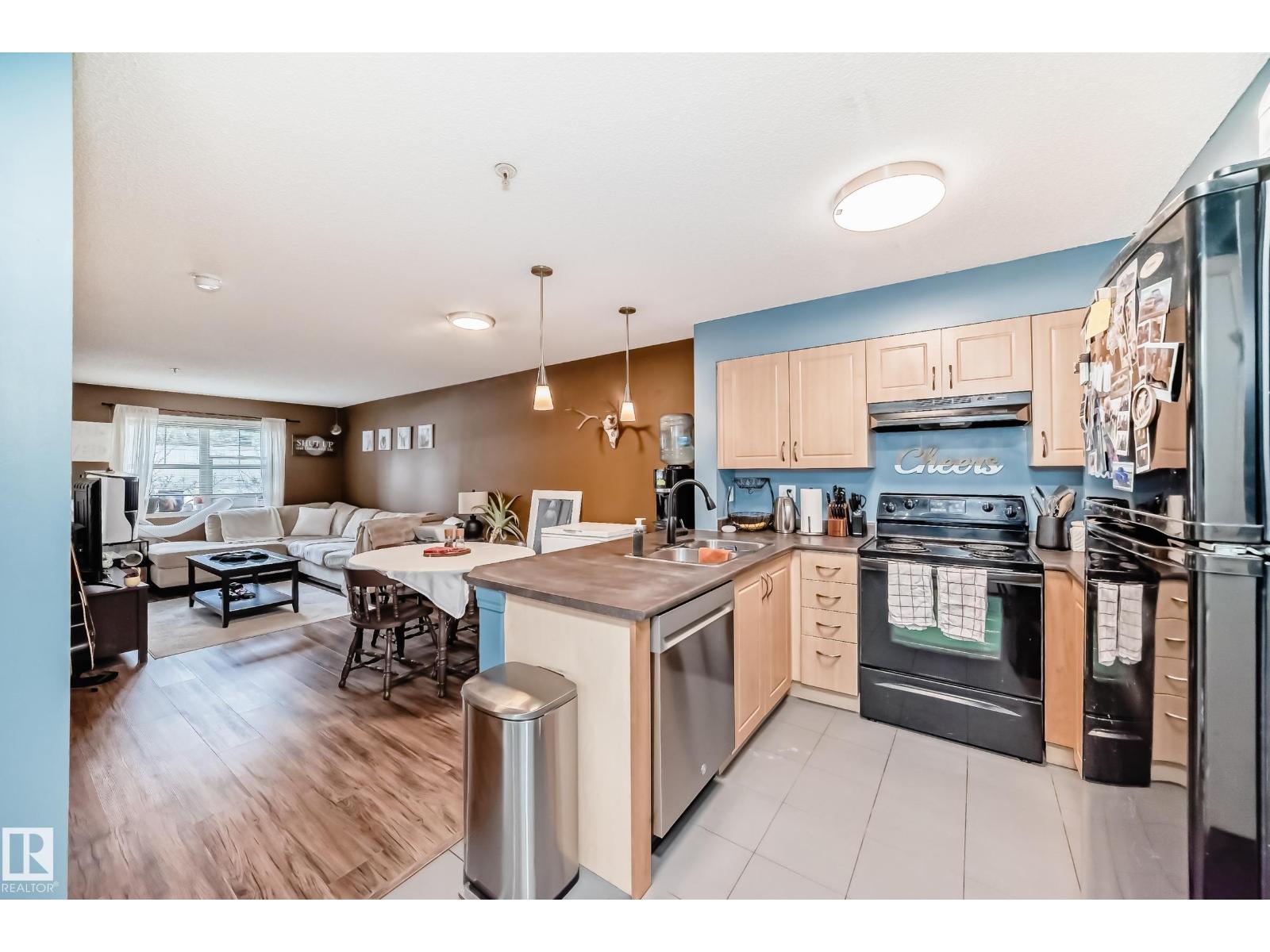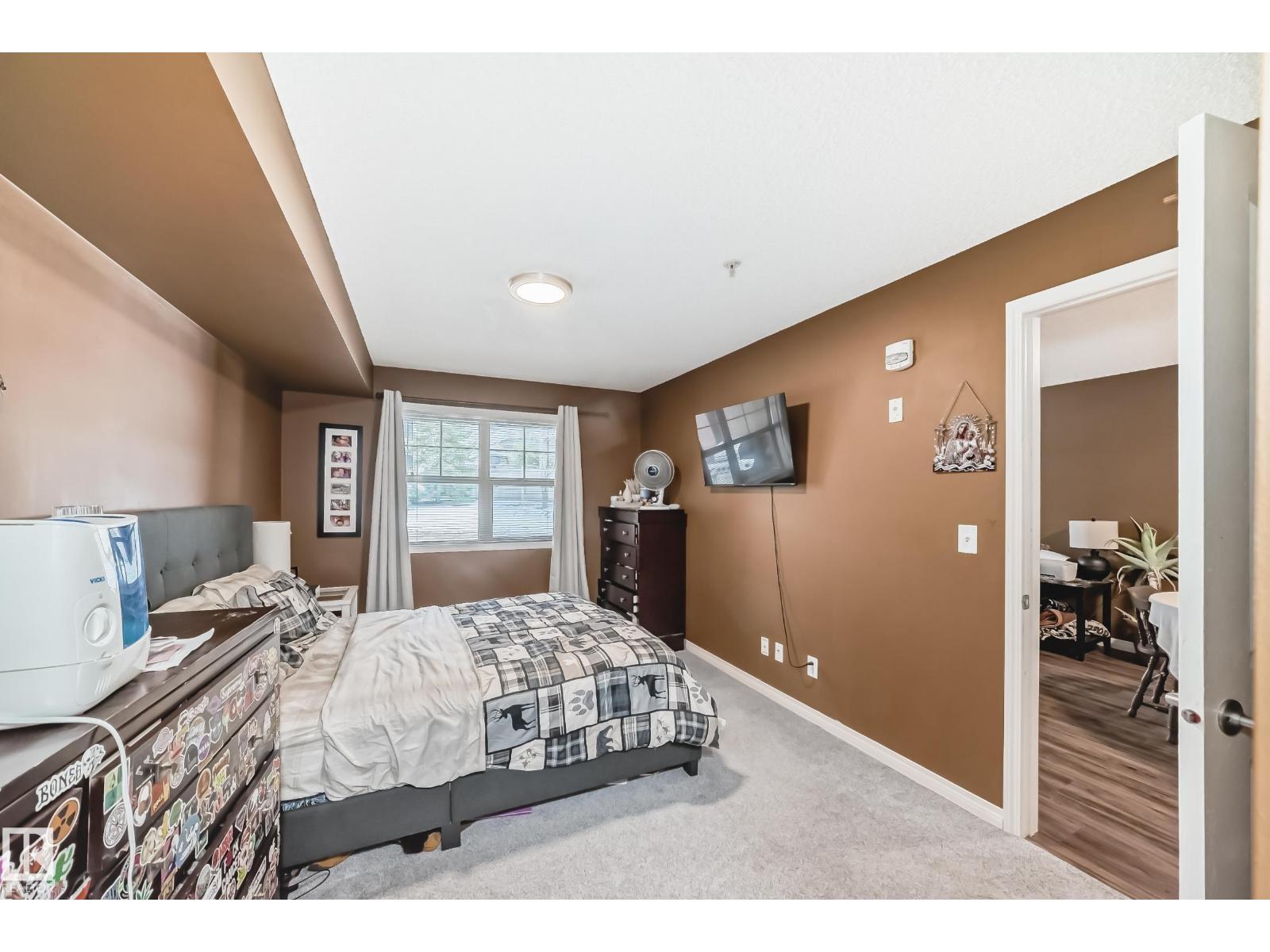 Come check out this open and bright 1 bedroom condo. You walk in to the spacious kitchen with bar seating. Other features include a large living room and dining room with patio (with gas hook up), spacious bedroom and 4 piece bathroom. From just outside the patio you have access to a huge GREEN SPACE. This property comes with 2 HEATED UNDERGROUND PARKING STALLS and 2 STORAGE LOCKERS. The condo fees include Electricity, heat and water. This unit is close proximity to WALKING TRAILS, public transport, shopping, Anthony henday the airport and more. (id:63190)