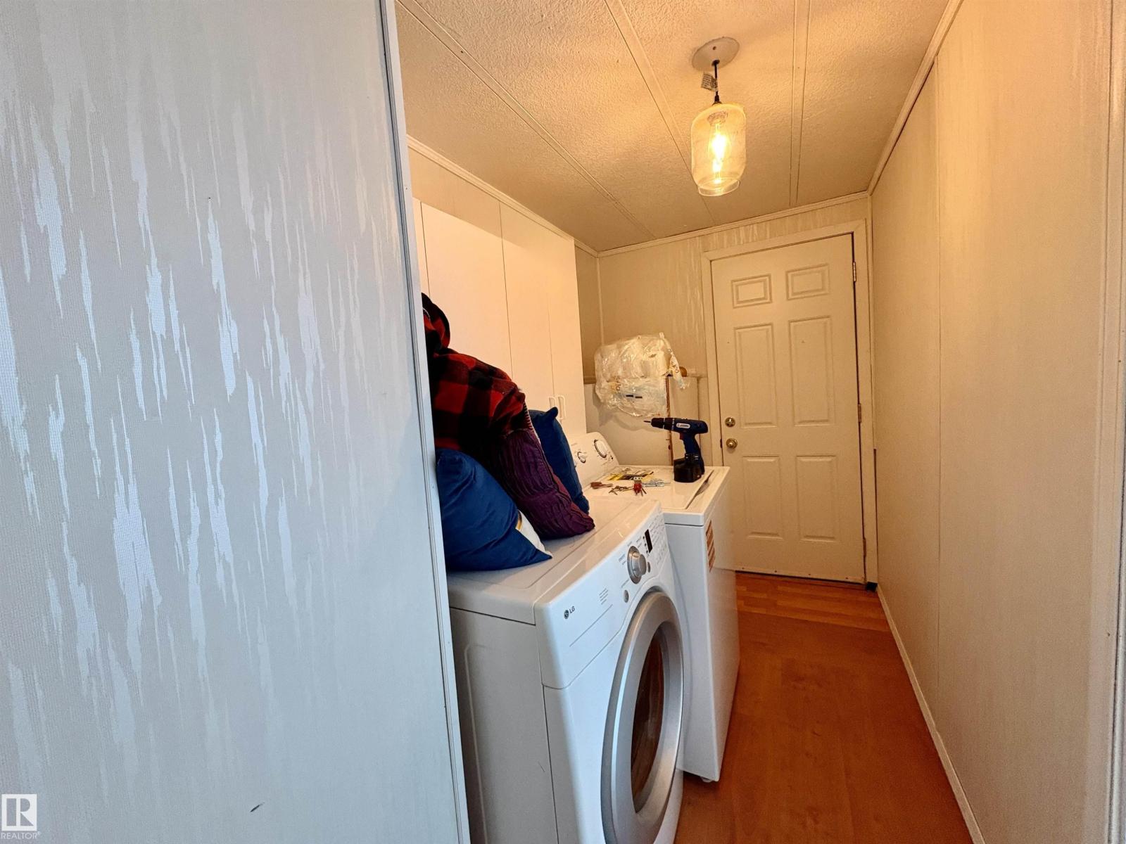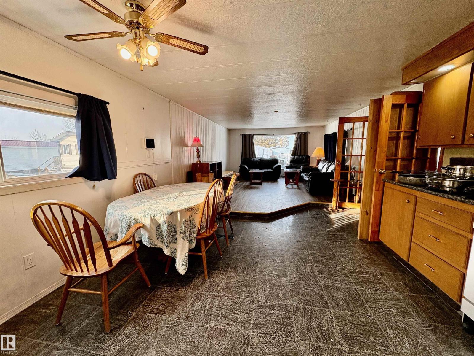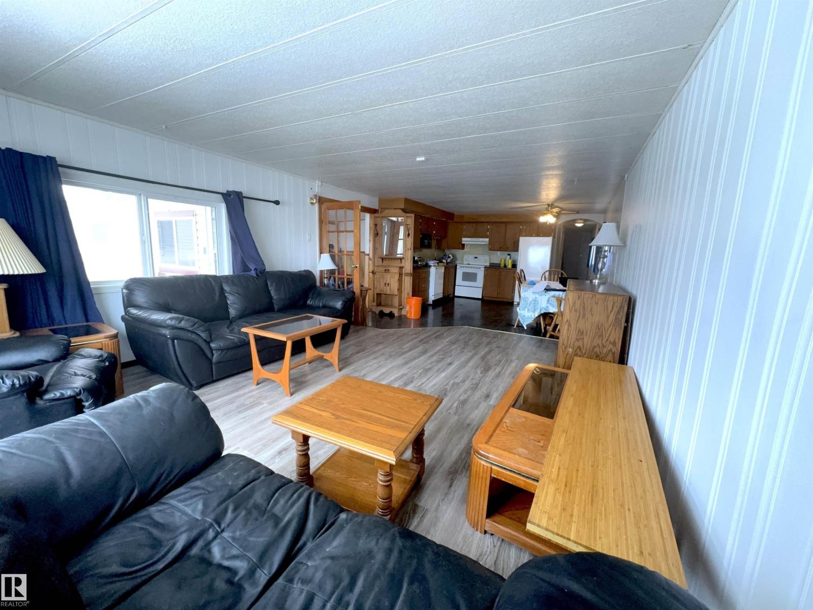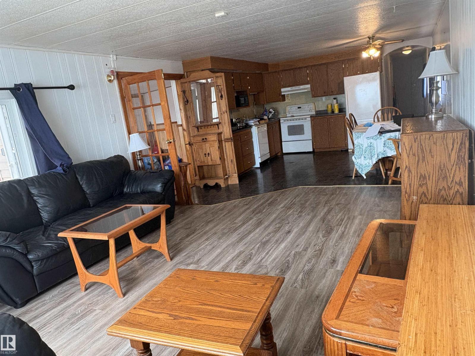 Affordable living without compromise. Welcome to this cozy mobile home in a quiet Morinville community, featuring a bright open-concept kitchen and spacious living area, perfect for entertaining or laid-back nights in. The entryway greets you with an electric fireplace and extra storage, adding both warmth and function. With 2 bedrooms and a full 4-piece bath, this home offers comfort and practicality. Step outside to a beautifully landscaped yard, a large deck for summer BBQs, and a charming front porch. Just minutes from schools, amenities, and the Morinville leisure centre. (id:63190)
