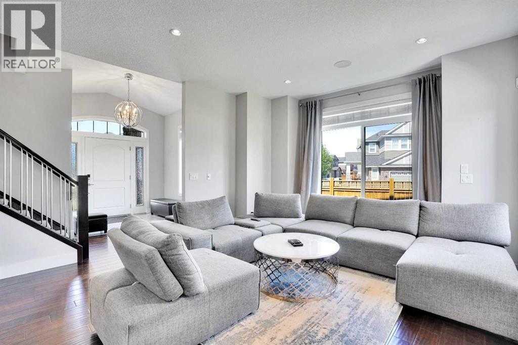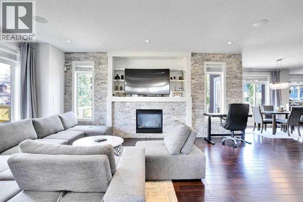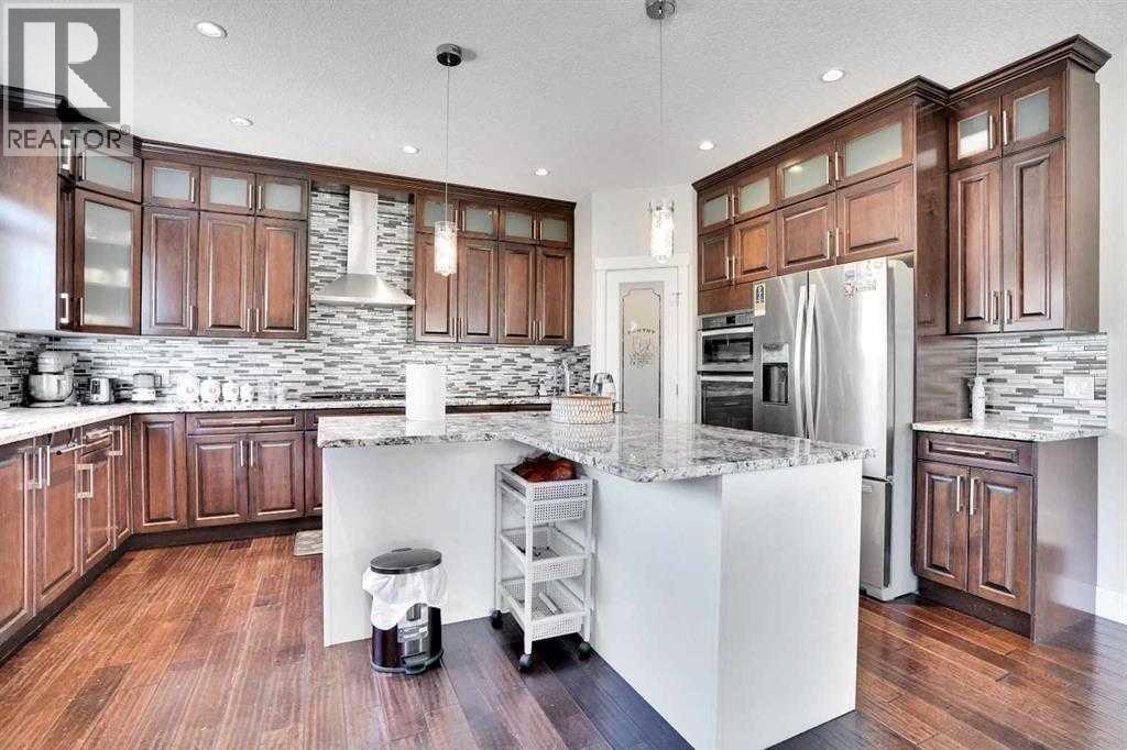 Luxury living at its best in heart of Chestermere. Outstanding curb appeal with custom stonework and a spacious front porch with an extra wide front entry door. With over 4000 total square feet of beautifully designed living area which will exceed all expectations. Step inside the spacious entry foyer overlooking a beautiful open design and layout.You will be greeted by high end upgrades such as dazzling crystall chandeliers, a striking stone feature wall with a gas fireplace, built-in shelving, gorgeous granitecountertops,, gleaming engineered hardwood floors. Expansive Palladian windows flood the interior with natural light while walk-in closets, custom built-ins, and premium appliances add to the home's luxurious appeal. The open concept main floor with family sized living and dining rooms, genorous sized office. Chef inspired kitchen is a show stopper with an oversized island featuring a second sink and breakfast bar, ceiling height cabinitry and a walk-in pantry. With 6 bedrooms and 5 bathrooms there is room for everybody. The primary bedroom is your personal spa like retreat that is accessed through elegant french doors into a massive bedroom withwith a walk-in closetthat is custom outfitted with dressers, jewelry drawers, shoe racks,purse hooks, and a full length mirror. The ensuite bathroom includes an oversize jacuzzi tub and a walk-in stone and tile shower. Included in the upper floor are 3 more bedrooms 2 full bathrooms, laundry room plus a spacious bonus room with built-ins (plus if you desire there is full laundry hook-ups on the main floor. The fully developed basement offers 2 more bedrooms, alarge recreation room, 3 large storage rooms. There are speakers built-in throught the home and the backyard to provide the perfect ambiance for those who enjoy entertaining. Your private backyard oasis features massive exposed aggregate patio area with a new quarry stone fireplace. The fully landscaped yard includes mature trees for privacy, raspberry bushes , perennial, gardens, and including a cheery treeplus apple trees that produce three apple varieties. The oversized triple garage is a dream for mechanics and hobbyists of all kinds with high knockdown ceilings, a large built-in workbench, fully insulated and roughed in for a gas heater. There is backyard access via a large gate on this huge 5527 sq foot corner lot.Tucked away on a quiet street with minimal traffic, just 1 blockfrom East Lake school, Camp Chestermere, and close to walking paths, parks, playgrounds, as well as shopping, dining, and other amenities. (id:63190)