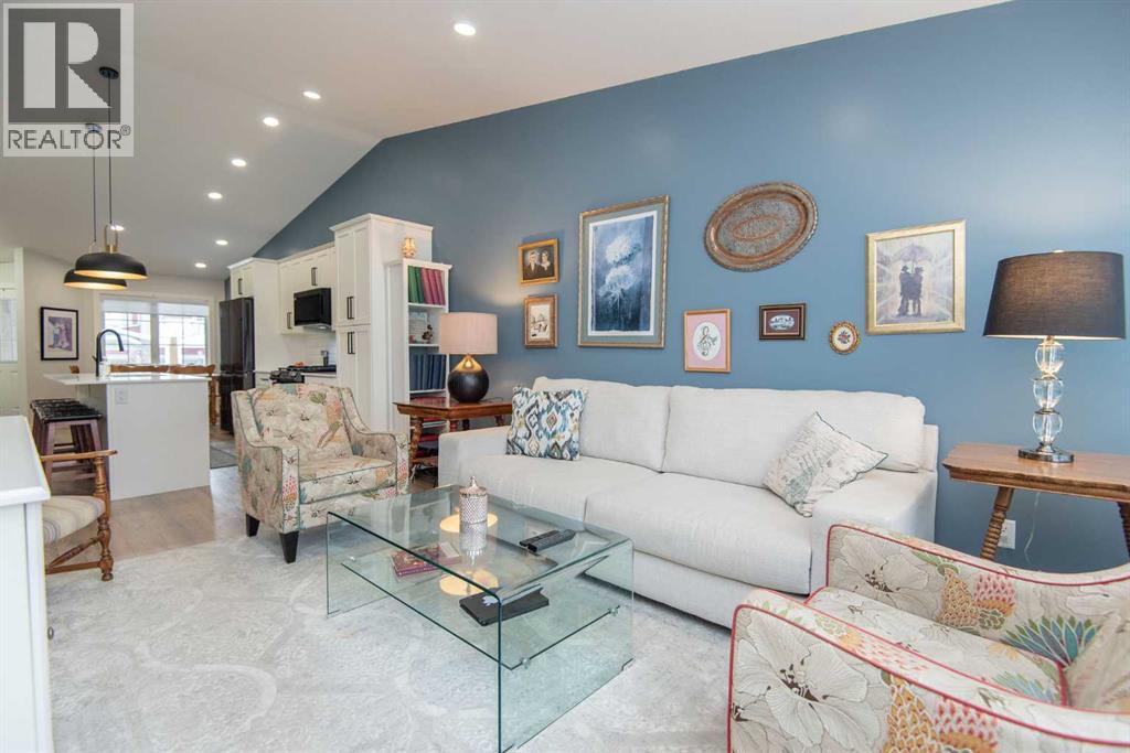 Welcome to Garden Heights – Adult-Oriented Condo Living at Its Finest!Experience the perfect balance of comfort, style, and low-maintenance living in the desirable community of Garden Heights. Ideally situated just steps from scenic green spaces, tree-lined pathways, and trails leading to the Red Deer River and McKenzie Trails, this location also offers a short walk to all the shopping, dining, and everyday amenities of Clearview Market and Timberlands. This beautifully designed bungalow-style townhome feature a fully developed layout with 3 bedrooms and 3 bathrooms, offering functional space for both everyday living and entertaining. The open-concept main floor is highlighted by vaulted ceilings, large windows, and durable vinyl plank flooring throughout, creating a bright and inviting atmosphere.The modern kitchen is sure to impress with painted maple cabinetry, quartz countertops, a spacious island, gas range, and a pantry with convenient pull-out drawers. The main floor also includes a comfortable primary bedroom complete with a private ensuite. An option to add main floor laundry provides additional convenience and flexibility.The fully finished basement expands your living space with two additional bedrooms, a large family/recreation room, a 4-piece bathroom, dedicated laundry area, and ample storage.Enjoy the privacy of your own fenced and landscaped yard with patio, along with a natural gas hookup for your BBQ—perfect for outdoor entertaining. Additional features include central air conditioning and an oversized single attached garage.Whether you’re looking to downsize or enjoy a quiet, maintenance-friendly lifestyle, this premium townhome offers the ideal setting with nature at your doorstep and amenities just minutes away. An excellent opportunity to enjoy easy living in a prime location. (id:63190)